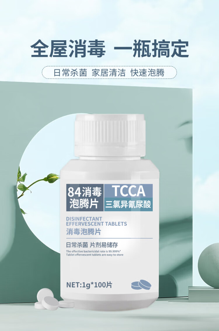 Muzhitian chlorine-containing 84 disinfectant effervescent tablets 1g*100 tablets disinfectant washing machine tank cleaning remove tea stains