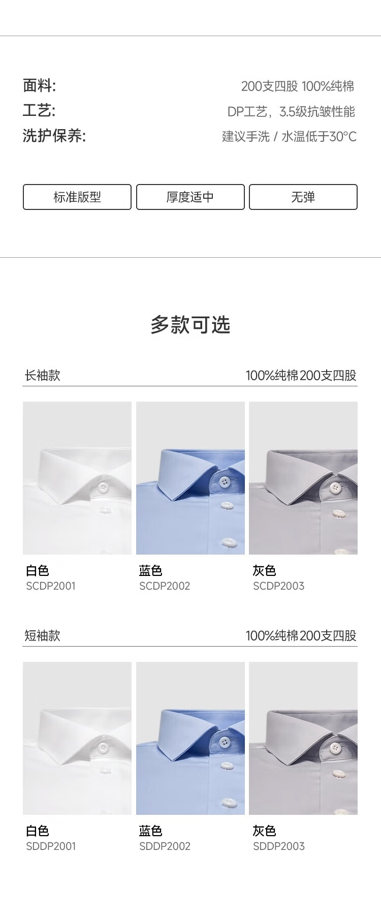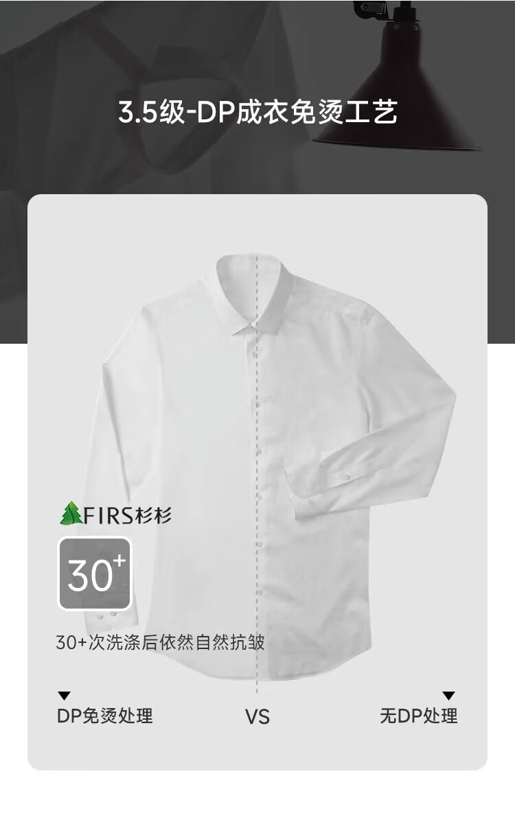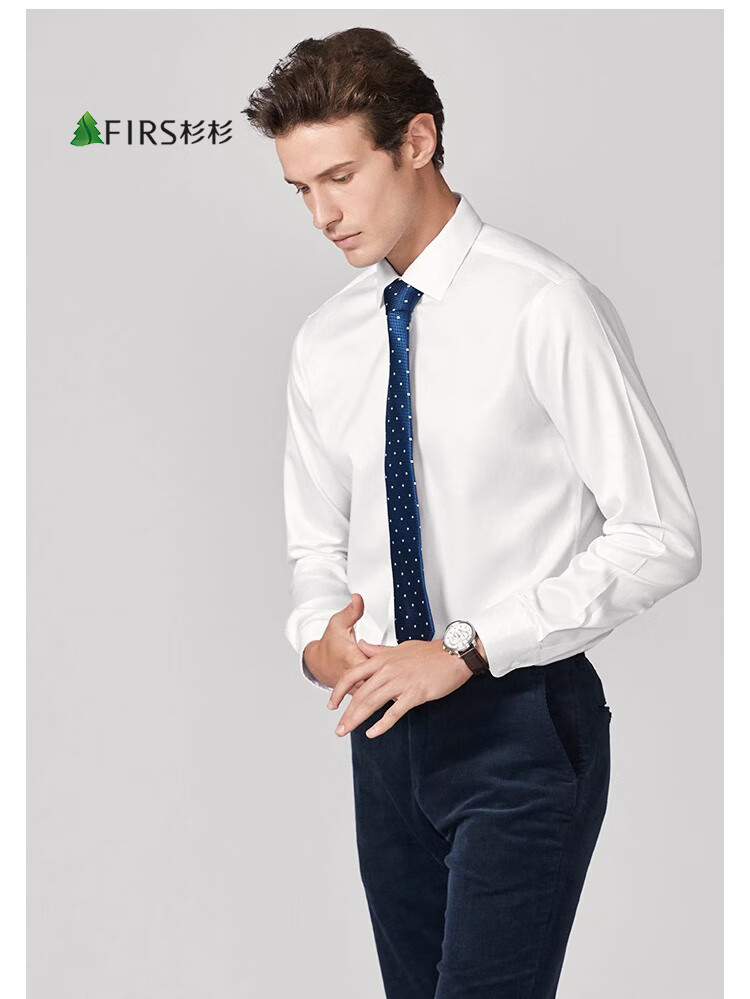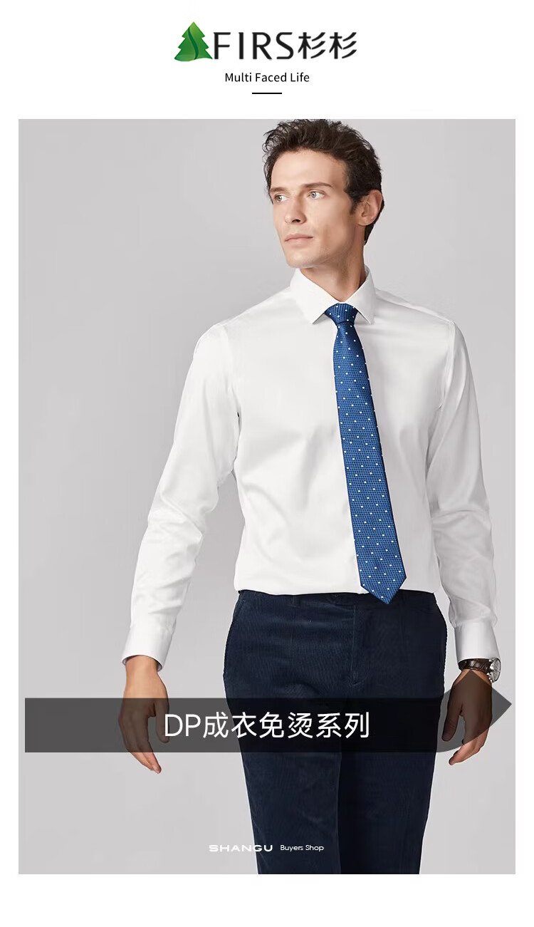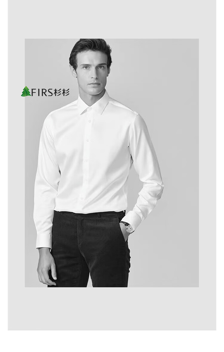 Shanshan (FIRS) 200-count DP, no ironing, lining at seams all over, high-end business long-sleeved shirt for men, white 42