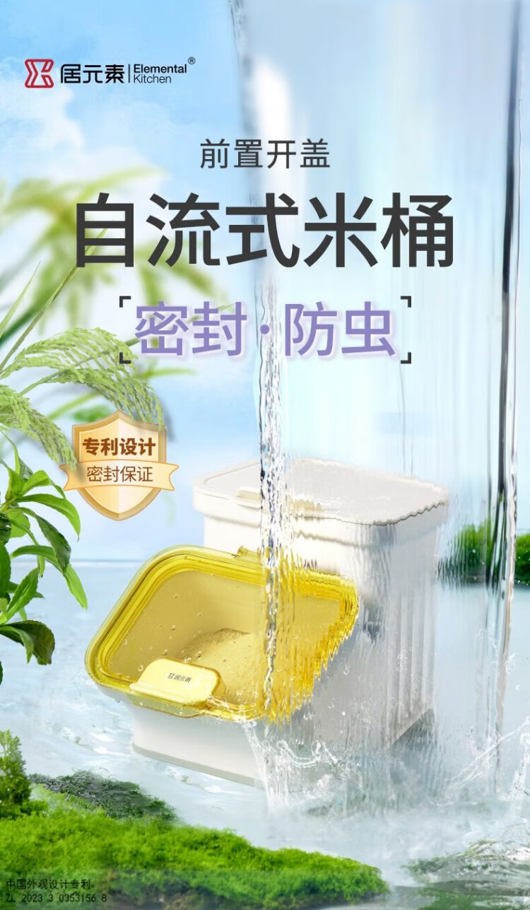 Ju element rice bucket household sealed insect-proof and moisture-proof rice storage box rice cylinder flour large-capacity grain storage bucket 10 Jin Jin equals 0.5 kg, minimalist gray