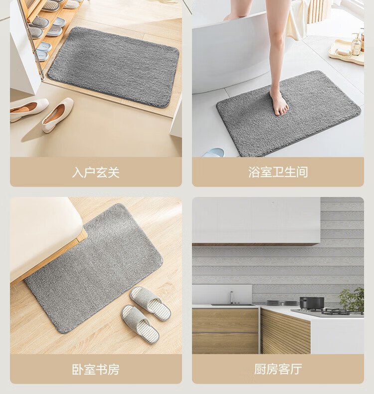 Made in Tokyo, Momo Tundra Bathroom Mat, Absorbent Door Mat, Toilet Non-Slip Foot Mat, Gray 40*60cm