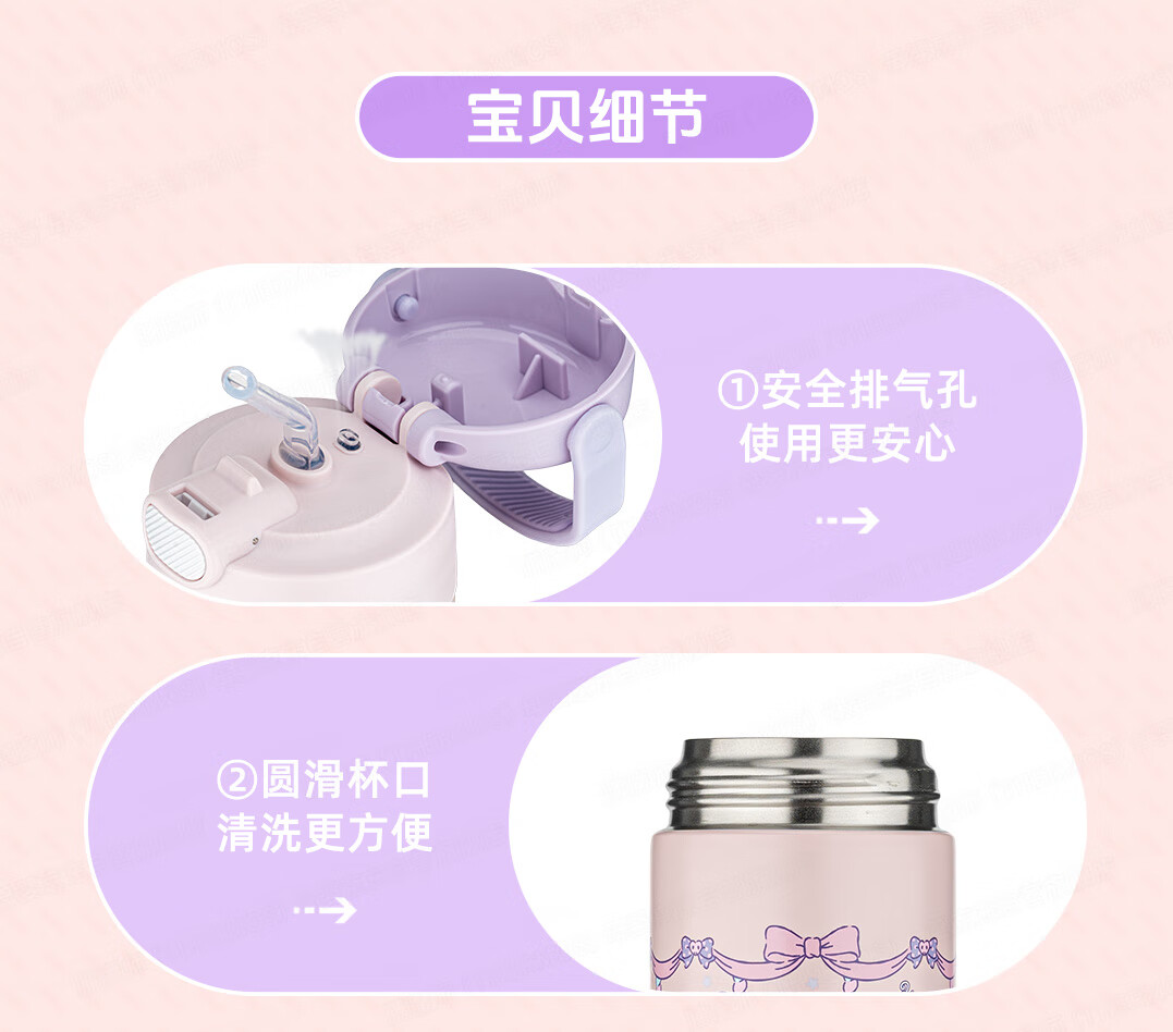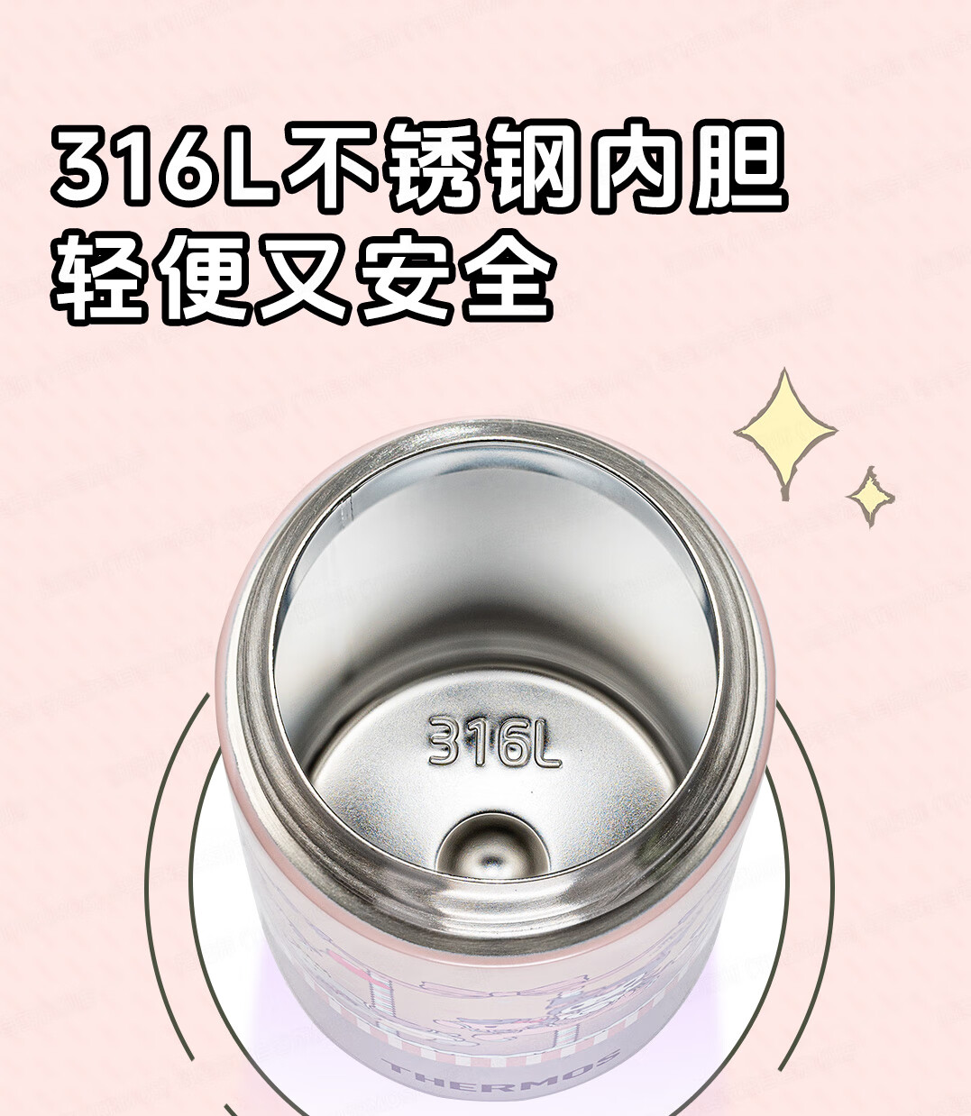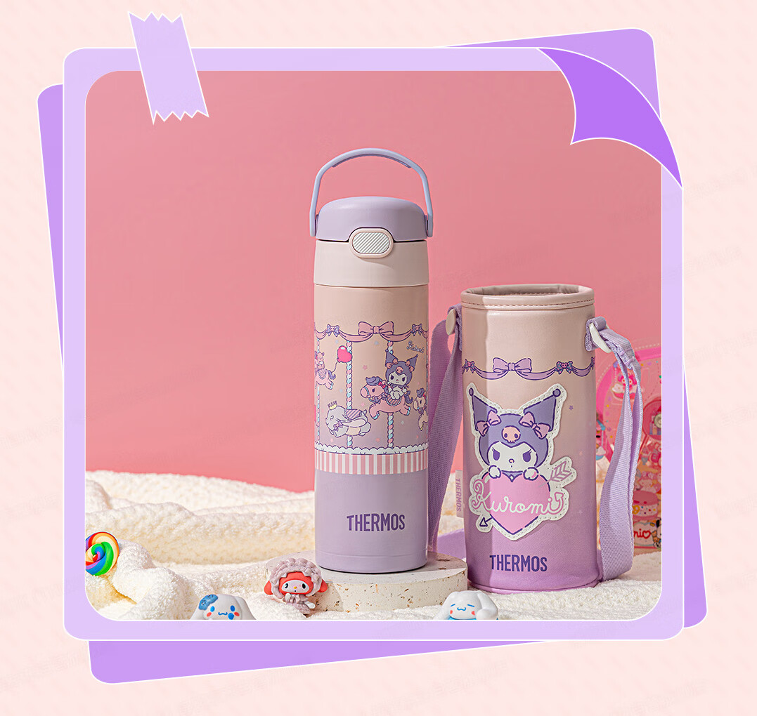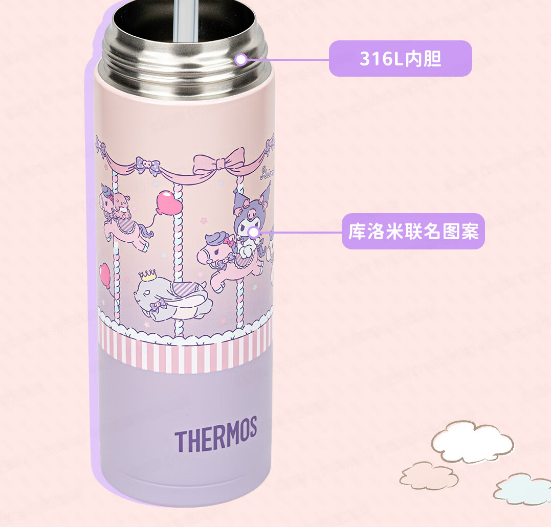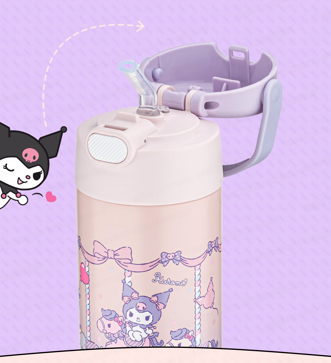 Thermos children's insulated straw direct drinking cup Kuromi 316 stainless steel kettle 500ml powder necessary for primary school girls to start school