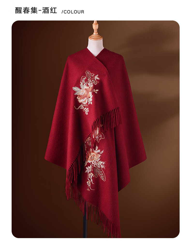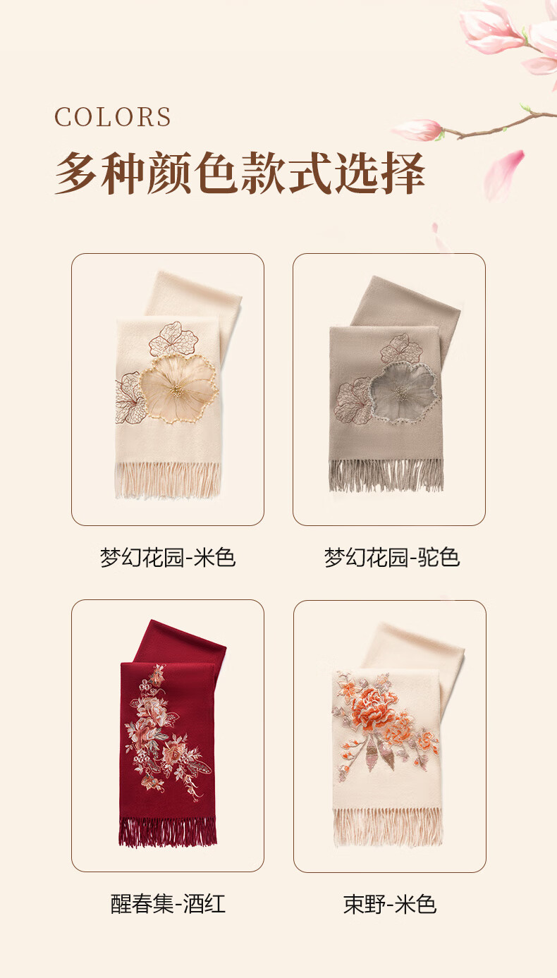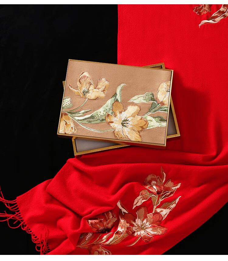 Hangsifu pure wool scarf, warm shawl, large size, practical and high-end flower Yingmi as a birthday gift for elders and mothers