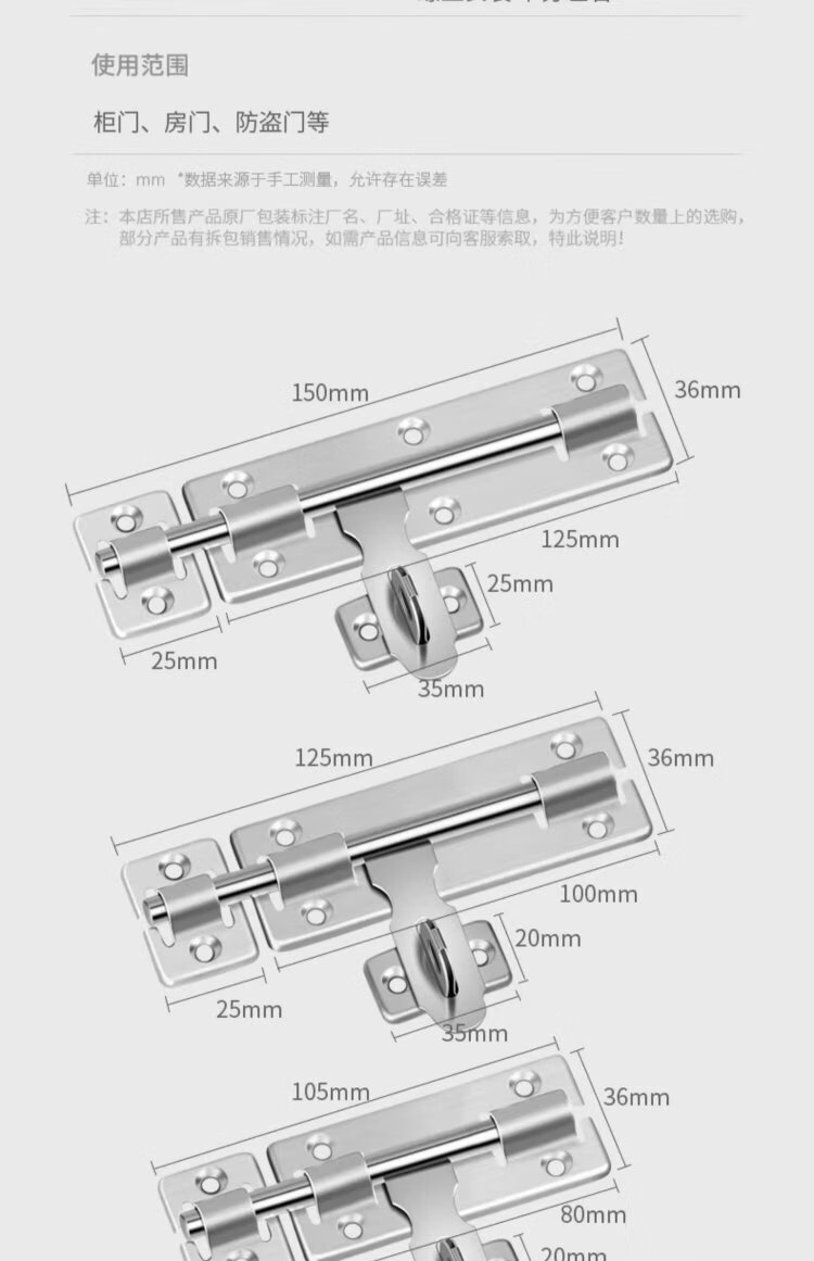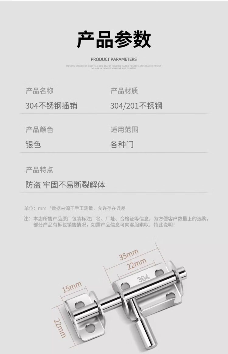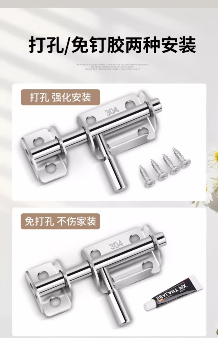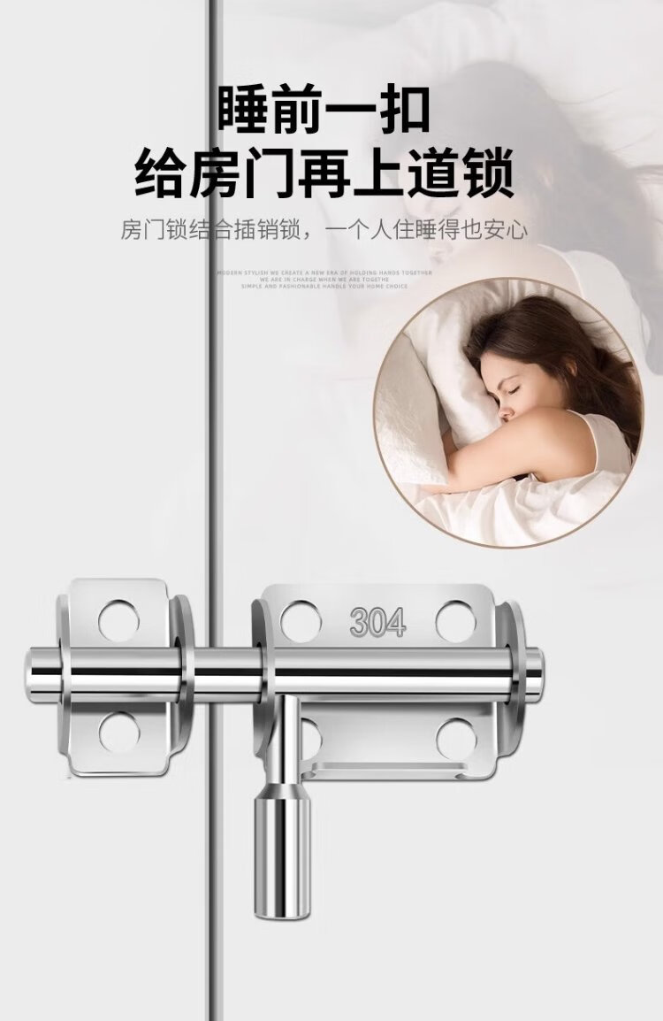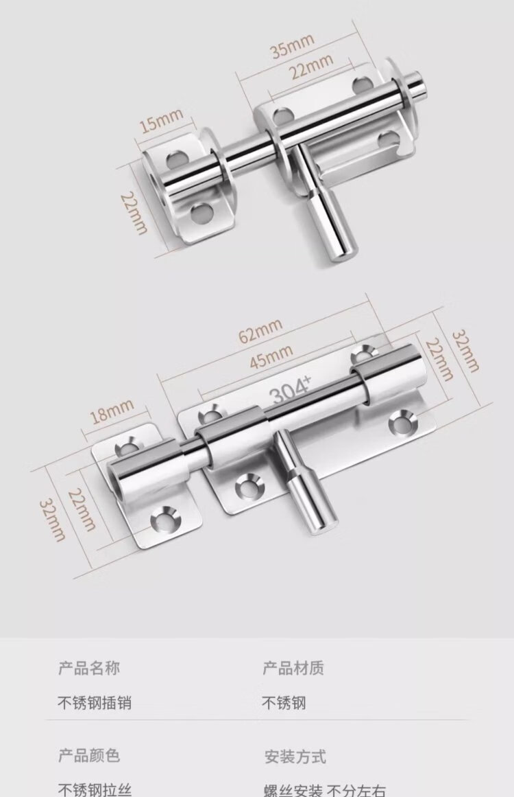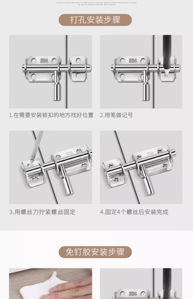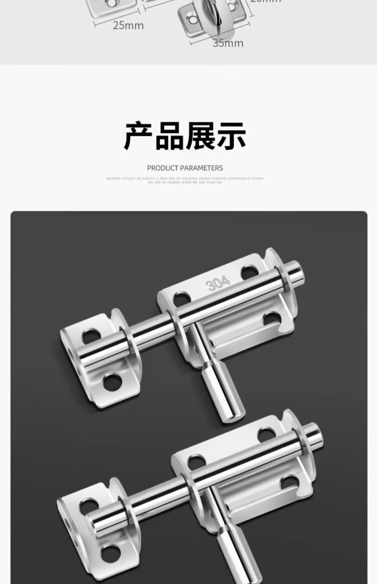 Shanhe Industrial Products 304 stainless steel latch door lock, wooden door and window anti-theft door latch, thickened stainless steel 8-inch latch, 2 pieces