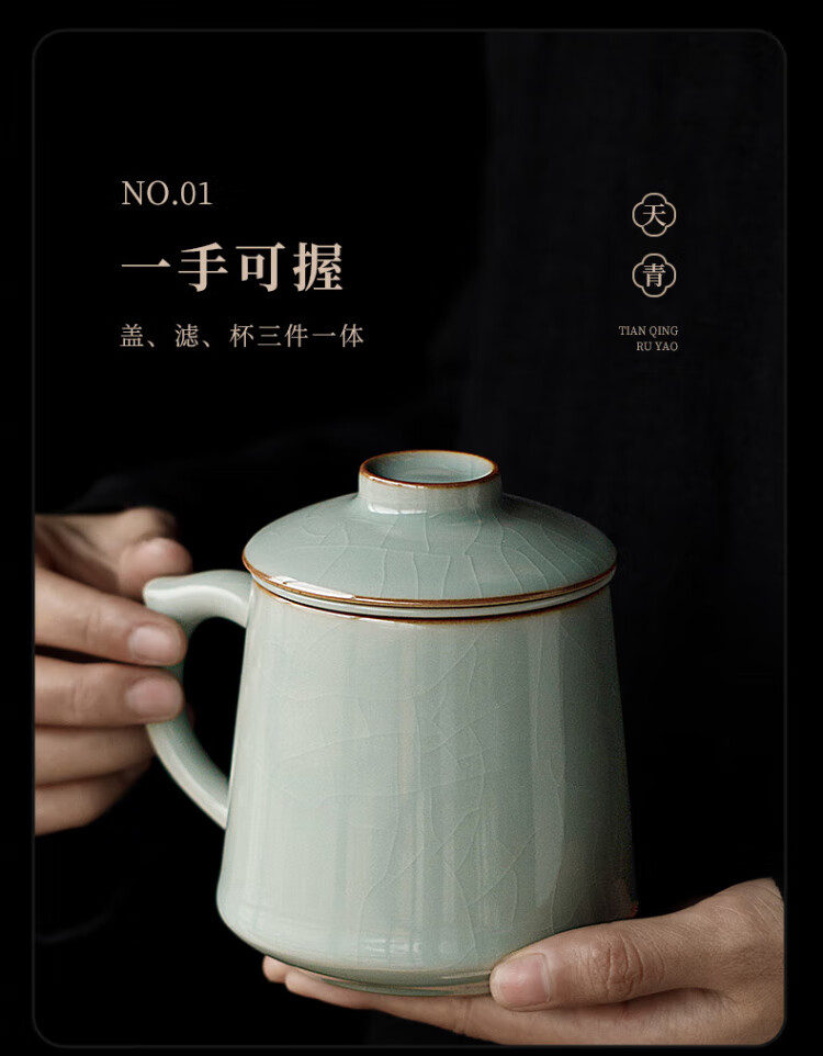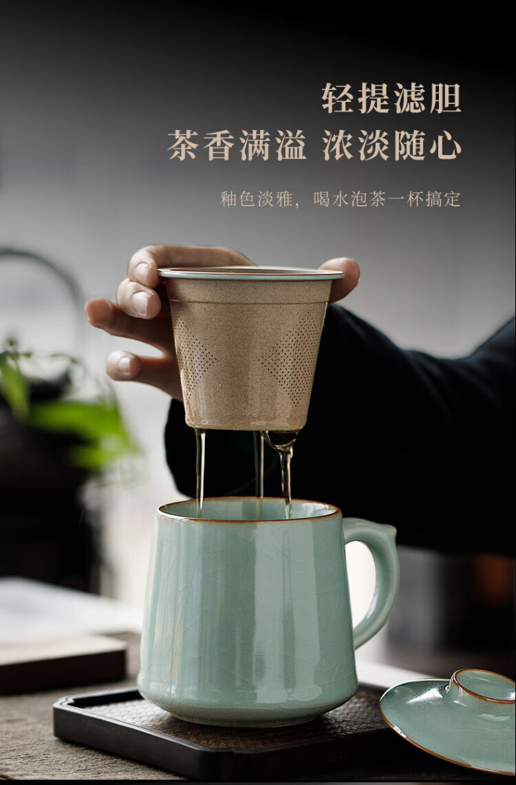 Tangfeng Li Guilian Ruyao office cup can grow open piece with filter tea cup tea water separation personal cup gift box
