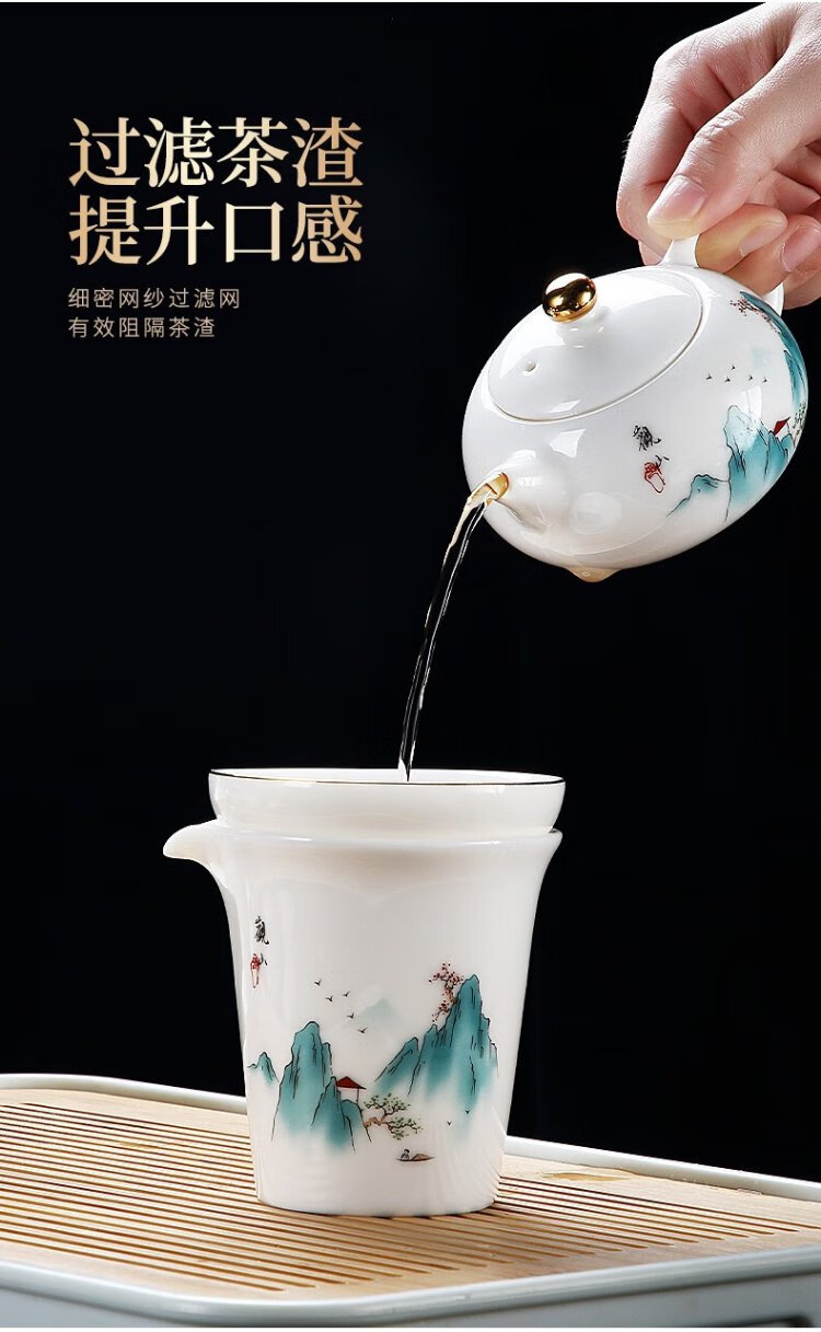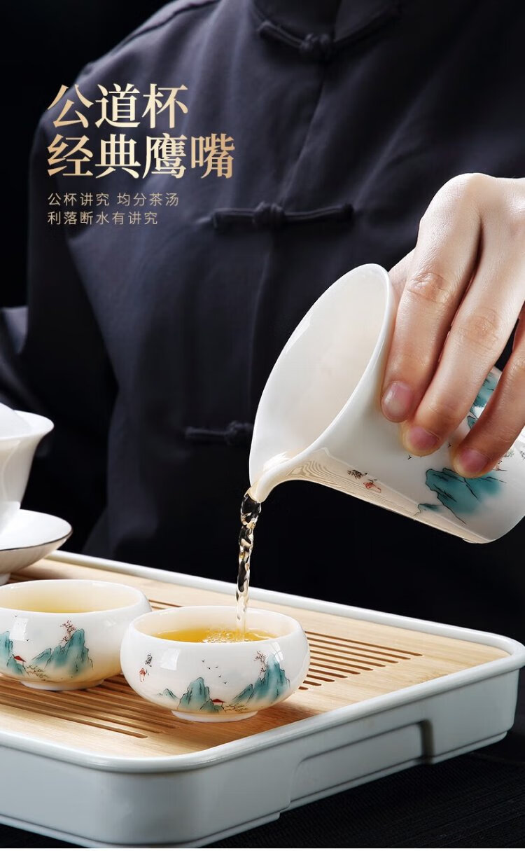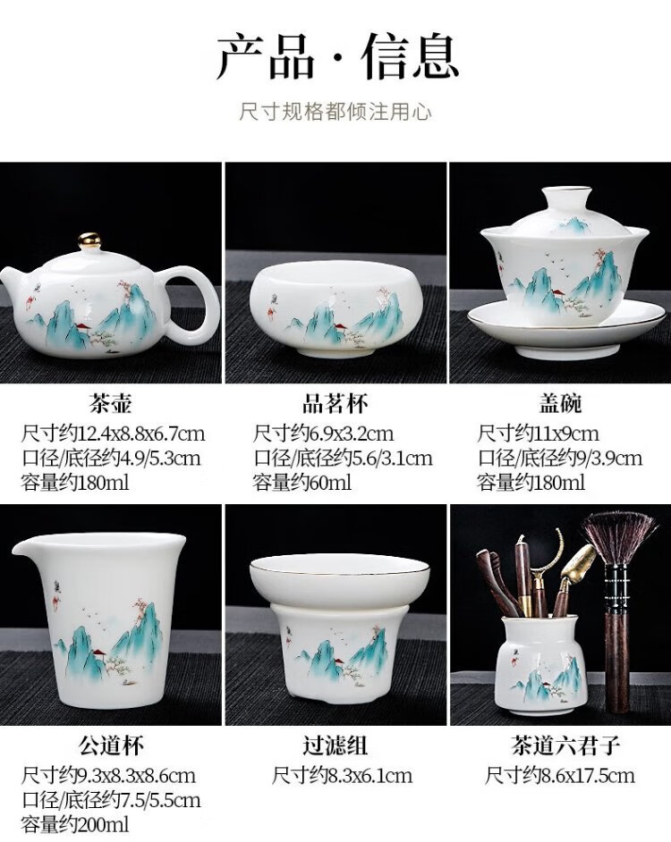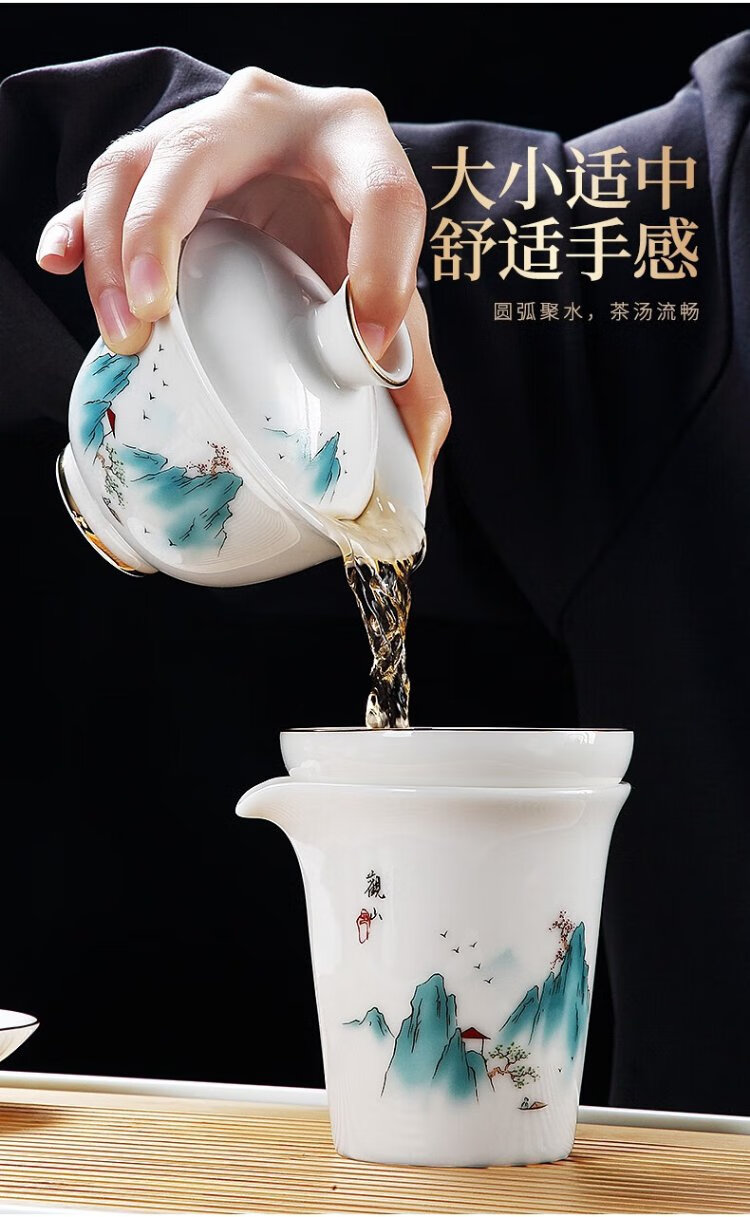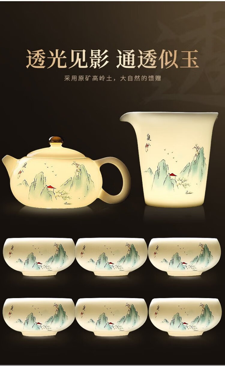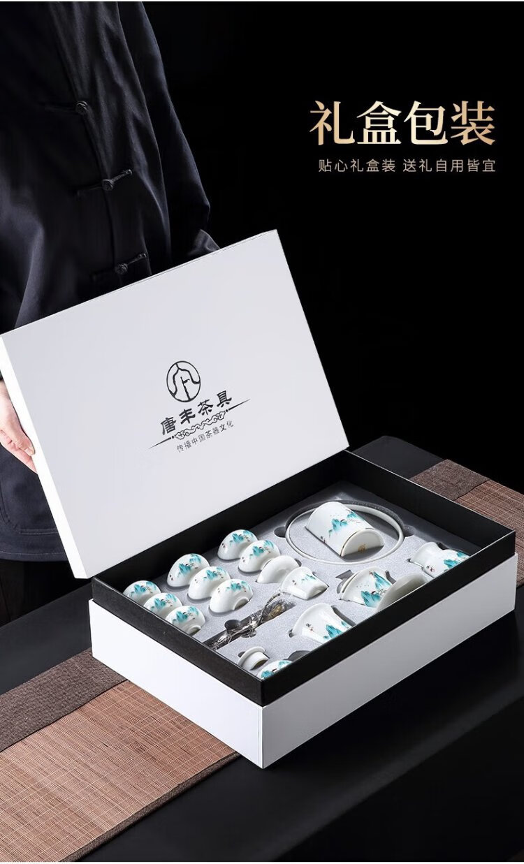Tang Feng mutton fat jade tea set teapot cover bowl office reception tea set high-end Dehua white porcelain Kung Fu tea cup gift box