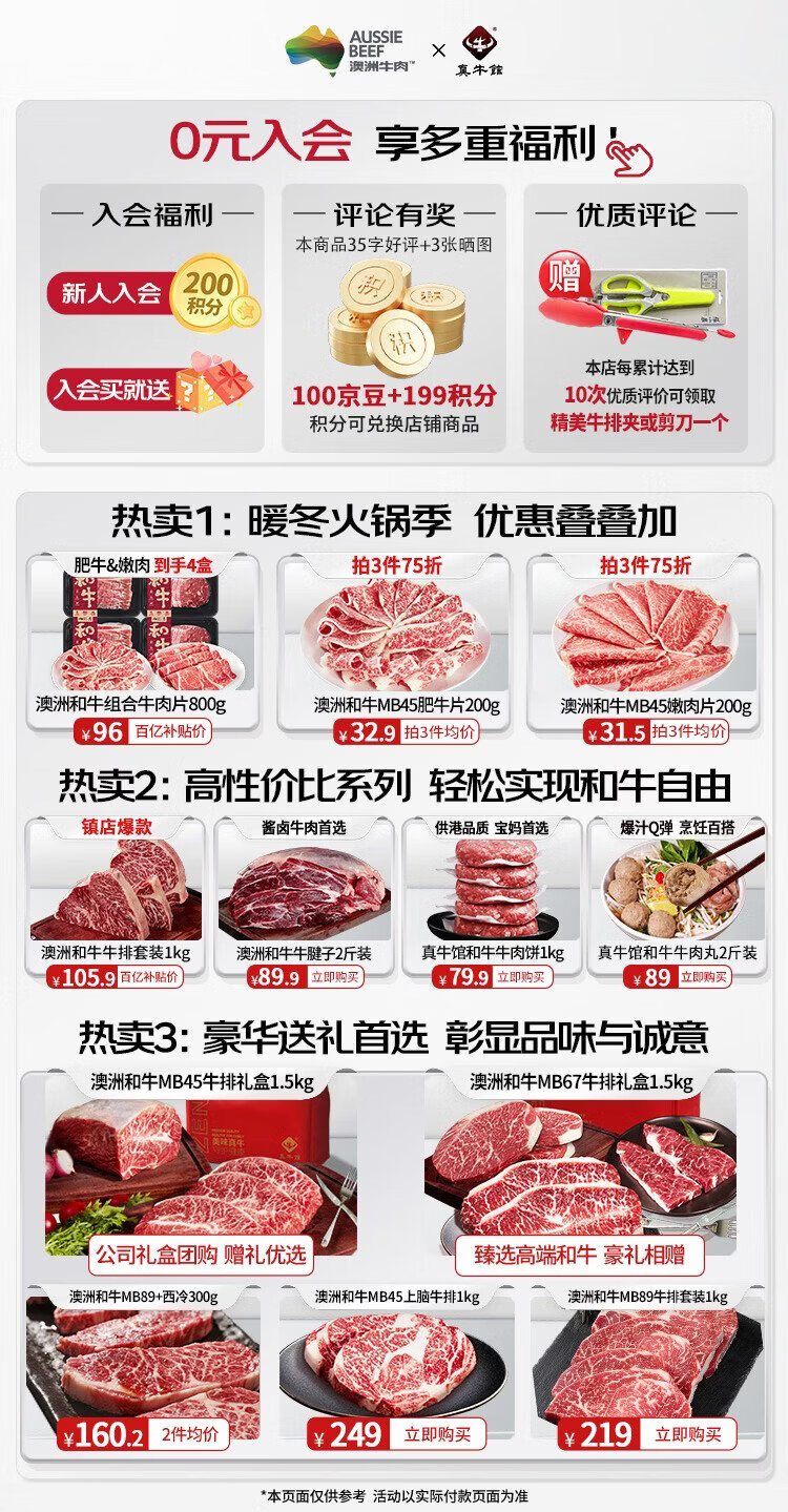 Real beef restaurant Australian wagyu raw cut shabu-shabu beef slices 800g hot pot barbecue ingredients fat beef tender meat slices real raw cut