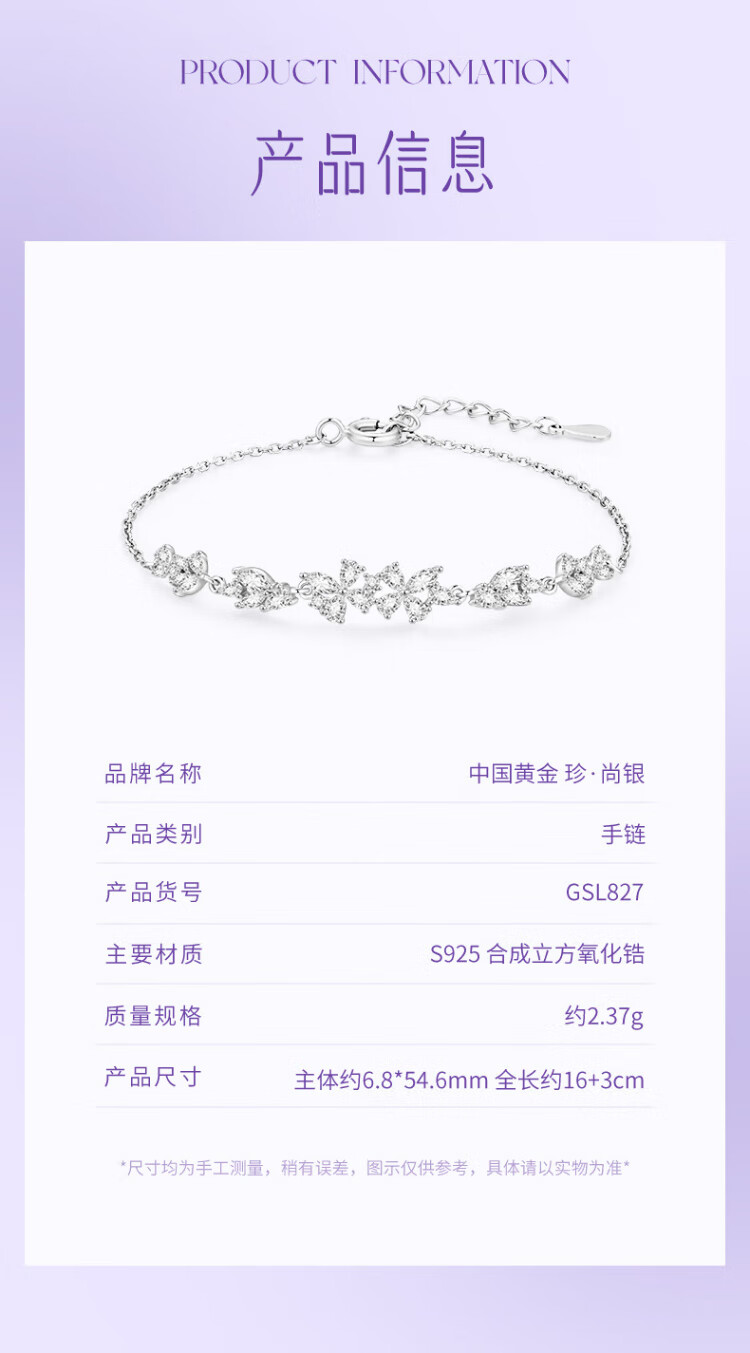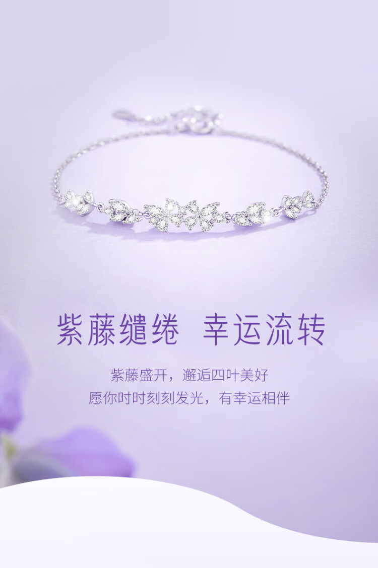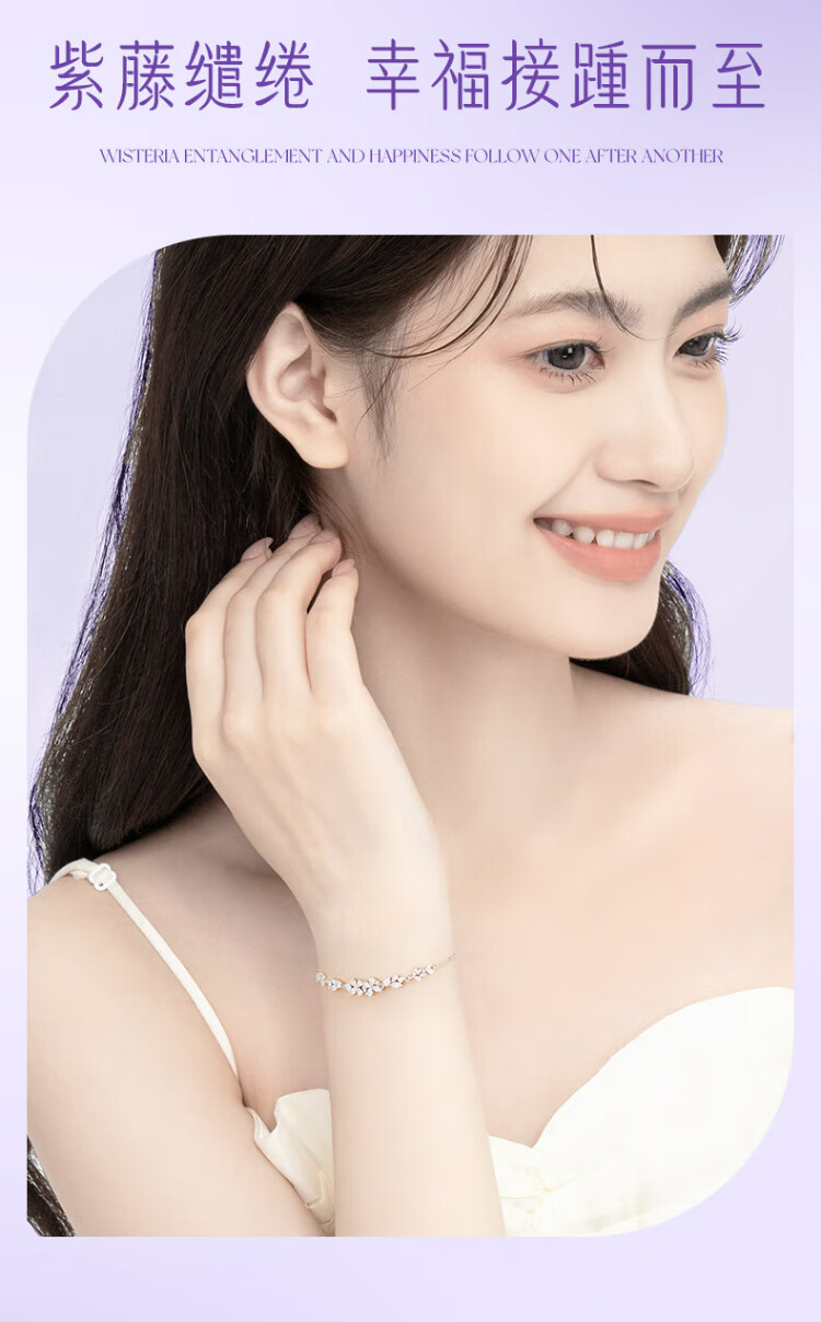 Zhen Shang Silver Chinese Gold Wisteria Silver Bracelet Girls Birthday Gift Anniversary Gift for Girlfriend Wife Best Friend High-end Niche