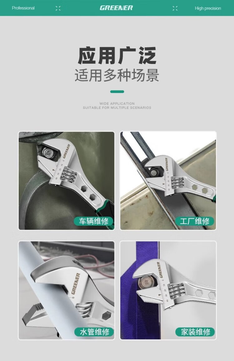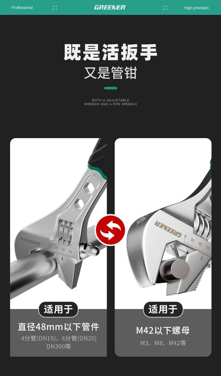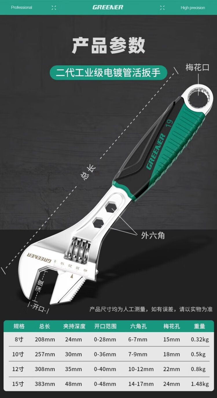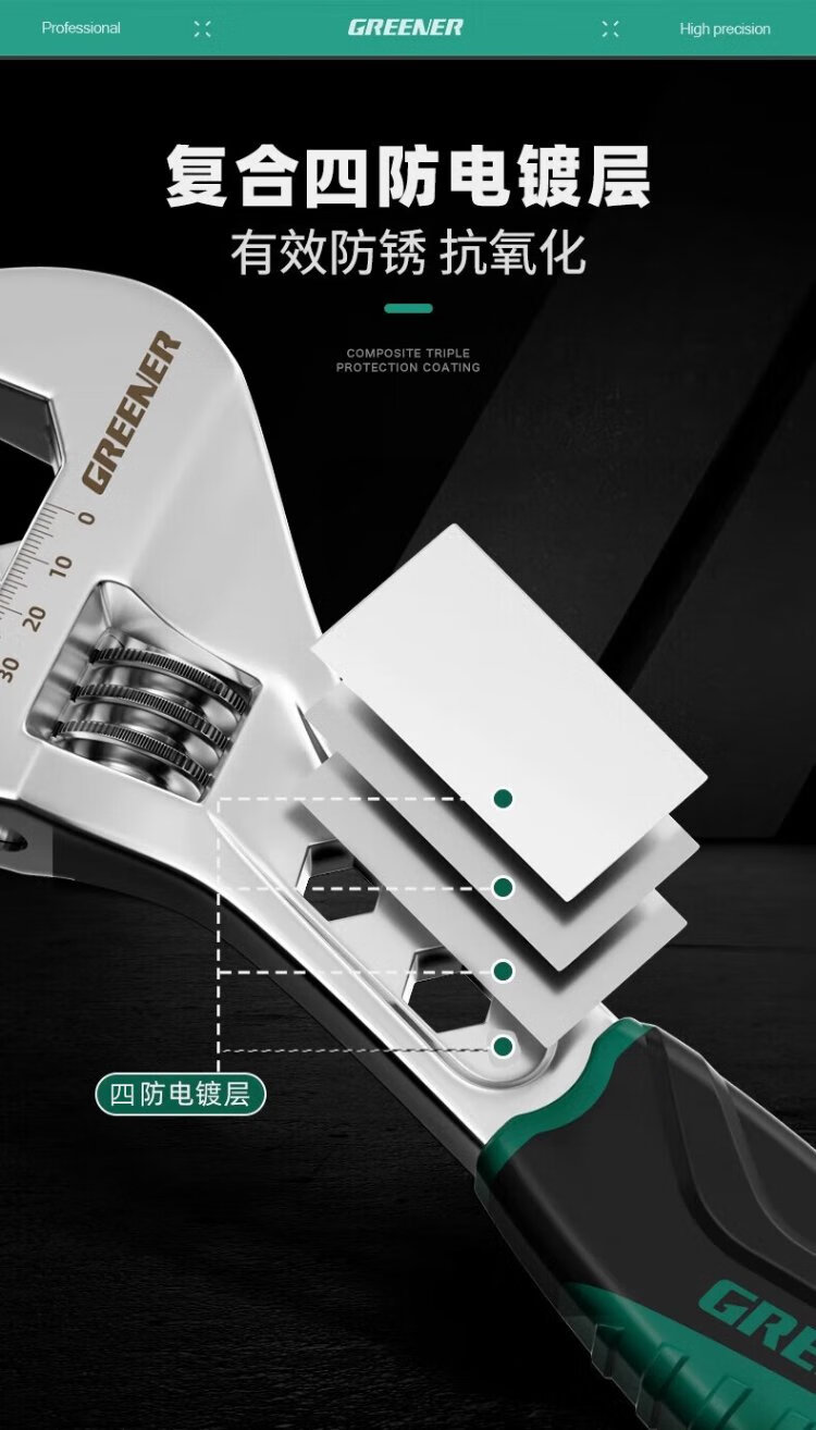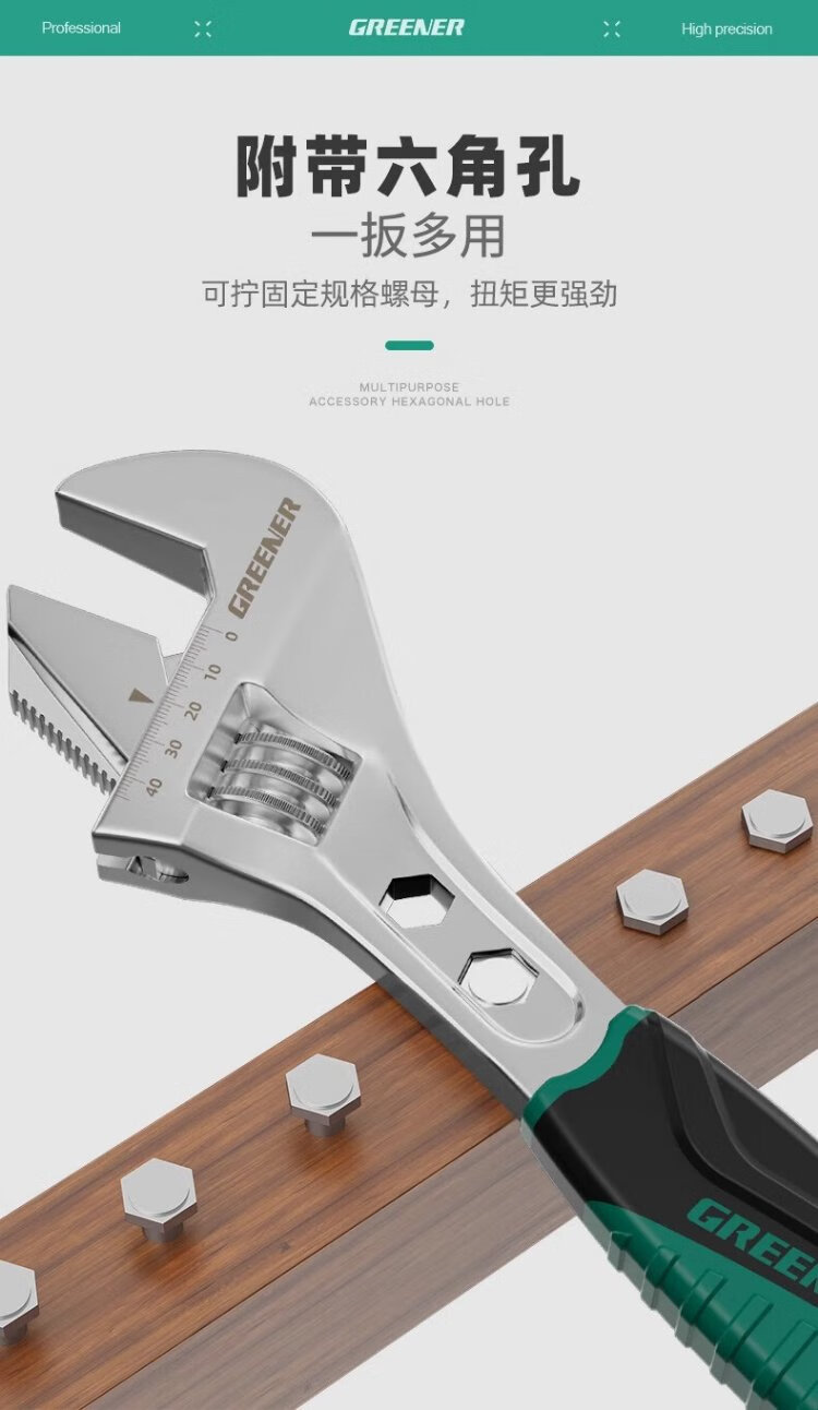 GREENER adjustable wrench multifunctional household universal adjustable wrench 10-inch open bathroom wrench adjustable wrench