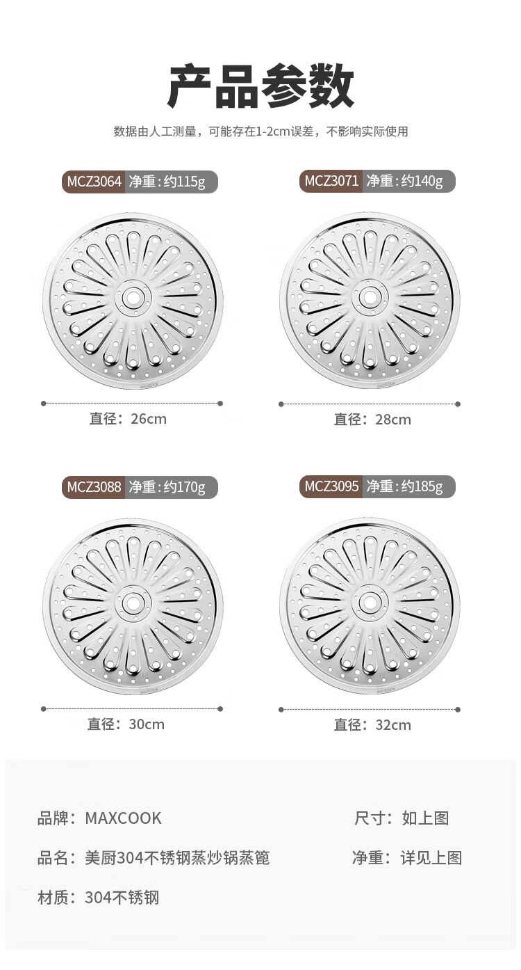 MAXCOOK steaming sheet steaming grate 304 stainless steel steaming rack steamer wok soup pot grate 32cm MCZ3095