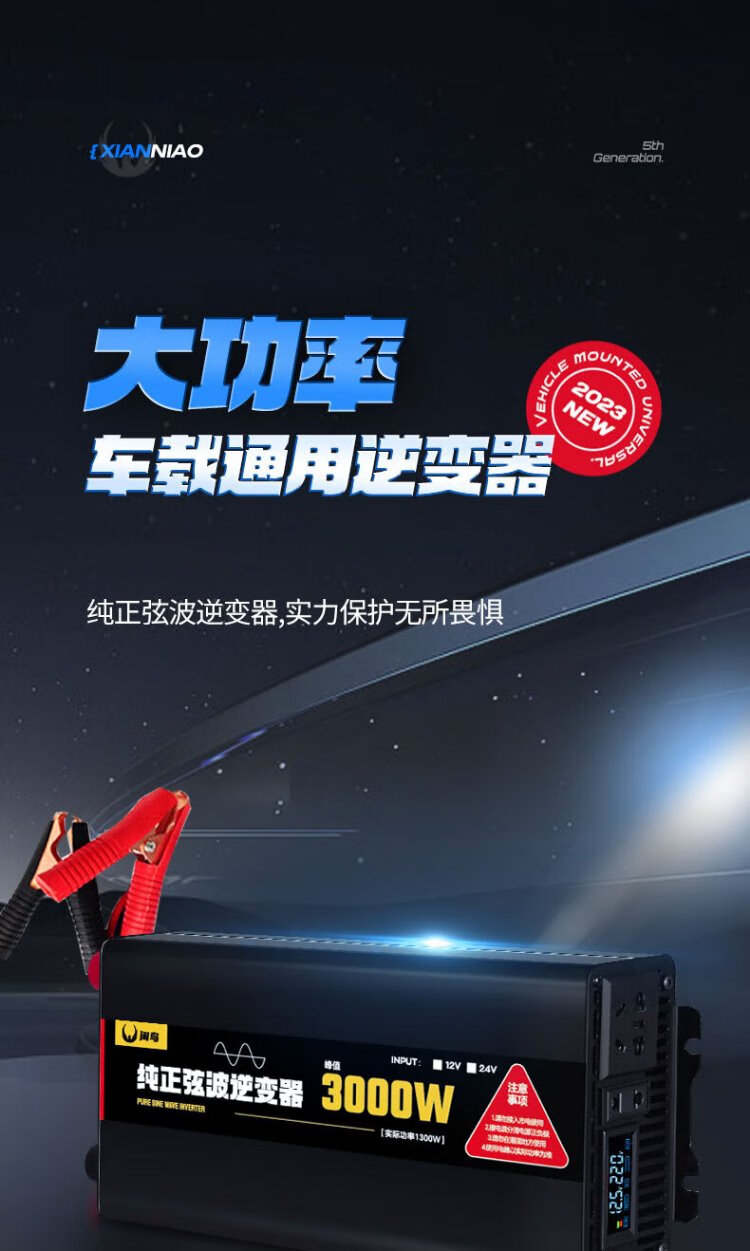 Xianniao car inverter 24V to 220V high power 3000W truck pure sine wave tricycle stall transformer