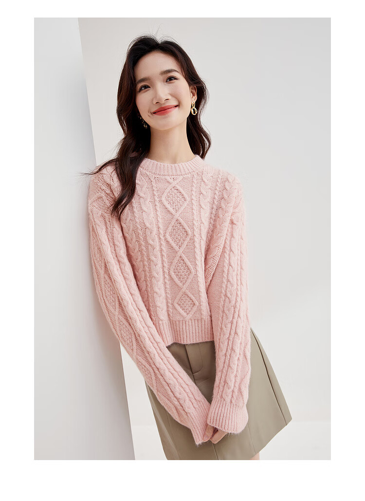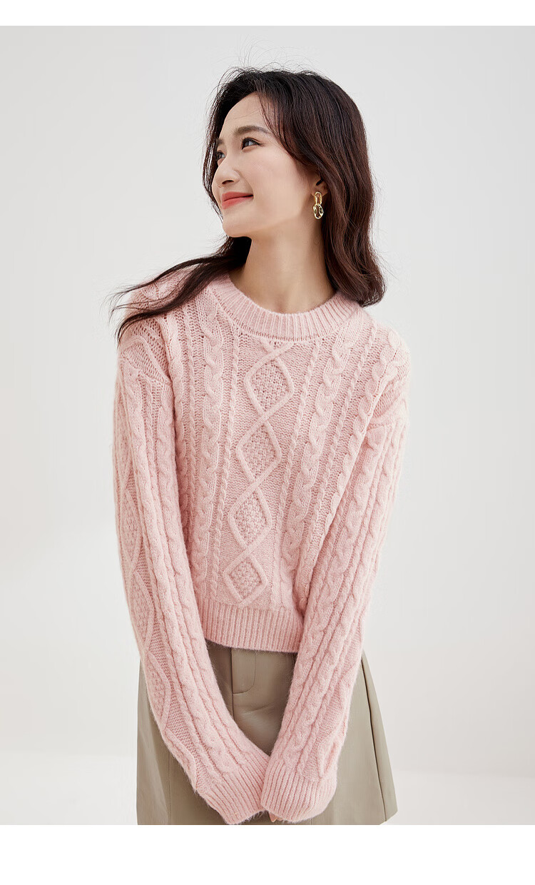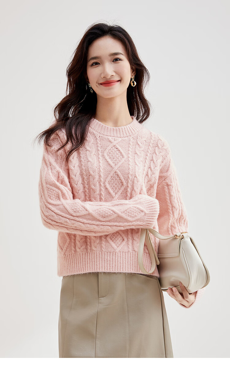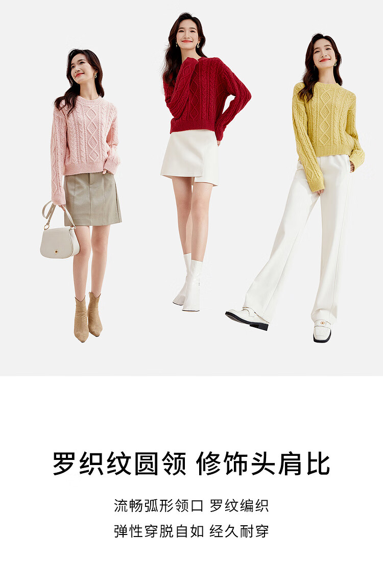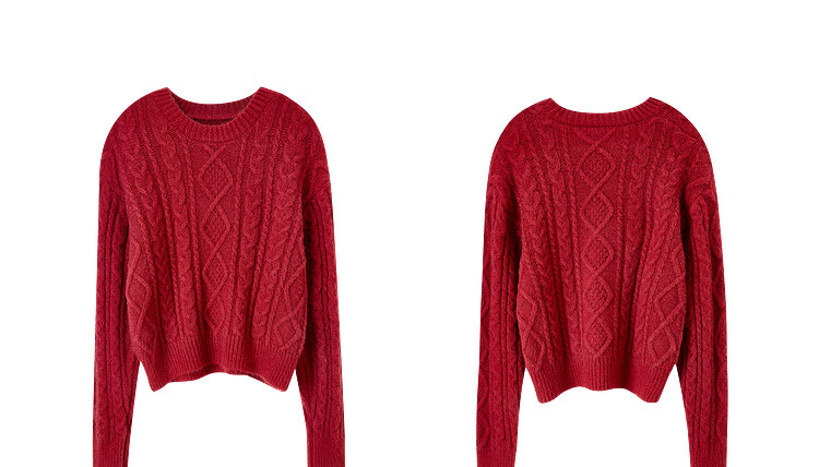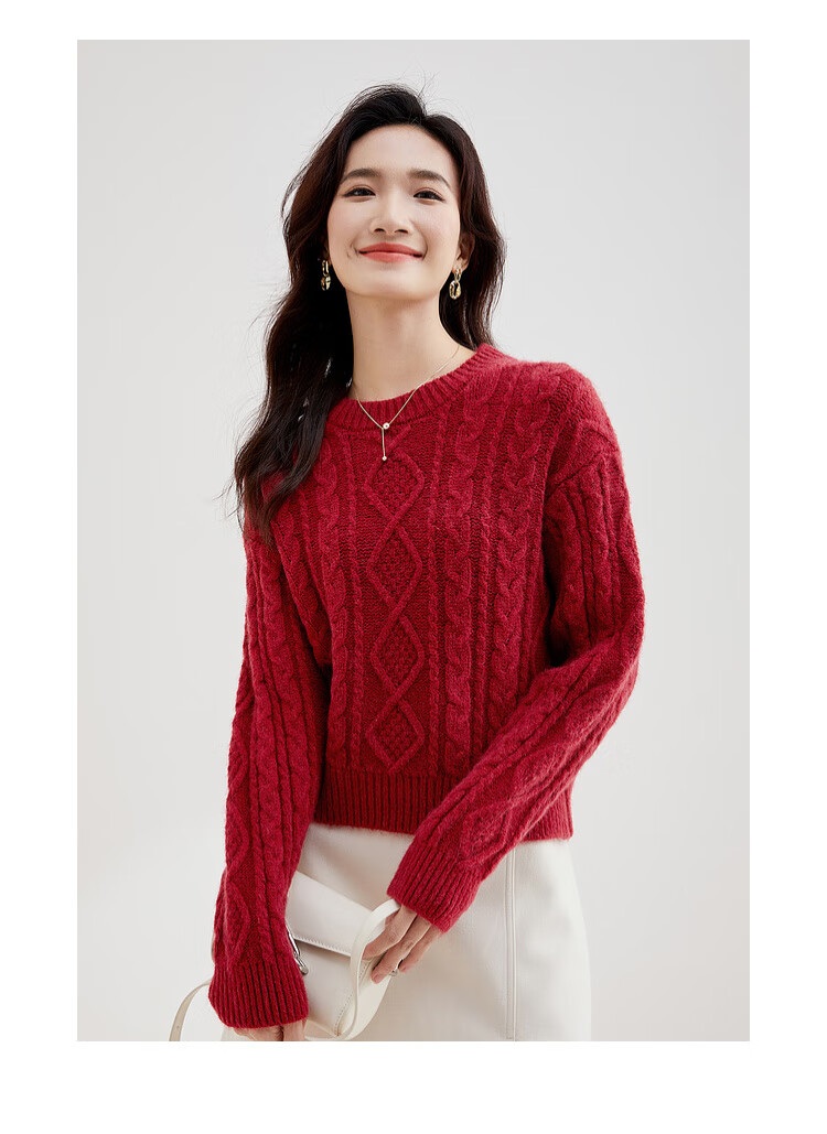 Shandubila Winter Retro Diamond Twist Sweater Women's Small Round Neck Versatile New Year's Red Sweater Red M