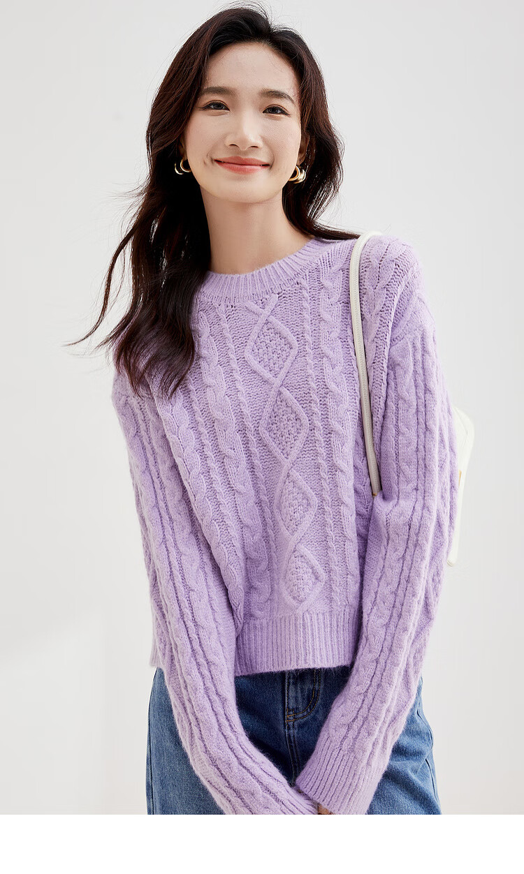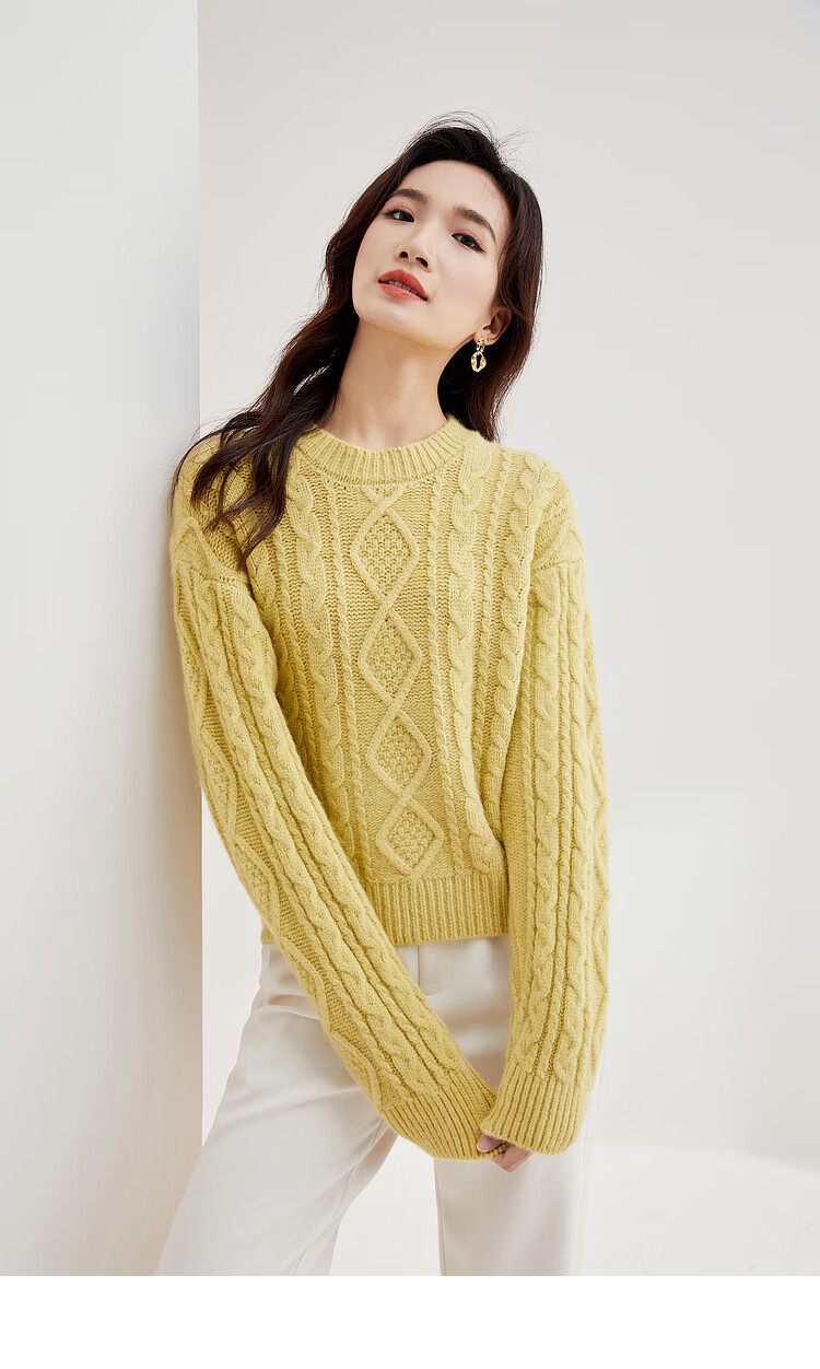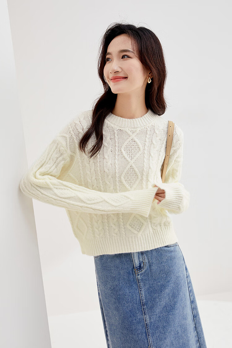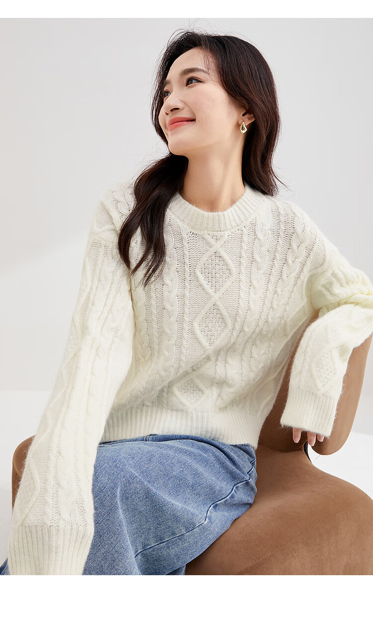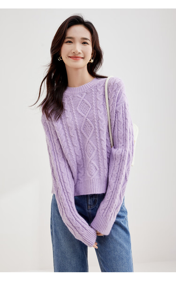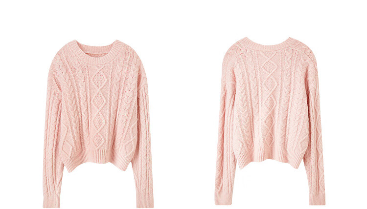 Shandubila Winter Retro Diamond Twist Sweater Women's Small Round Neck Versatile New Year's Red Sweater Red M