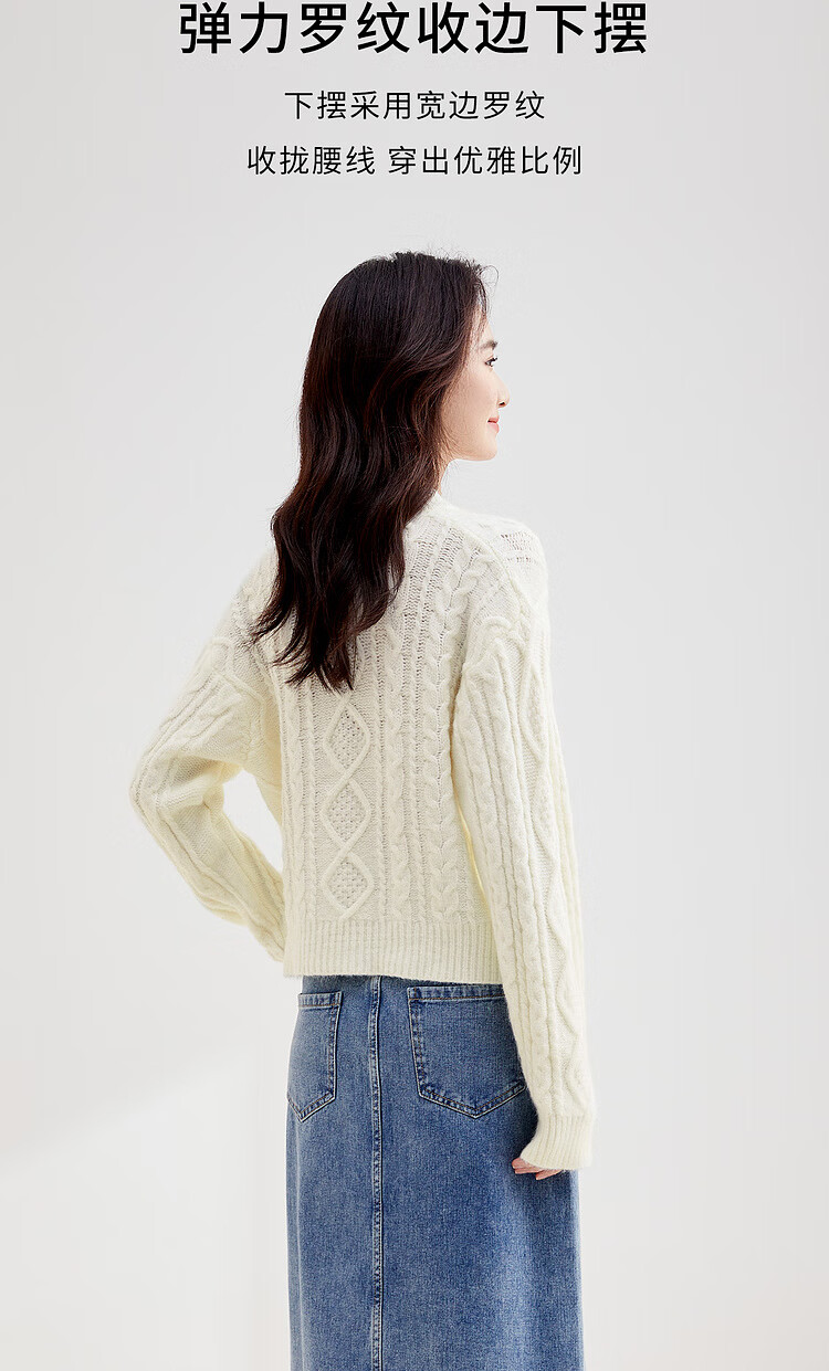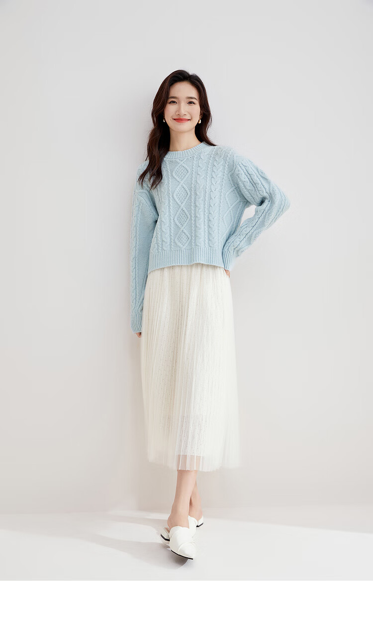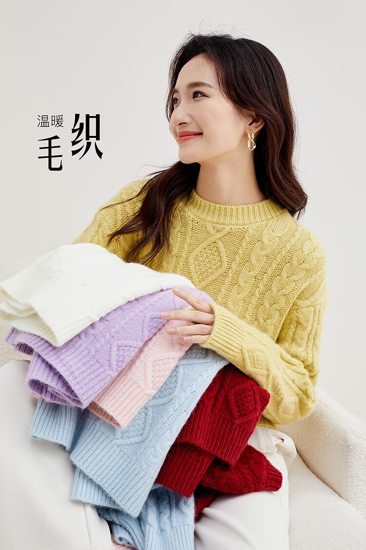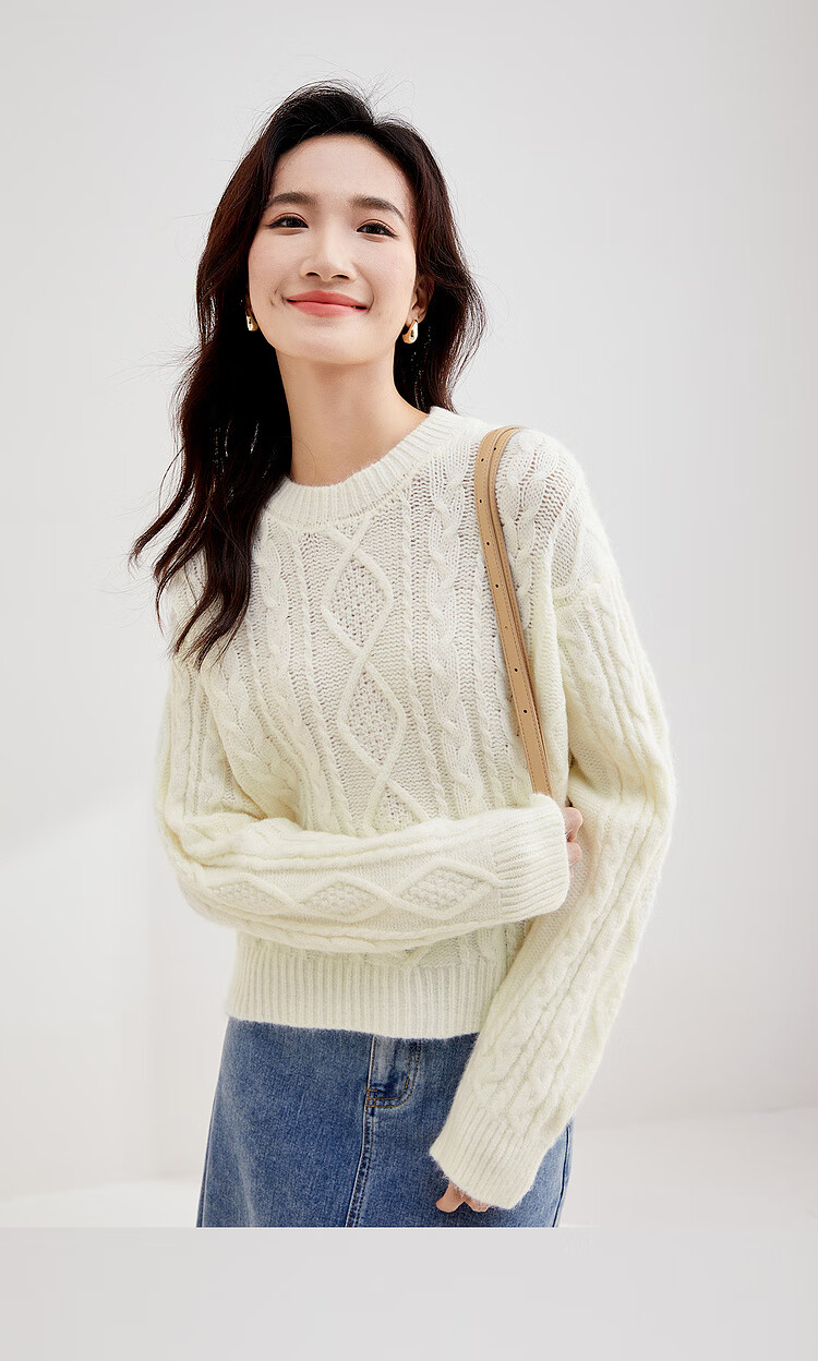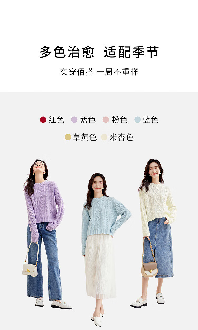 Shandubila Winter Retro Diamond Twist Sweater Women's Small Round Neck Versatile New Year's Red Sweater Red M