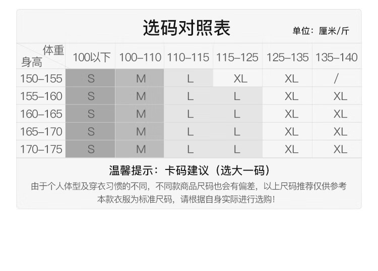 China (cm) 160-165/84-86 165-170 / 88-90 167-172 / 92-96 168-173 / 98-102 170-176 / 106-110