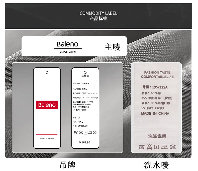 Baleno velvet casual pants for men in winter, thickened and warm for outer wear, men's leggings, loose and slimming, trendy leggings for teenagers