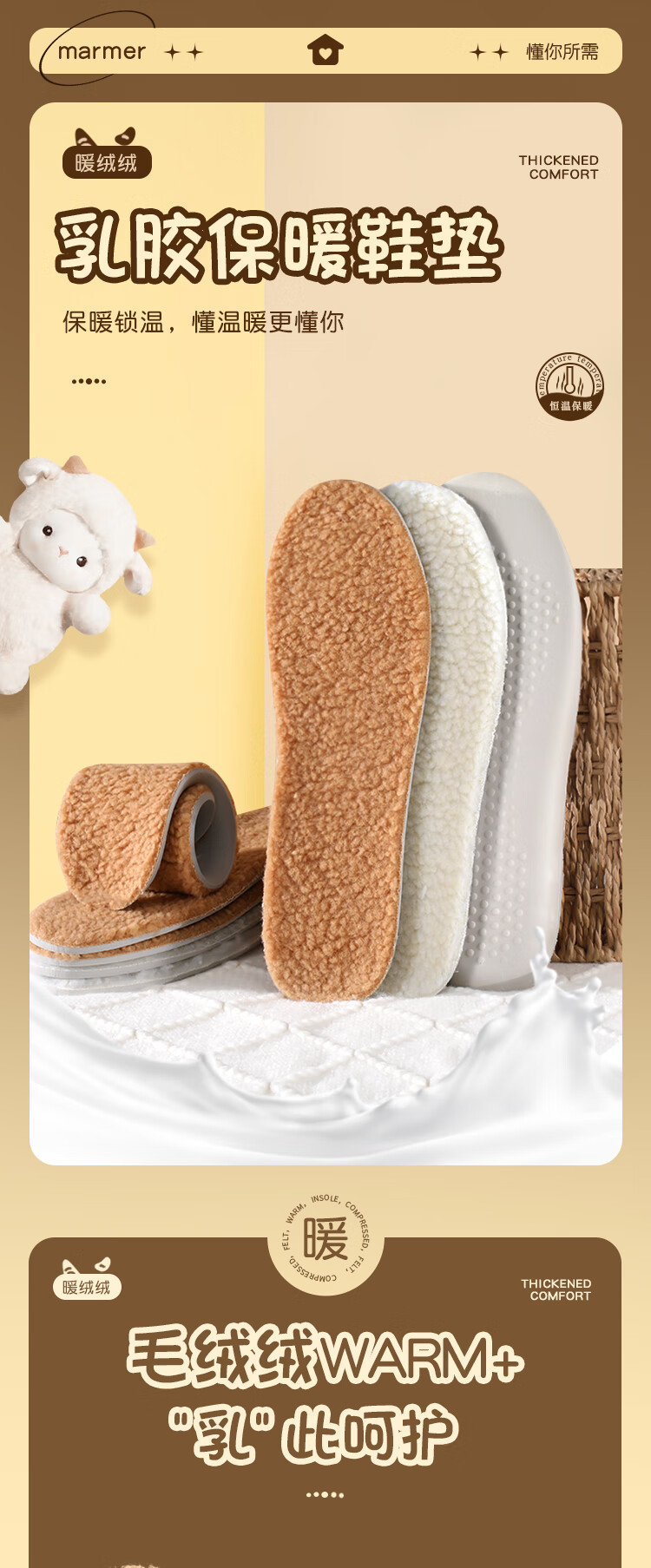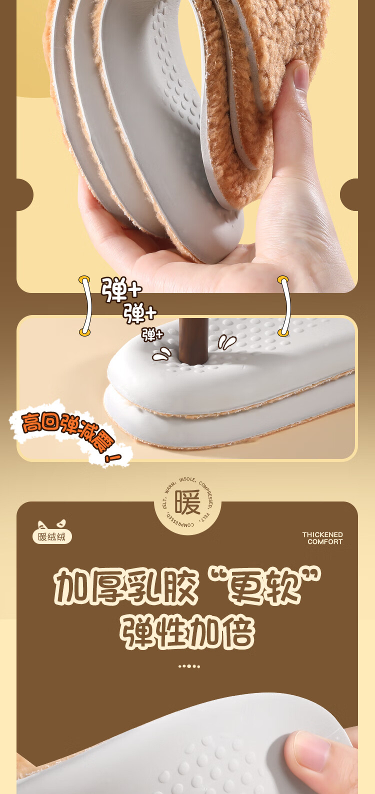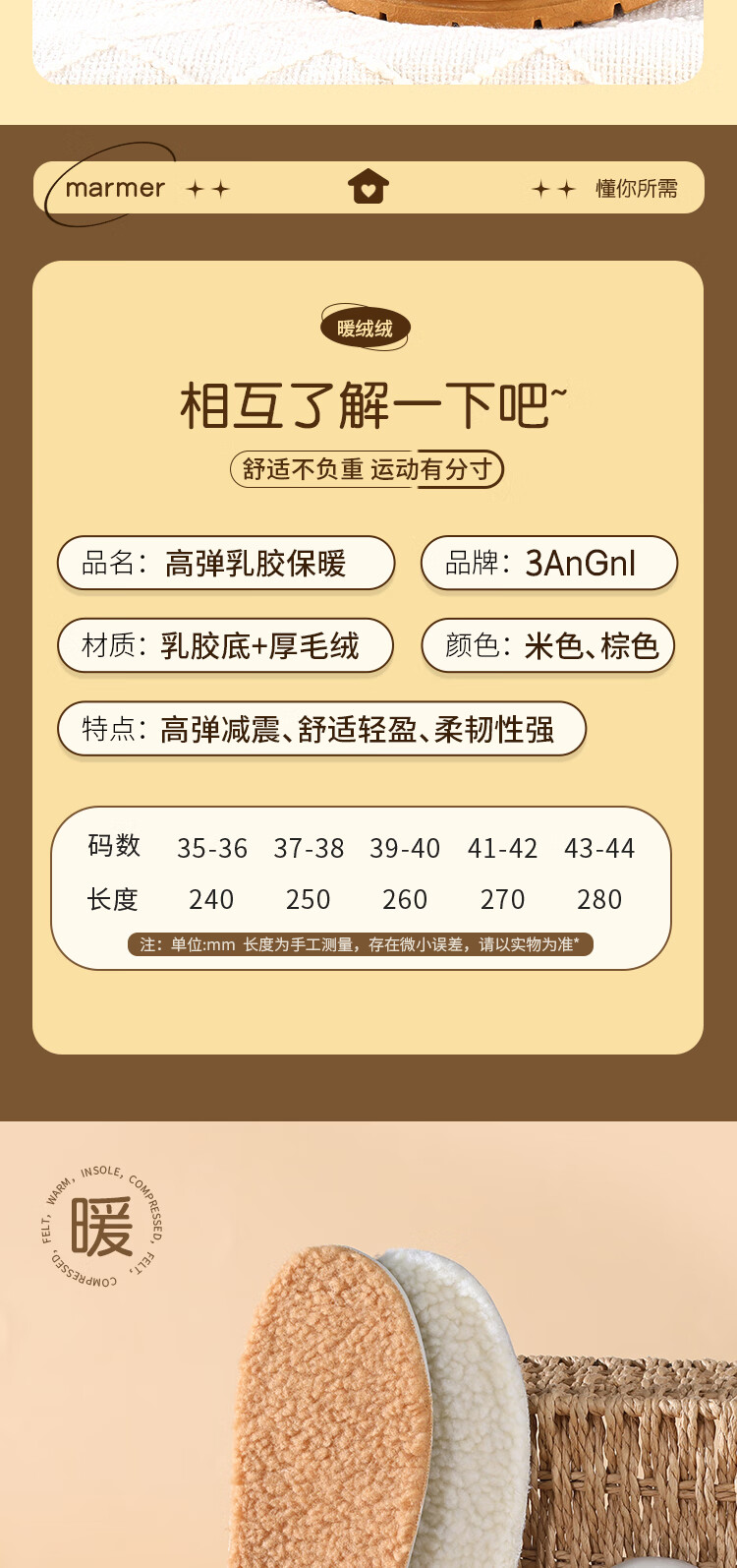 3AnGnI Latex Warm Insole for Men and Women Winter Thickened Cotton Insole High Elasticity Super Soft Shock Absorption Beige Size 37-38