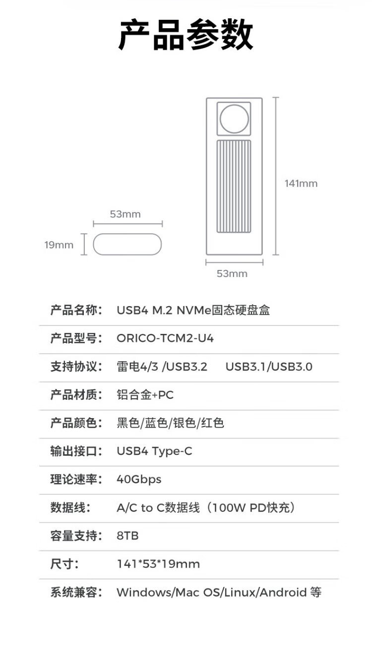 Orric USB4 hard drive enclosure 40Gbps compatible with Thunderbolt 4/3 M.2 NVMe mobile hard drive enclosure suitable for Apple Mac mini notebook SSD solid state expansion TCM2-Silver