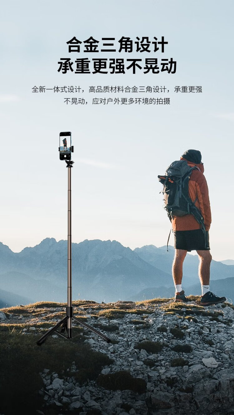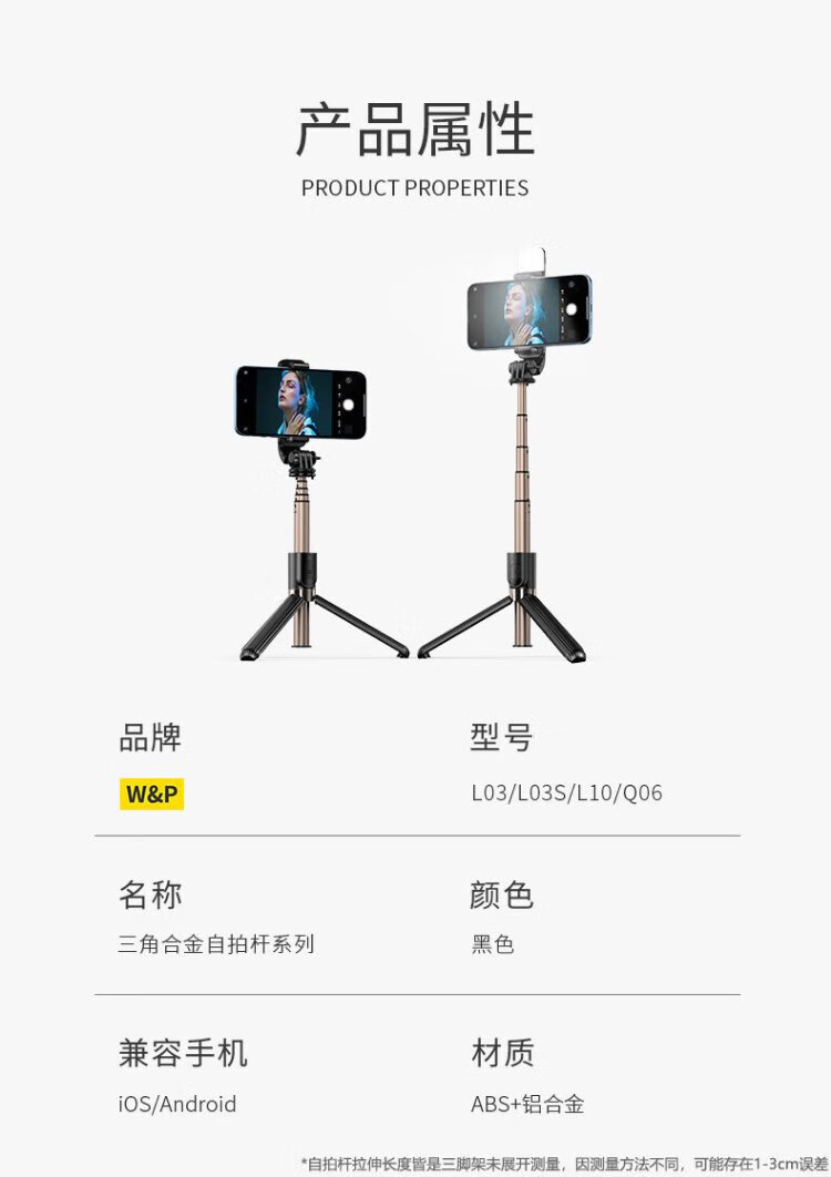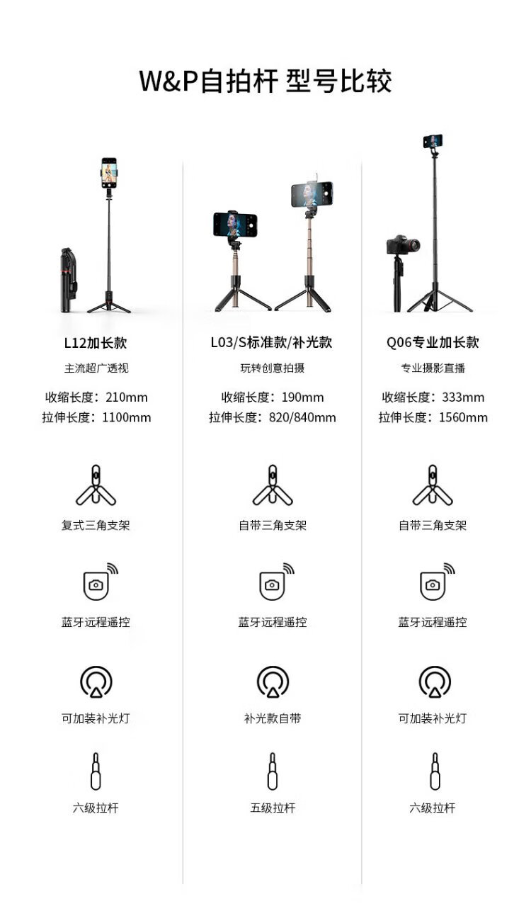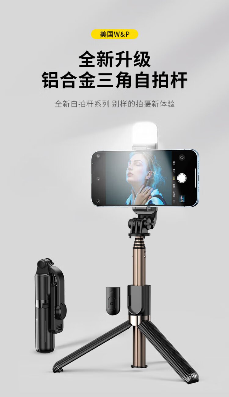 W&P selfie stick tripod anti-shake pan/tilt retractable handheld mobile phone holder 360-degree rotating multi-functional live broadcast floor-standing camera artifact travel shooting portable Bluetooth wp