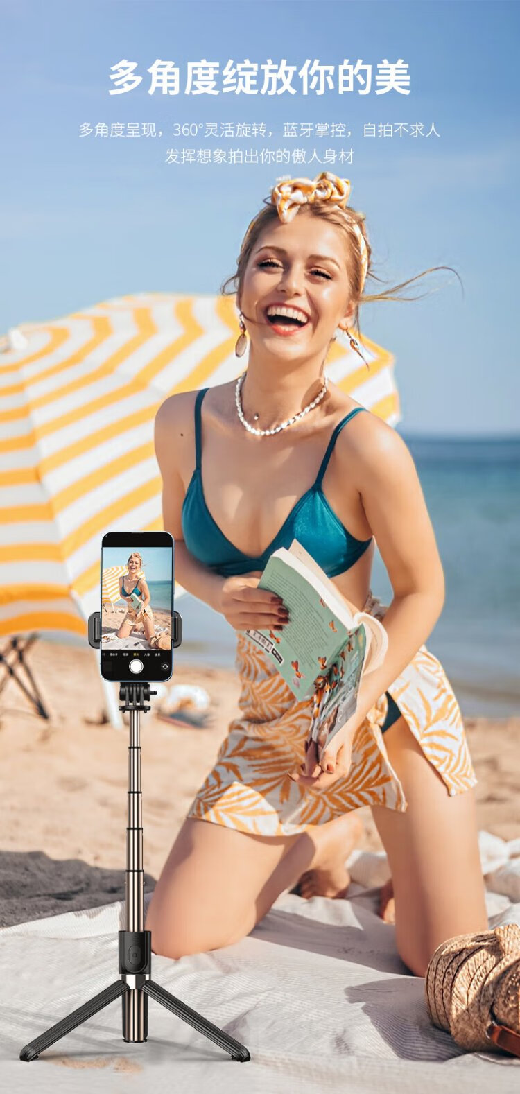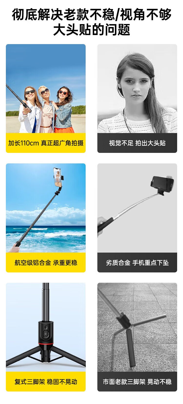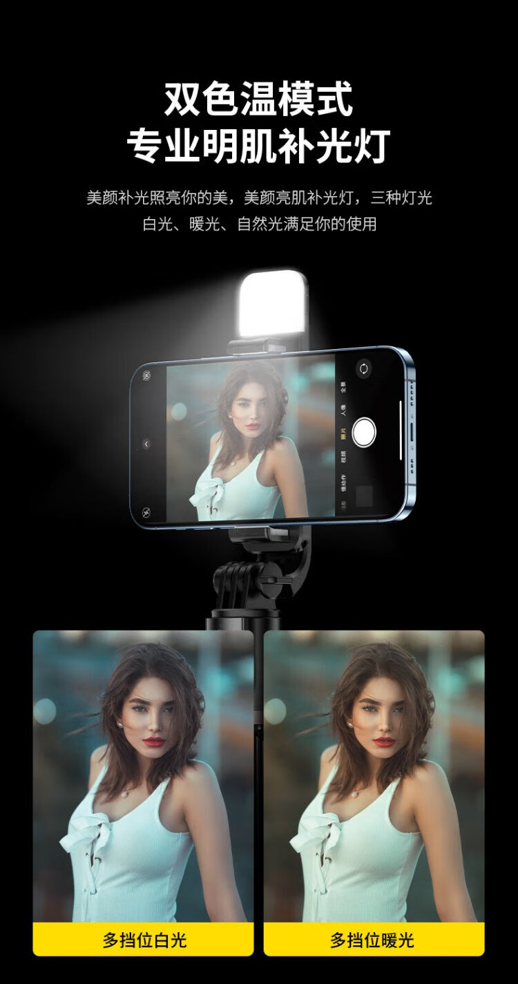 W&P selfie stick tripod anti-shake pan/tilt retractable handheld mobile phone holder 360-degree rotating multi-functional live broadcast floor-standing camera artifact travel shooting portable Bluetooth wp