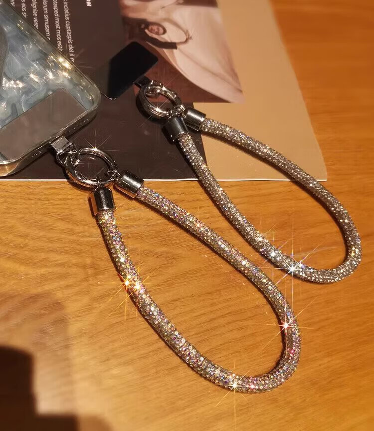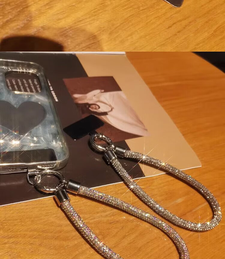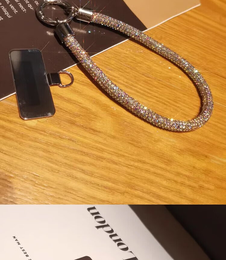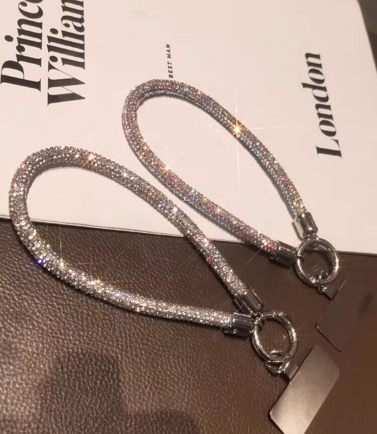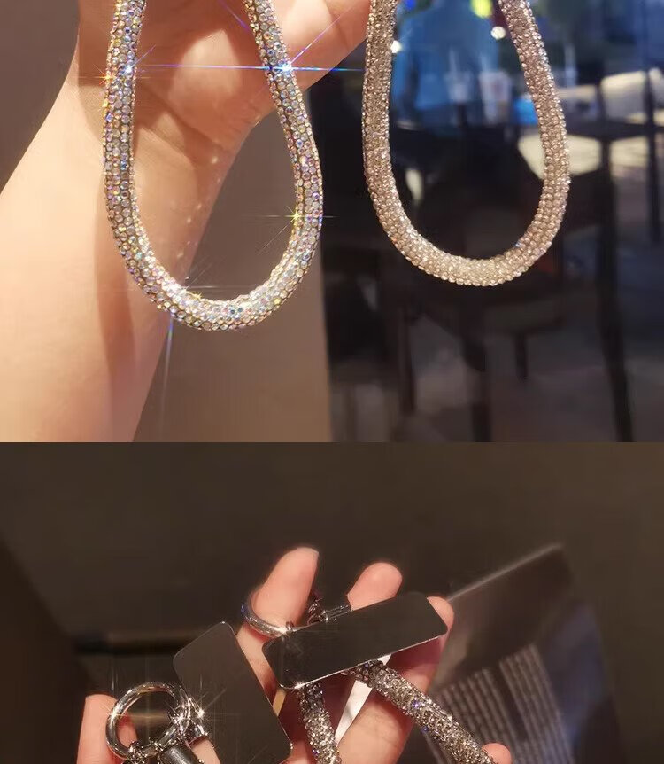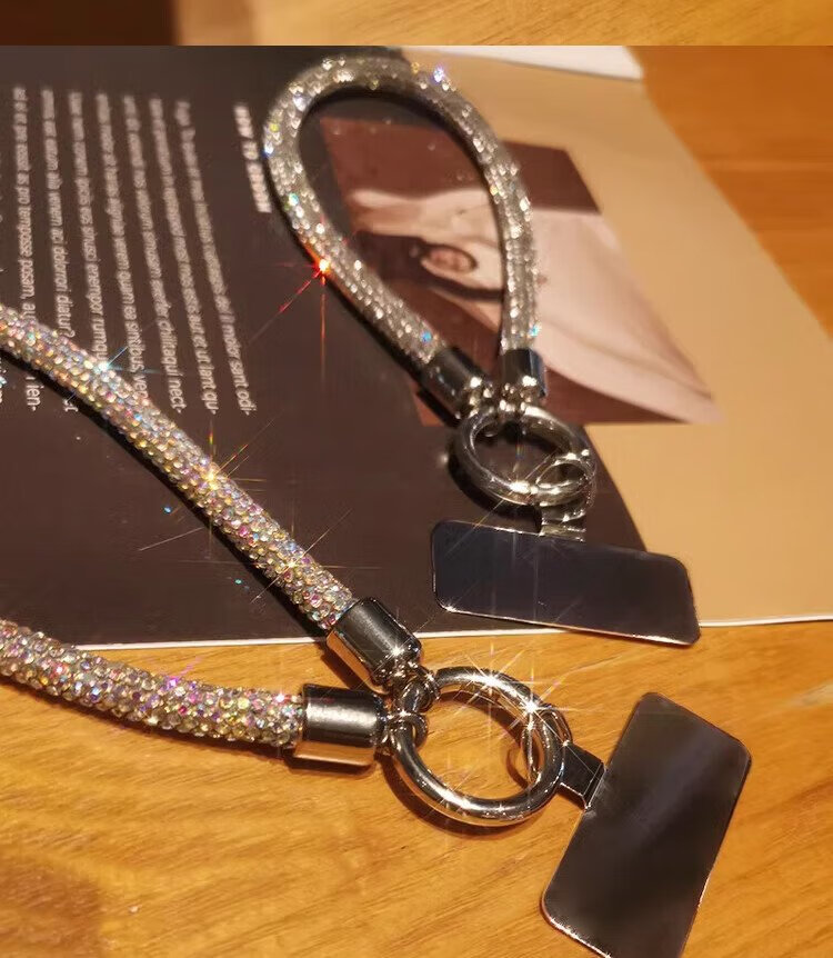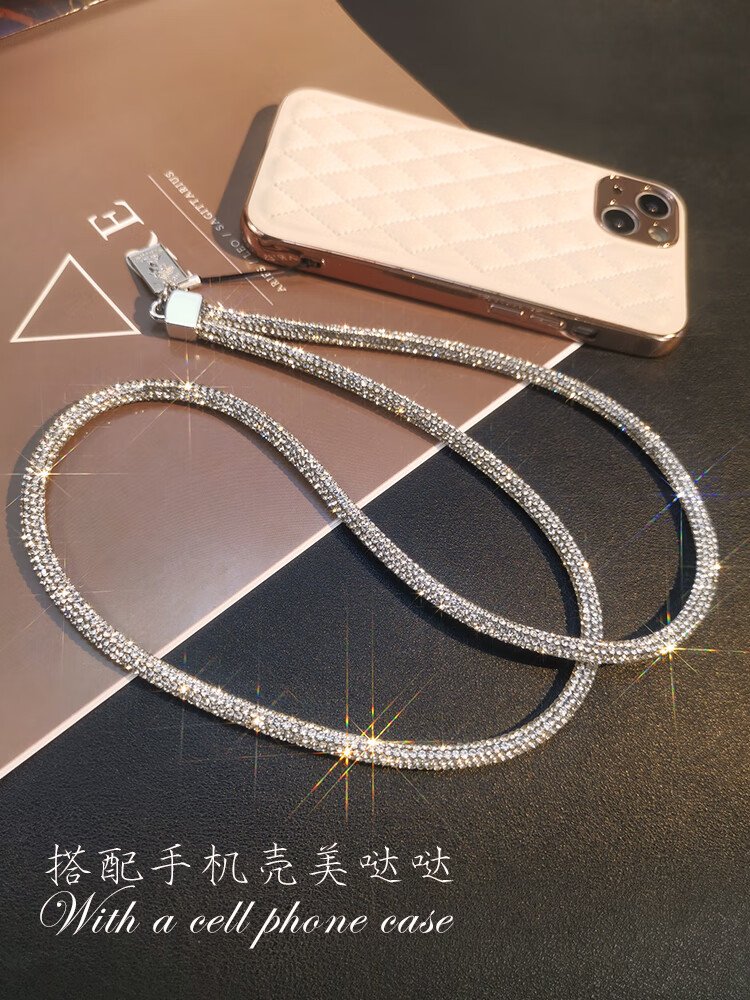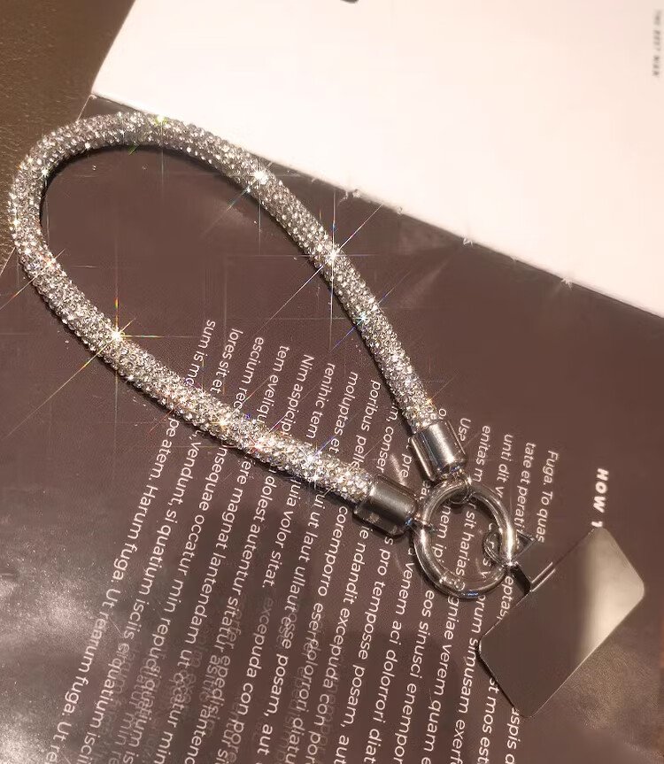 Dipur luxury diamond mobile phone chain high-end mobile phone lanyard wrist anti-lost rope high-end stainless steel clip patch women's silver diamond chain