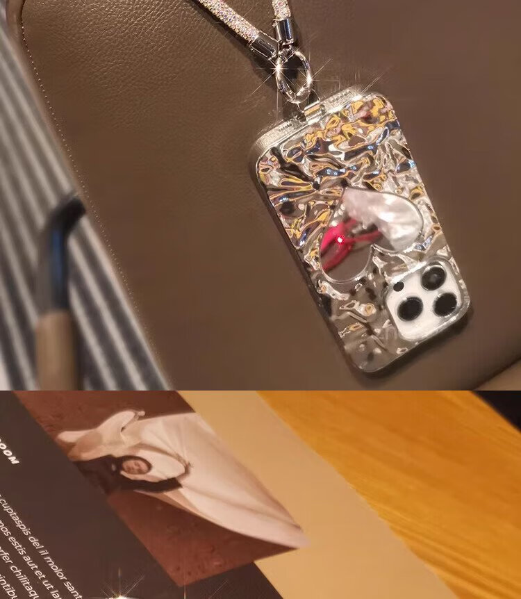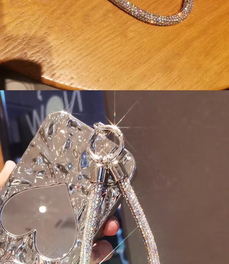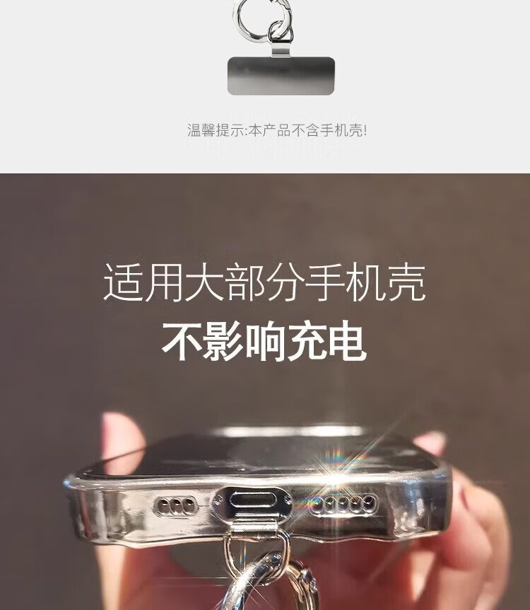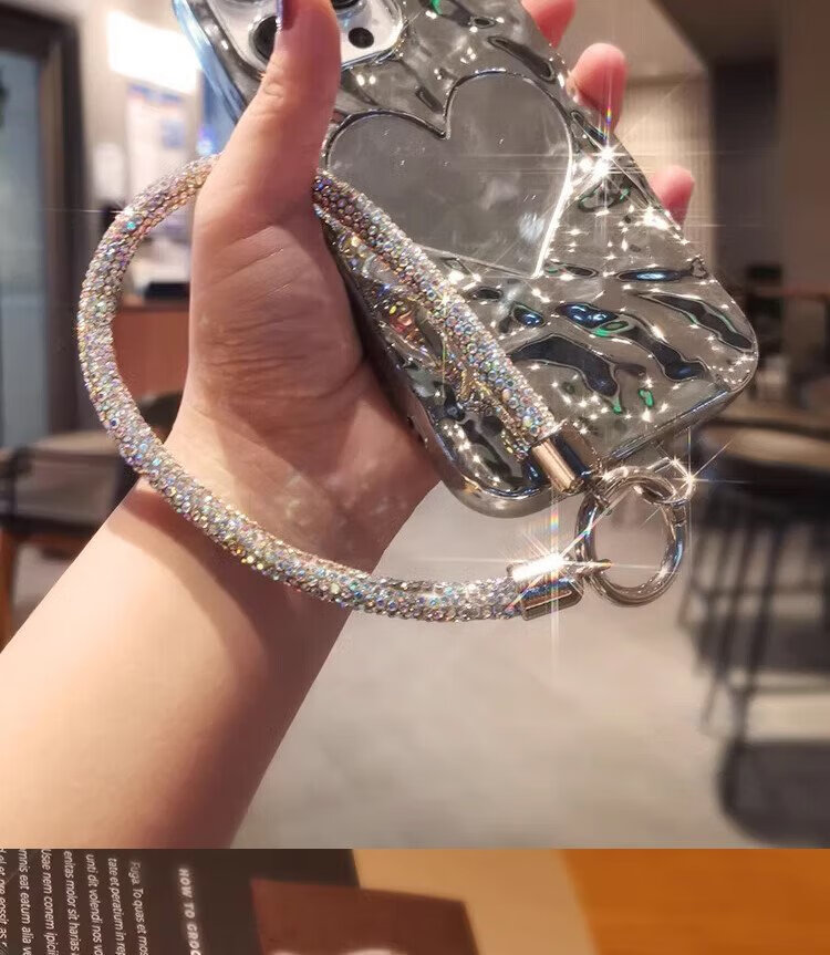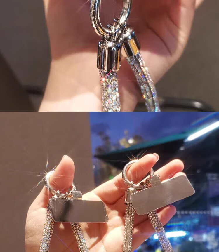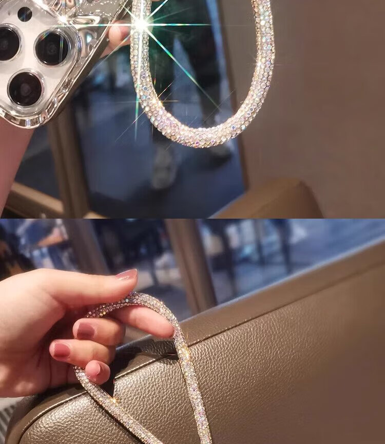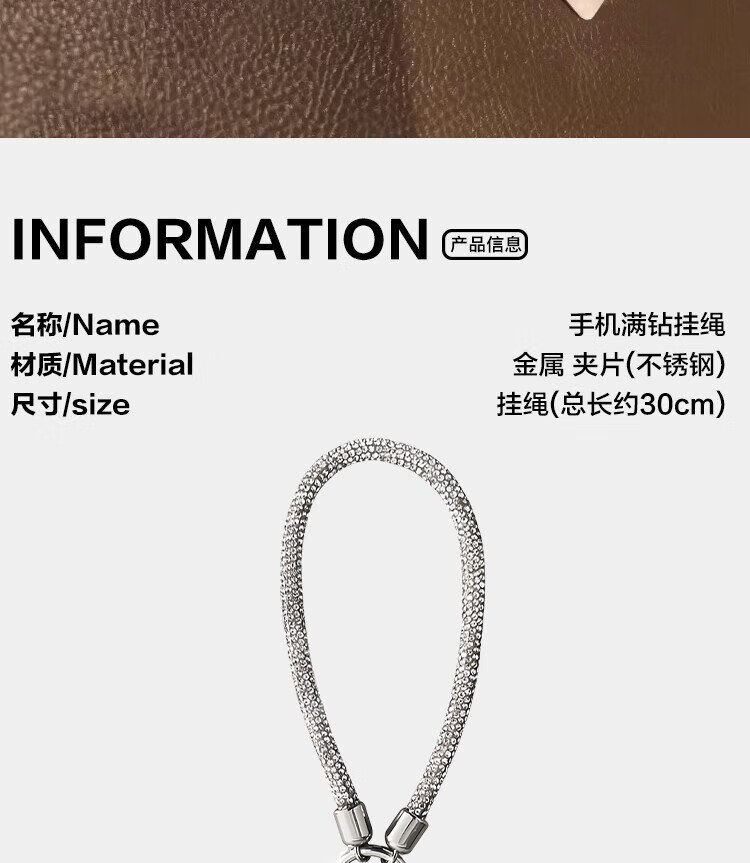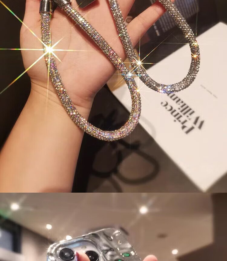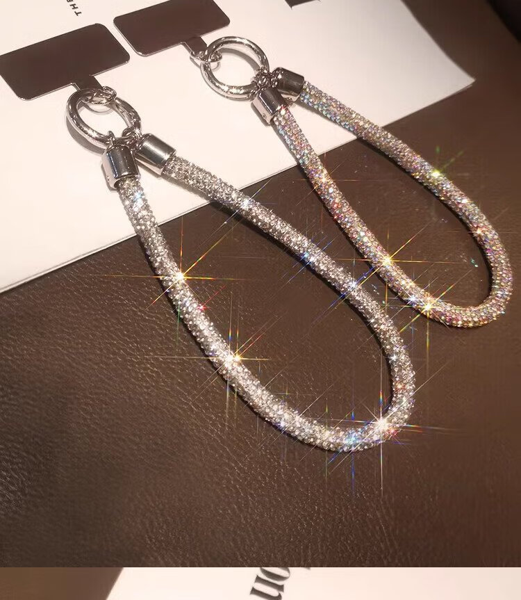 Dipur luxury diamond mobile phone chain high-end mobile phone lanyard wrist anti-lost rope high-end stainless steel clip patch women's silver diamond chain
