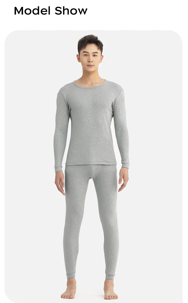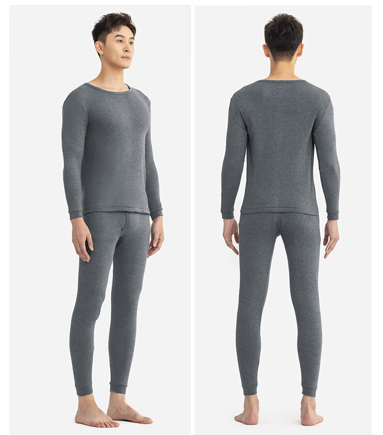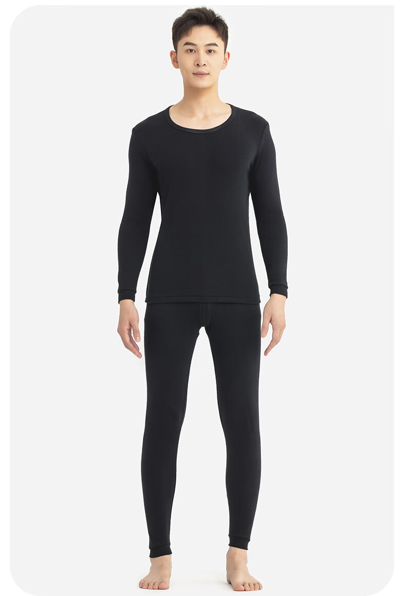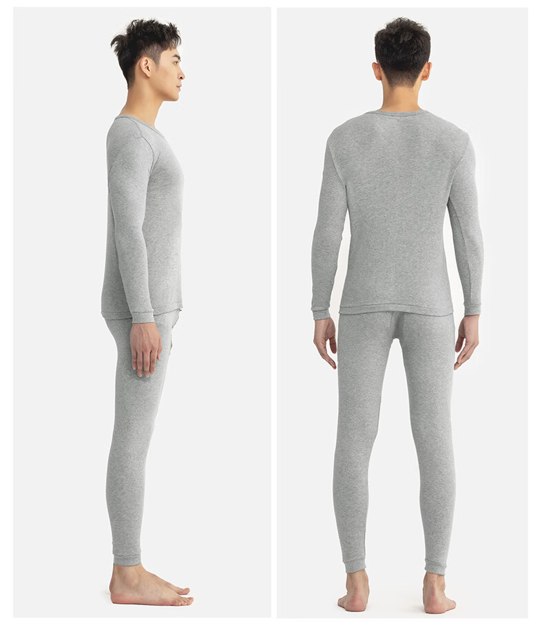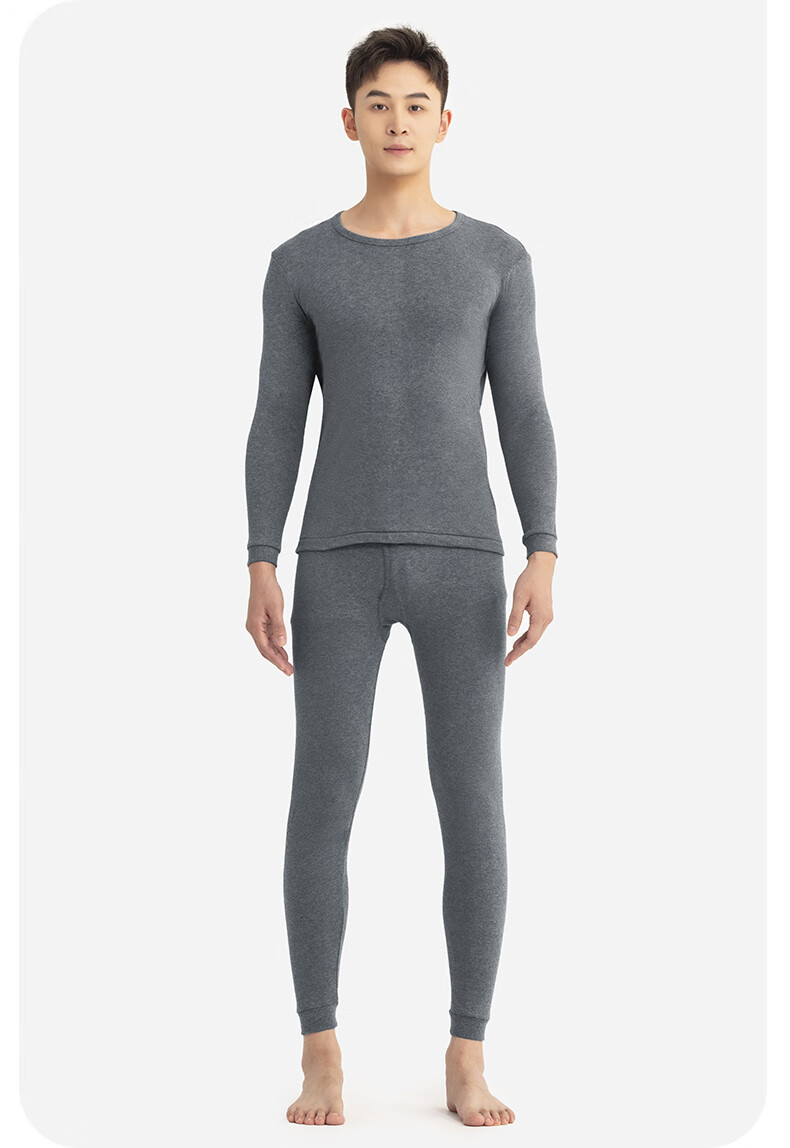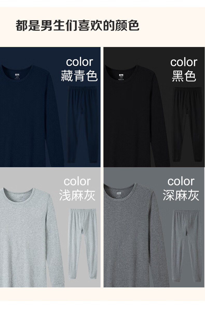 宜而爽【100%全棉】男士秋衣秋裤套装纯棉保暖内衣青少年圆领棉毛衫裤