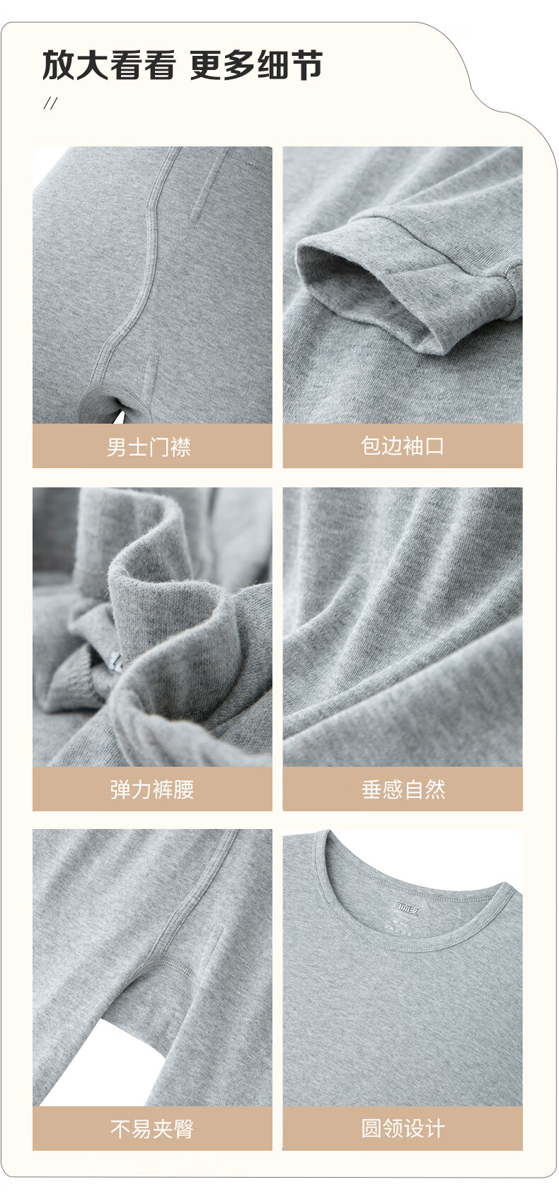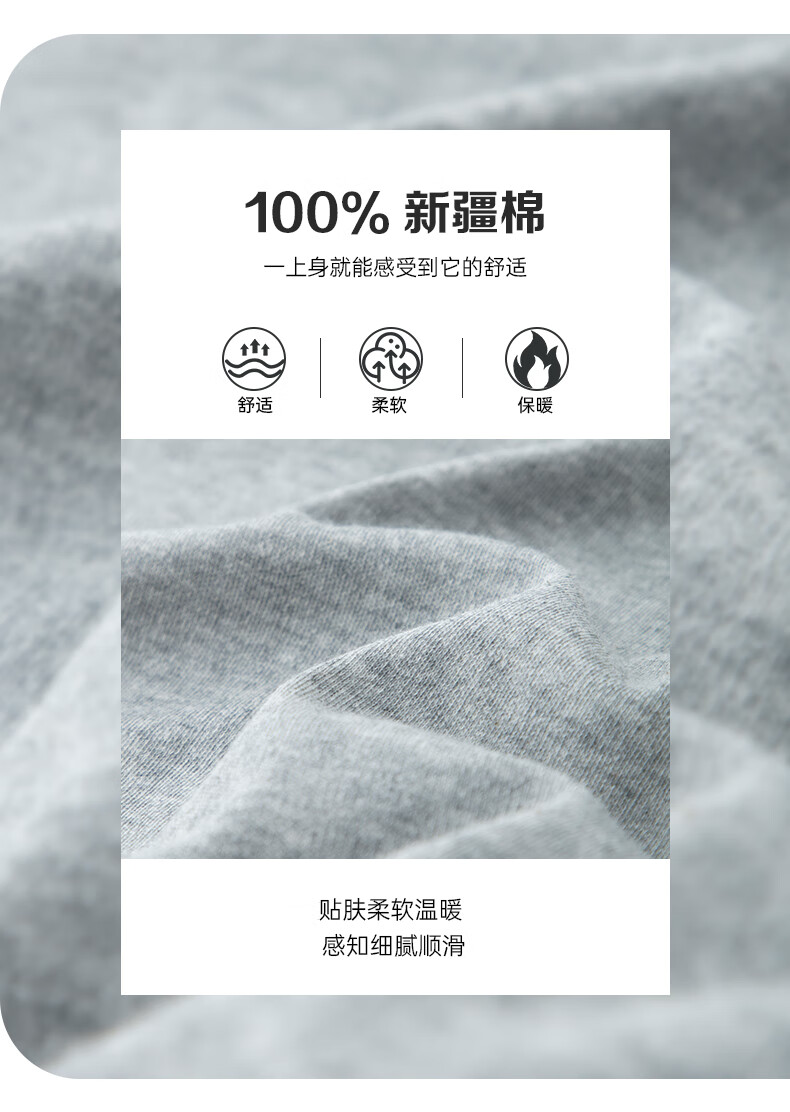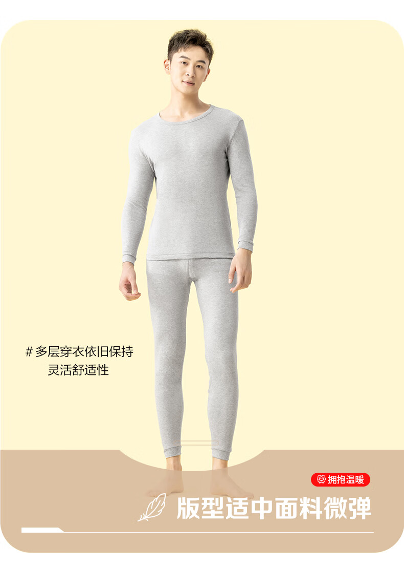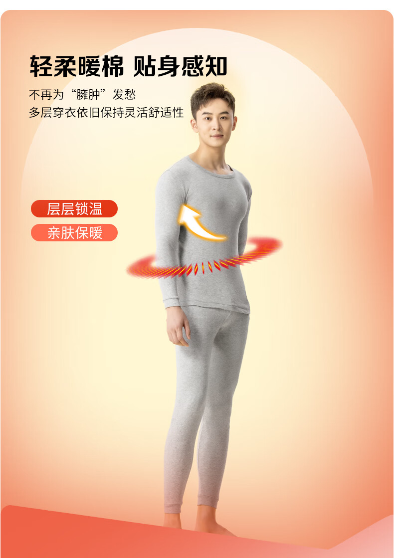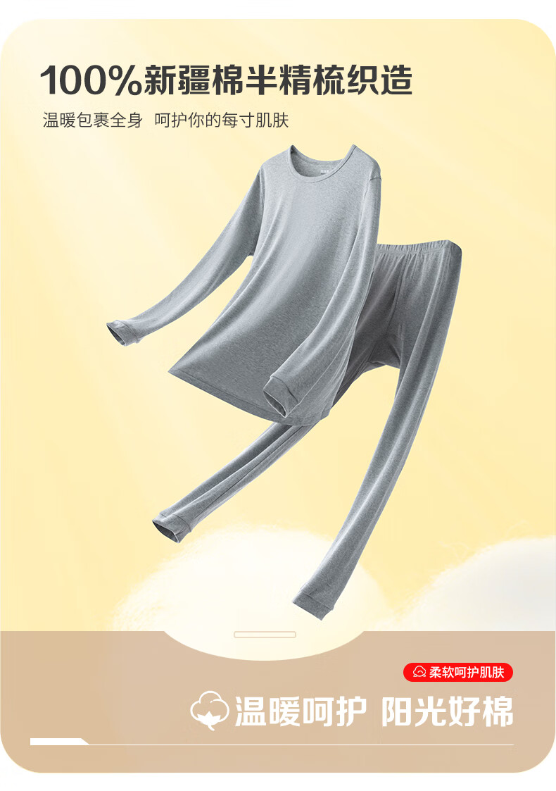 宜而爽【100%全棉】男士秋衣秋裤套装纯棉保暖内衣青少年圆领棉毛衫裤