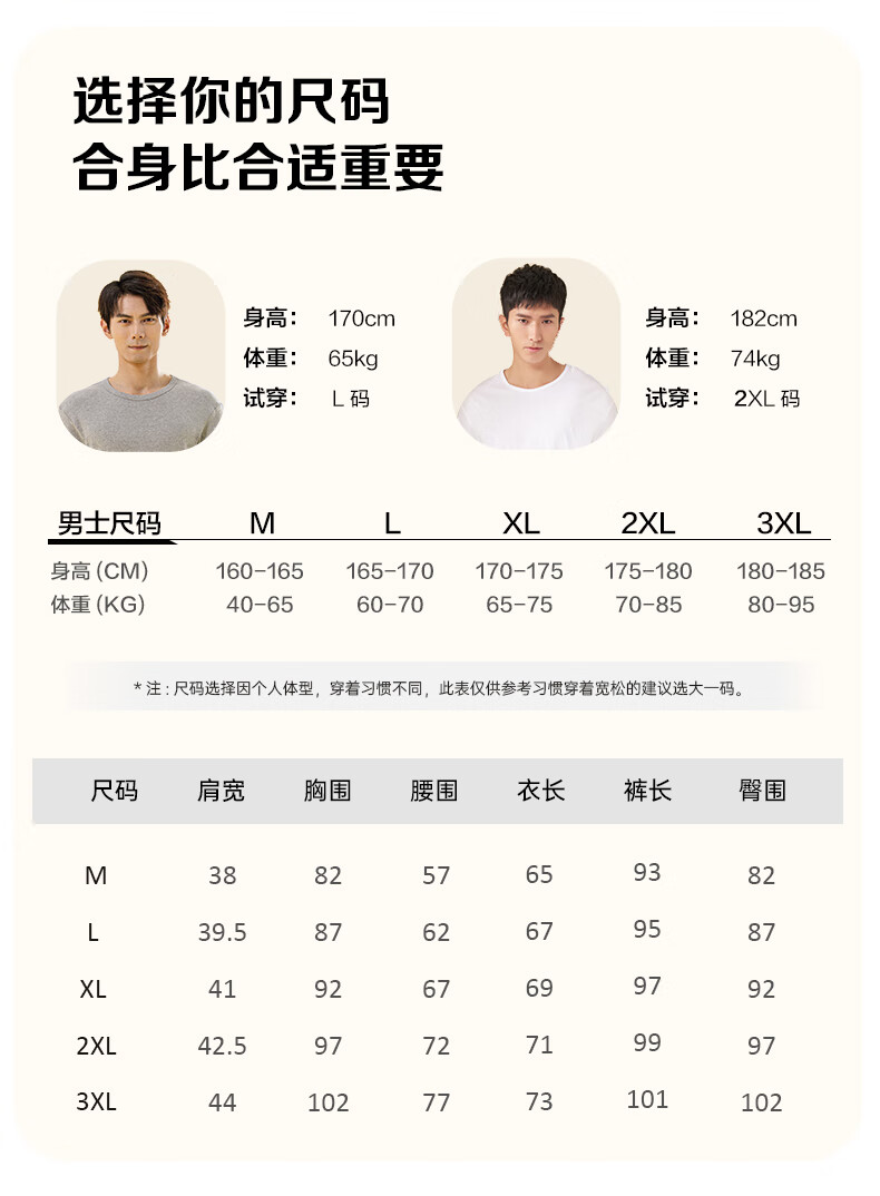China (cm) 160-165/84-86 165-170 / 88-90 167-172 / 92-96 168-173 / 98-102 170-176 / 106-110