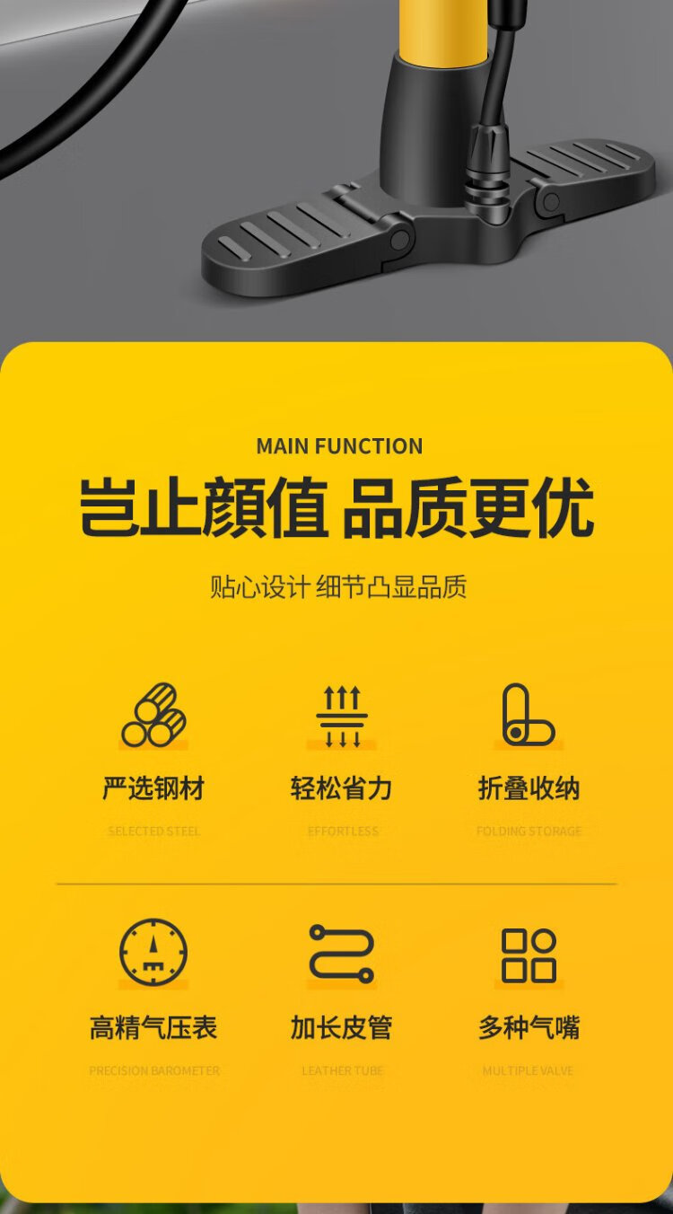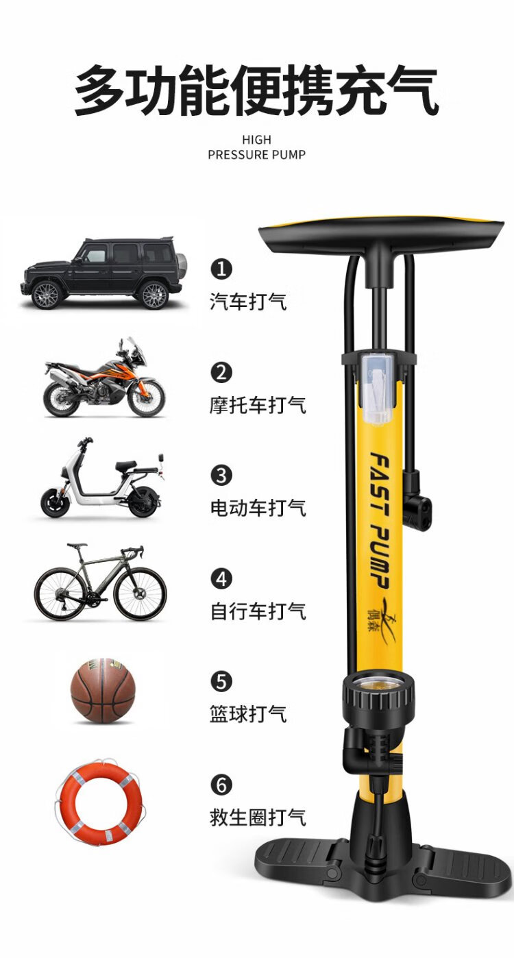 Ousen high-pressure pump mountain road car electric car car motorcycle basketball football US-French mouth universal foot-operated air pump
