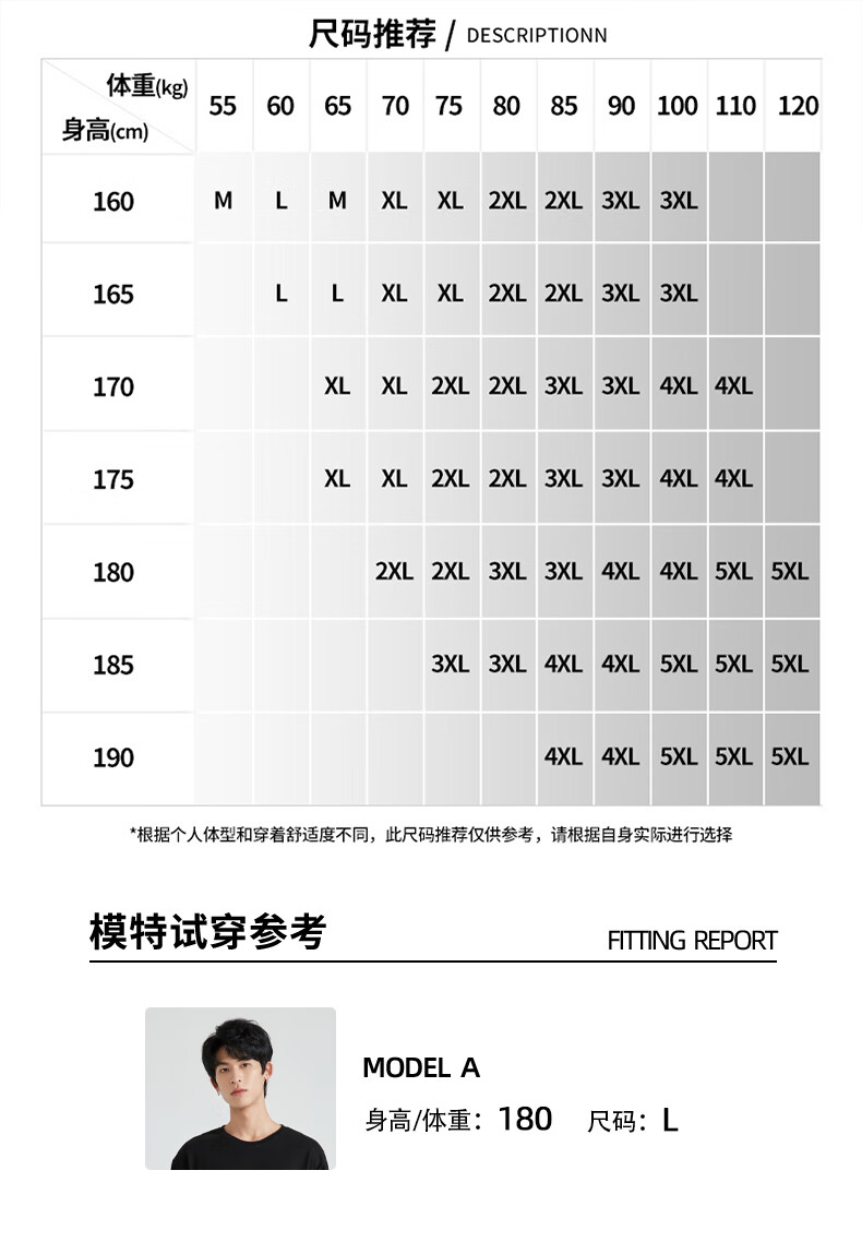 China (cm) 165 / 88-90 170 / 96-98 175 / 108-110 180 / 118-122 185 / 126-130