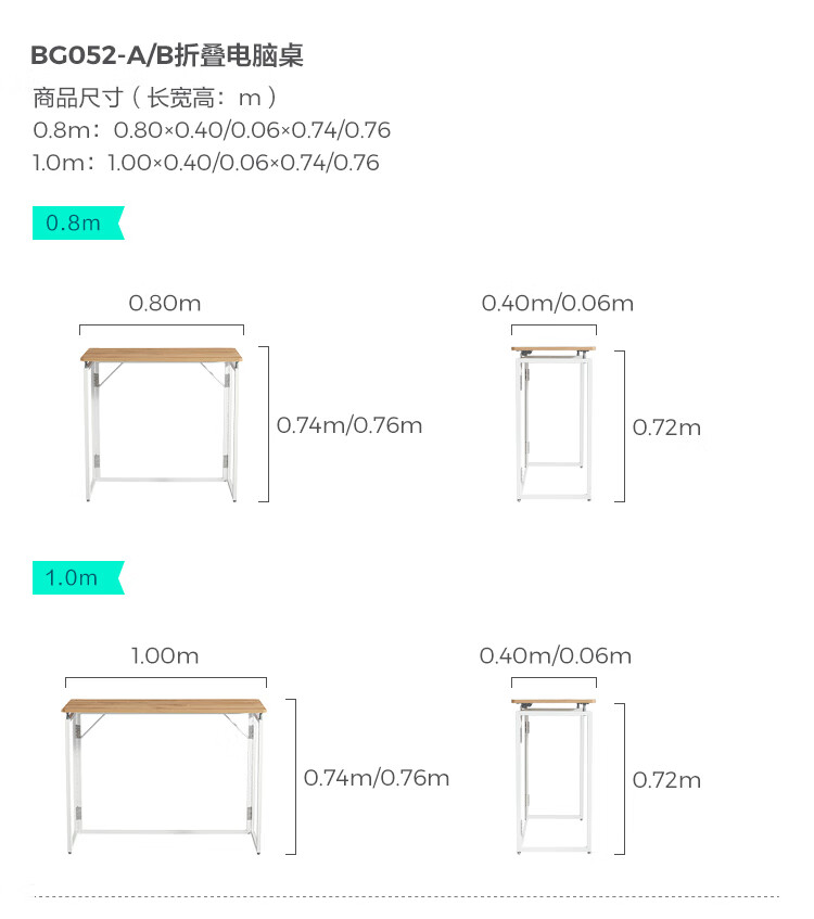 Lin's Home Folding Desk Student Home Computer Desk Writing Desk Bedroom Small Apartment BG052 Log Color 0.8m Desk
