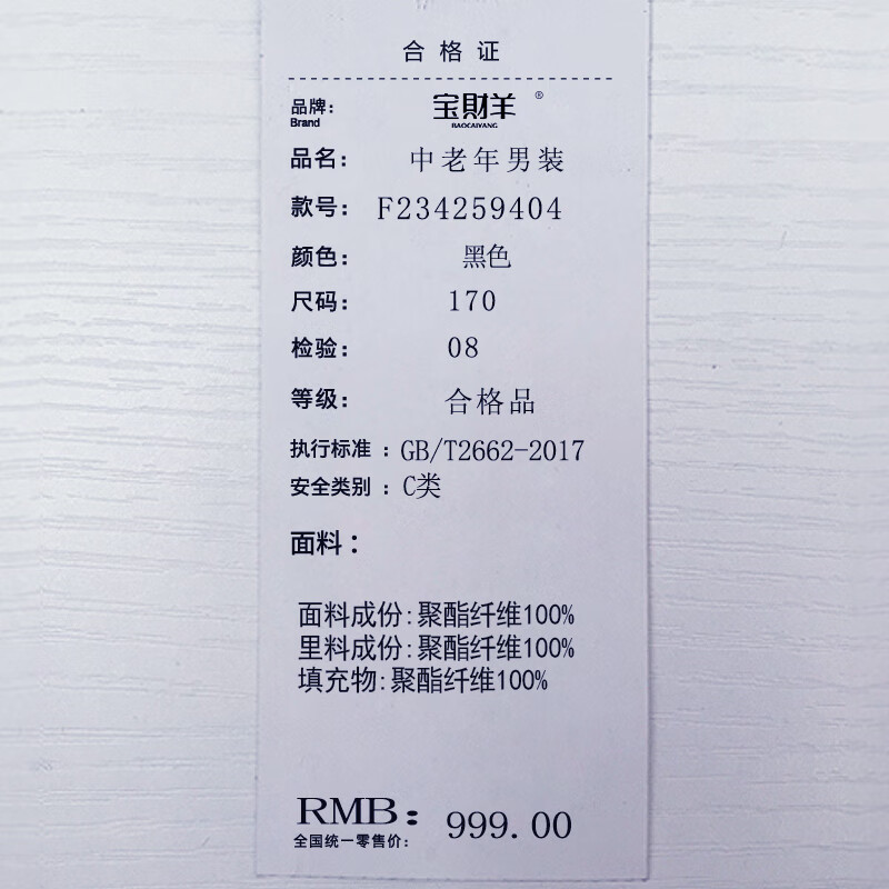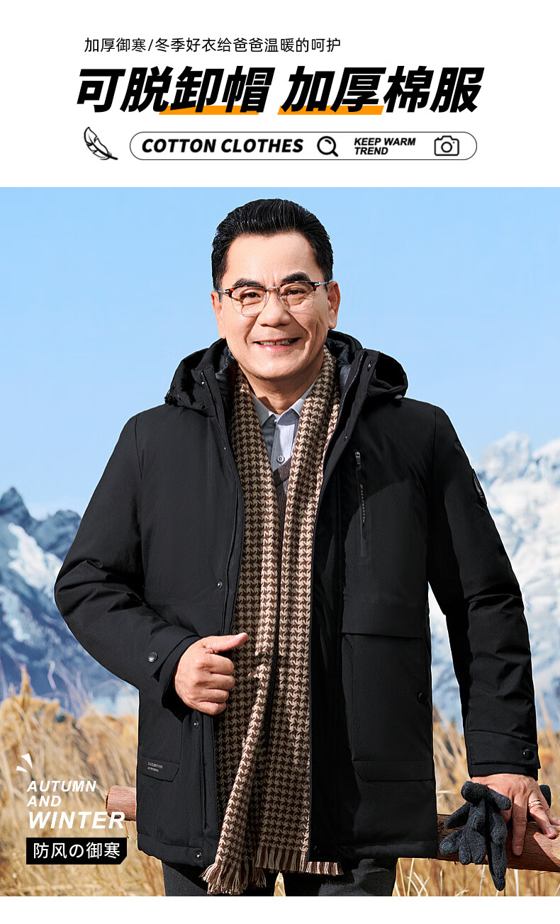 Baocai Sheep Dad Winter Cotton Jacket Men's Winter Thickened Warm Cotton Jacket One-Wear Three-Wear Cotton Jacket Middle-aged and Elderly Men's Jacket