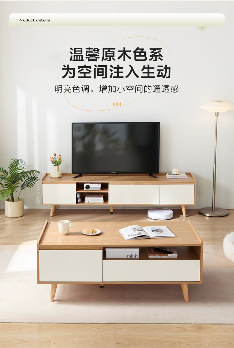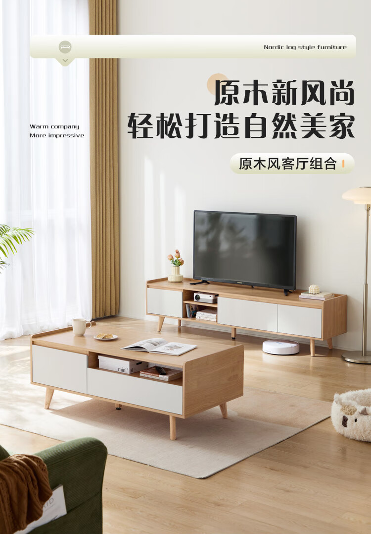 Lin's Home Furnishing Log Style TV Cabinet Coffee Table Living Room Home AC1M Log Color + White AC1L Coffee Table