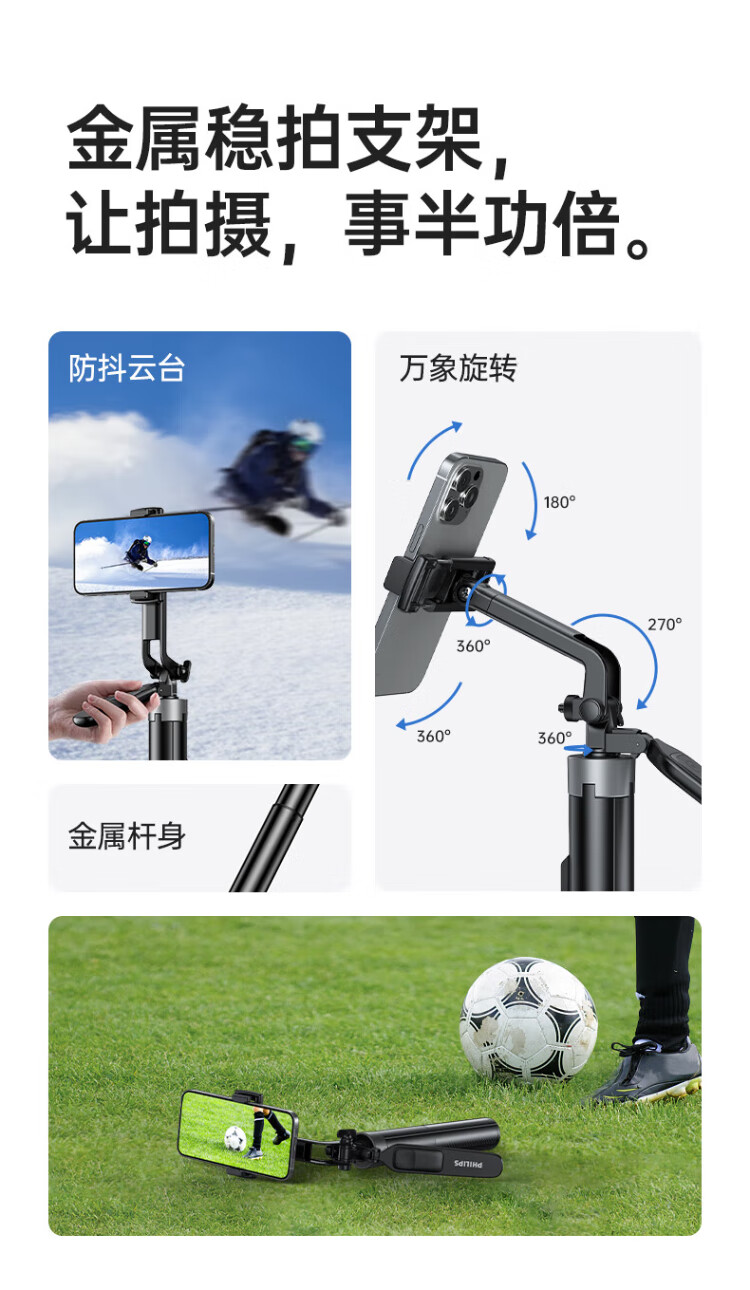 Philips Bluetooth selfie stick live broadcast mobile phone holder floor tripod handheld gimbal stabilizer portable 360-degree rotation photo shooting special DLK5311B/93