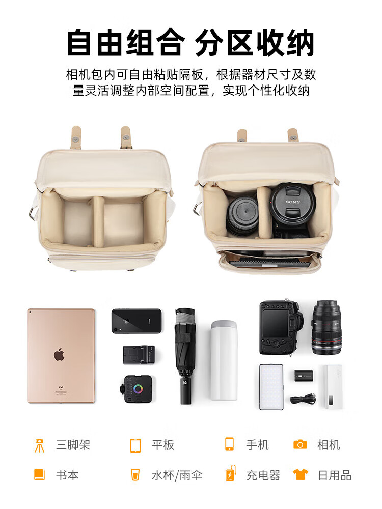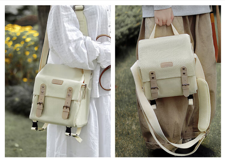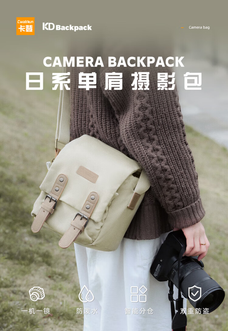 CWATCUN日系复古单肩相机包单摄影摄像男女适用于富士佳能尼康索尼一机两镜背包