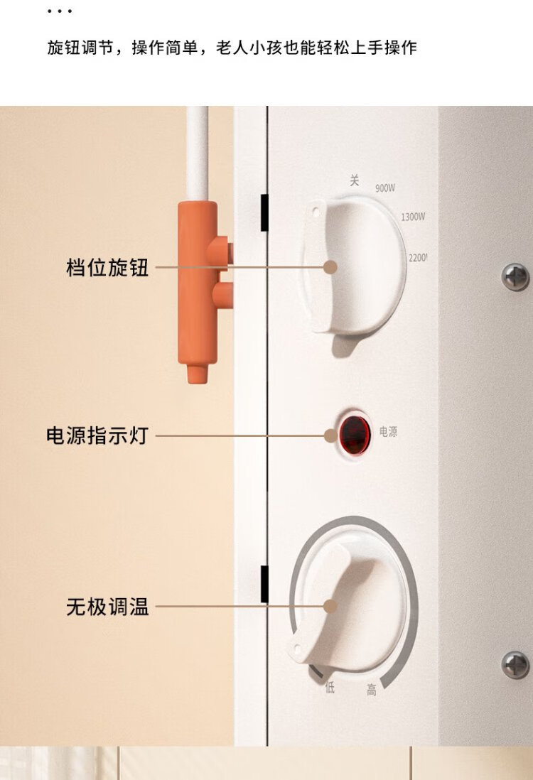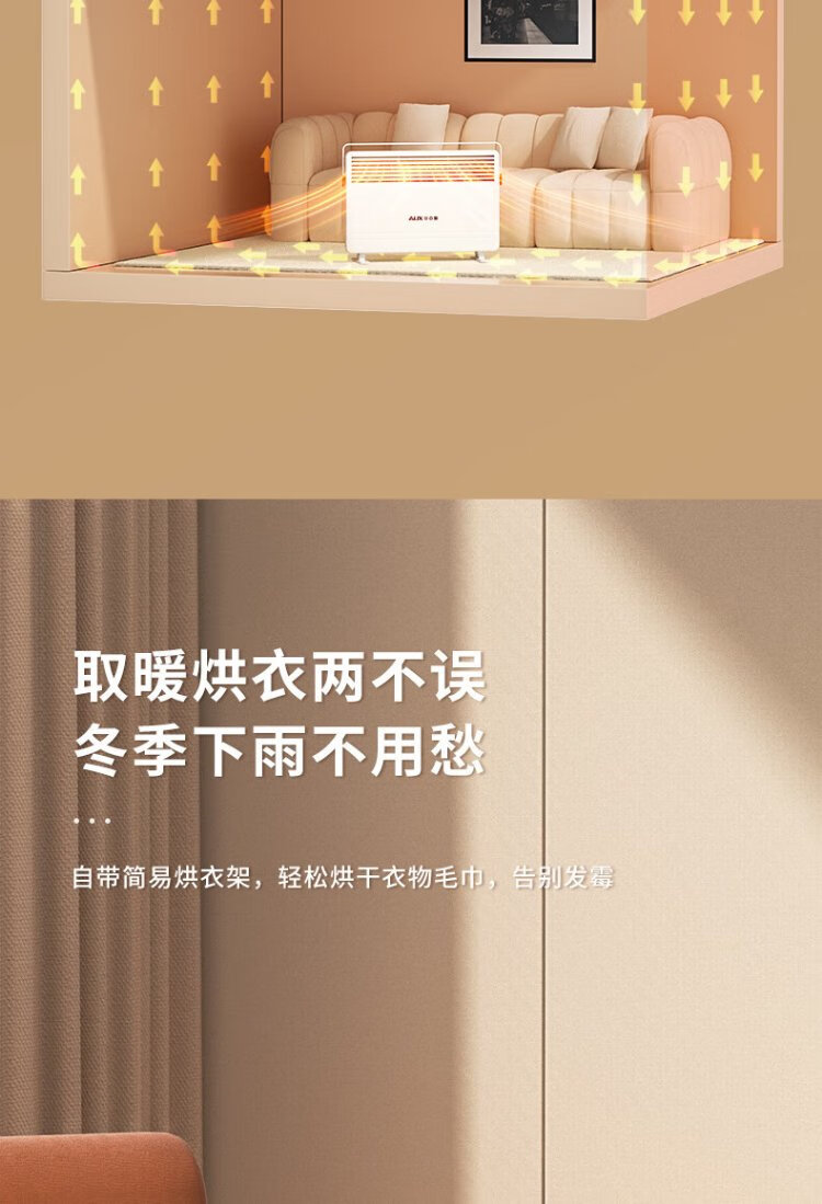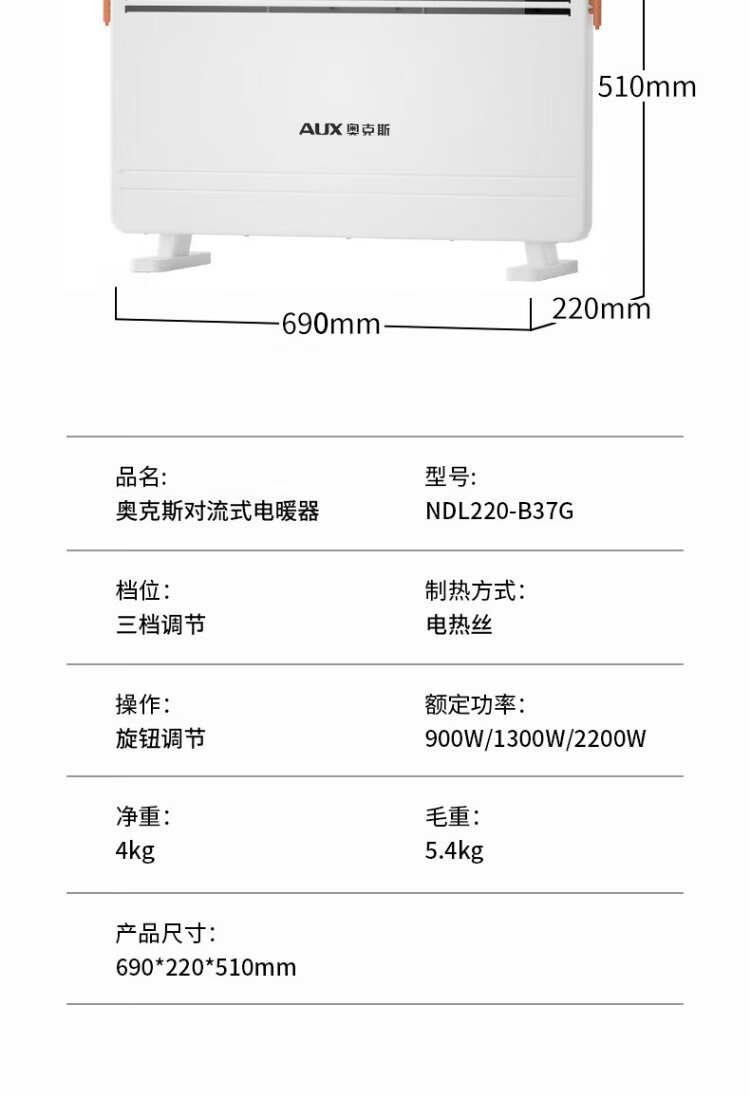 AUX heater household European fast heating stove electric heater heating electric heater warm air electric heater convection oven IPX4 waterproof NDL220-B37G Xiaomi White