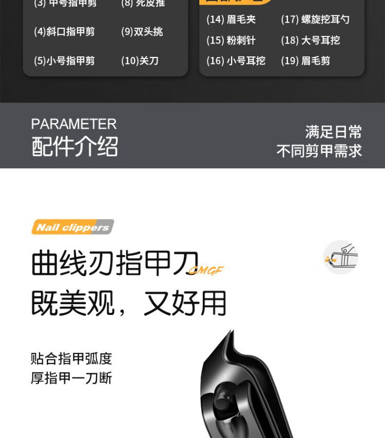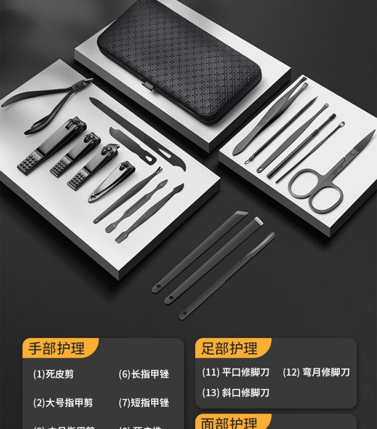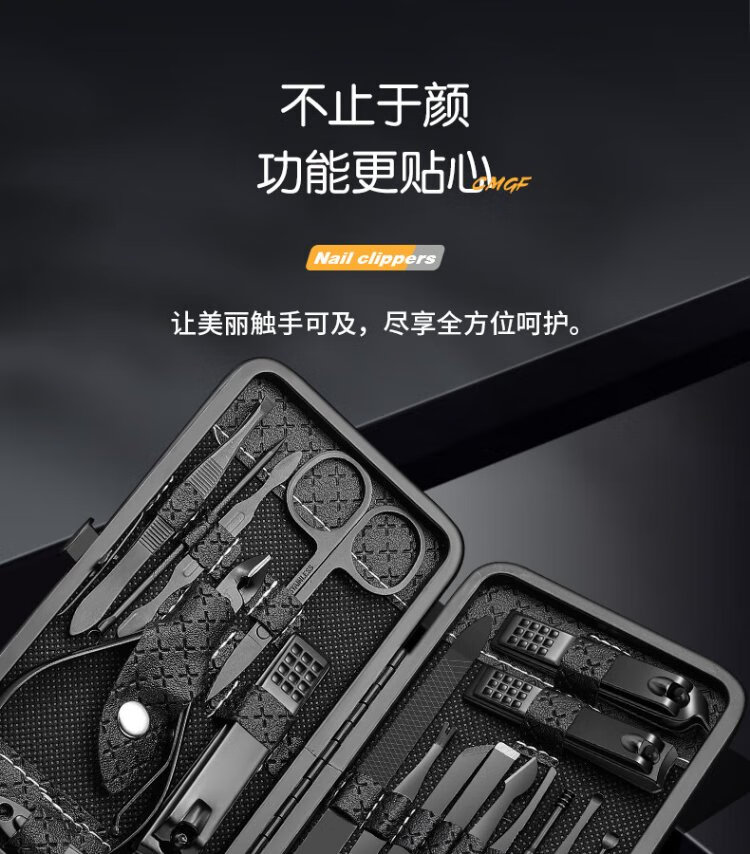 XIAO TIAN LAI nail clipper set, complete set of nail scissors, dead skin scissors, ear scoop, acne needle, nail clippers and pedicure knife, 19-piece set