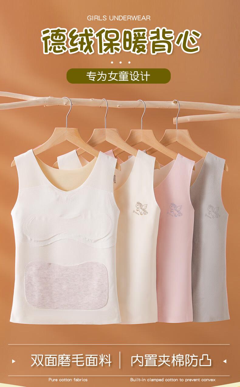 Yu Zhaolin 2-pack girls' German velvet thermal vest development period for older children, junior high school and primary school students girls' underwear autumn and winter