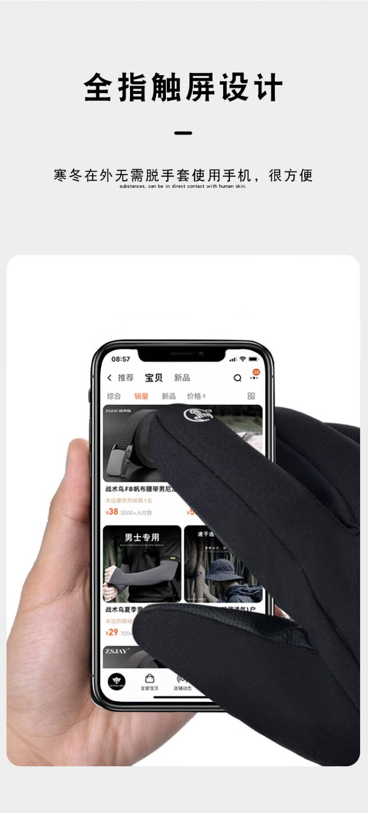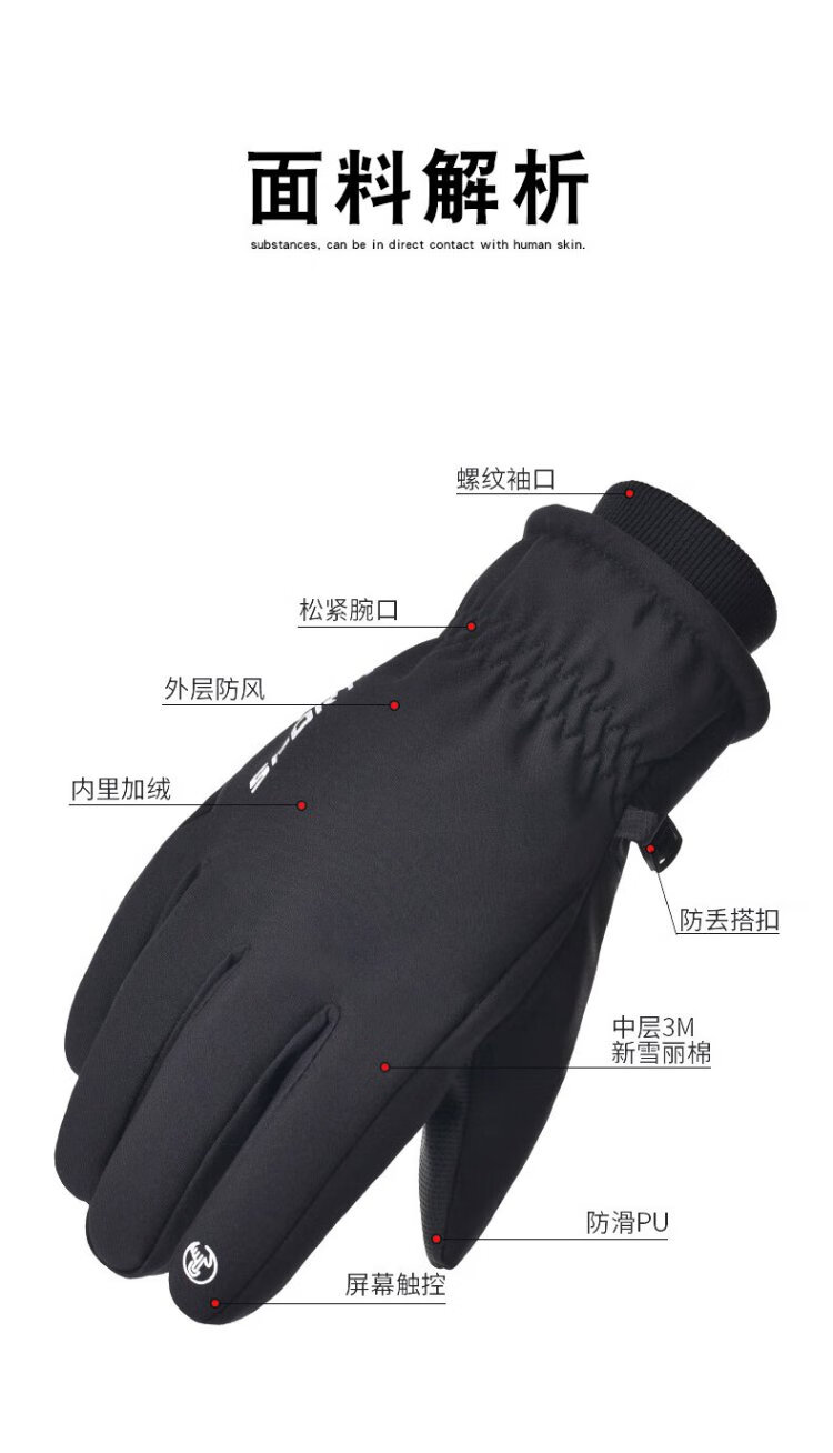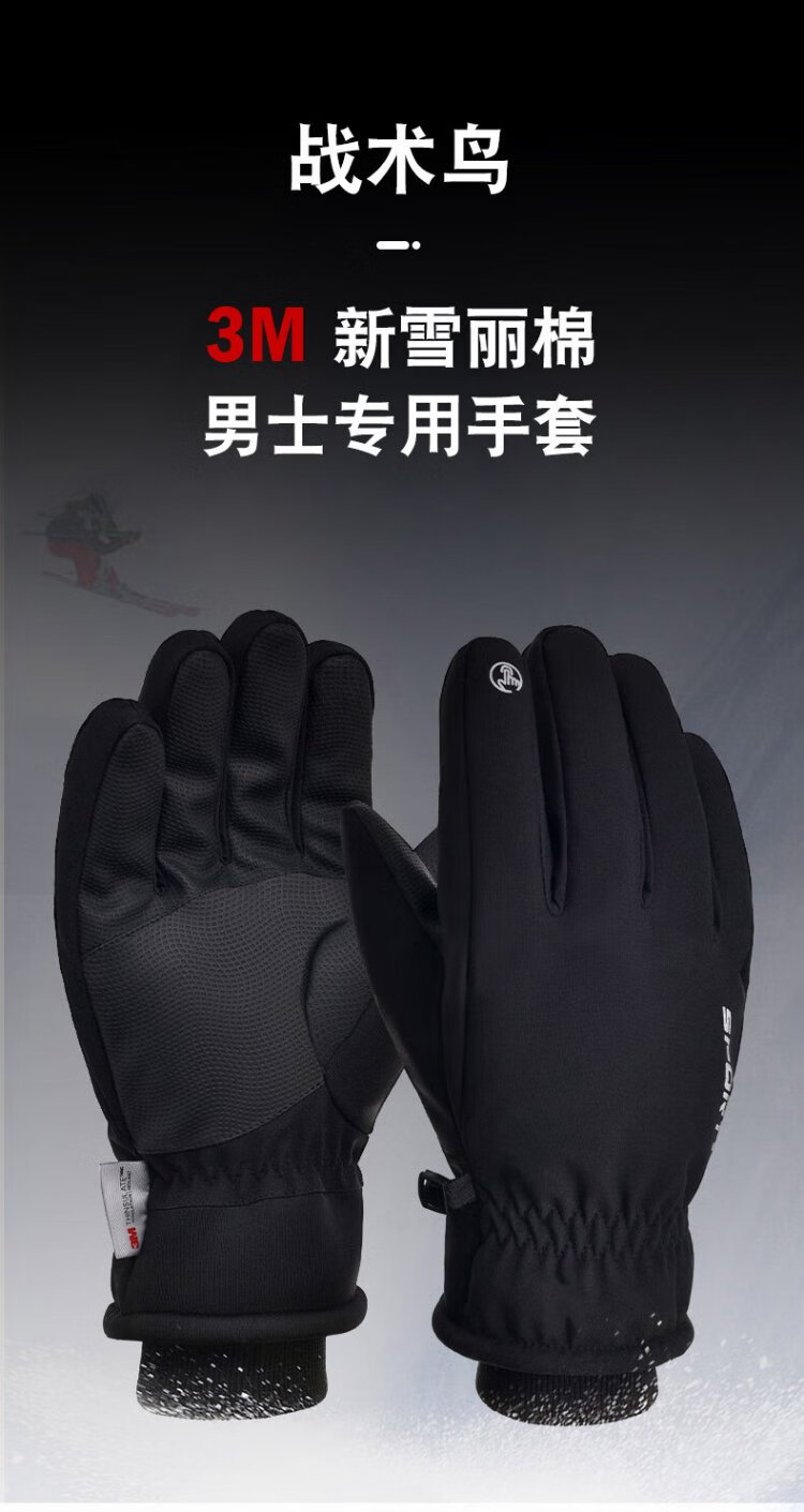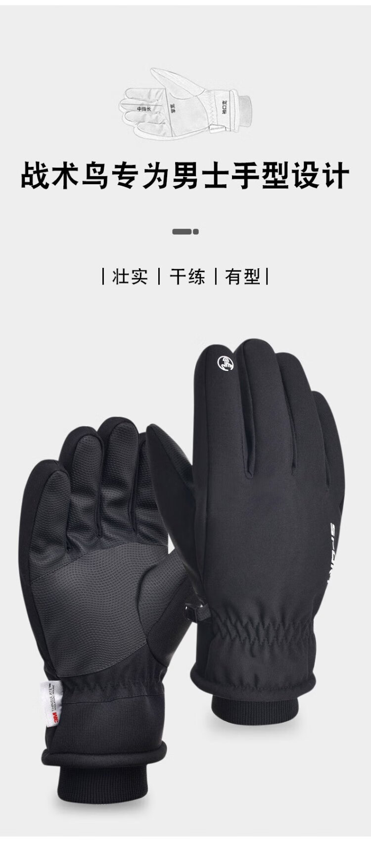 Tactical Bird (3M) Thinsulate Cotton Men's Winter Warm Gloves Cycling Coldproof Waterproof Large Size Touch Screen Black