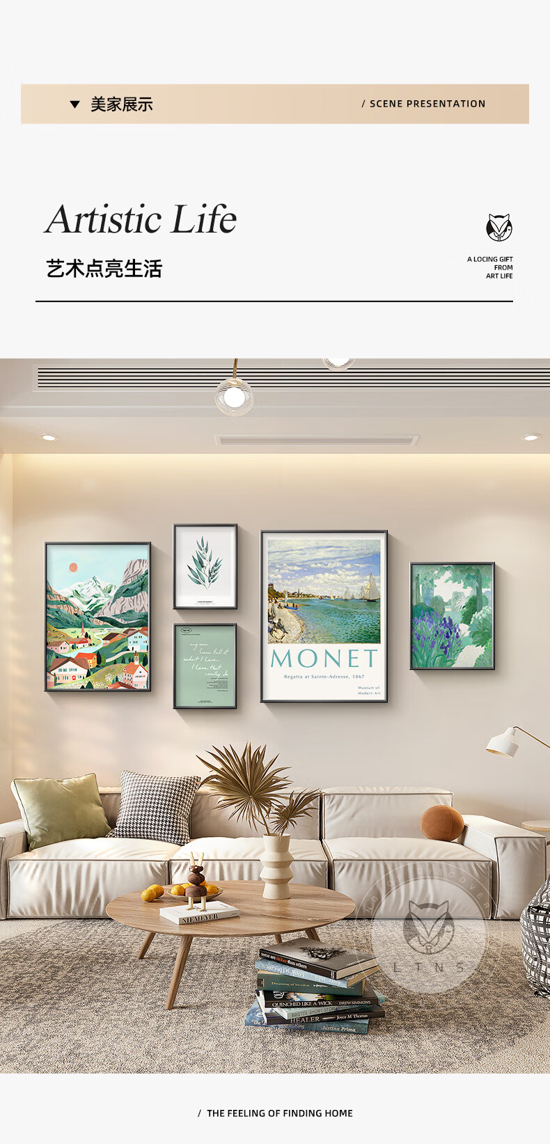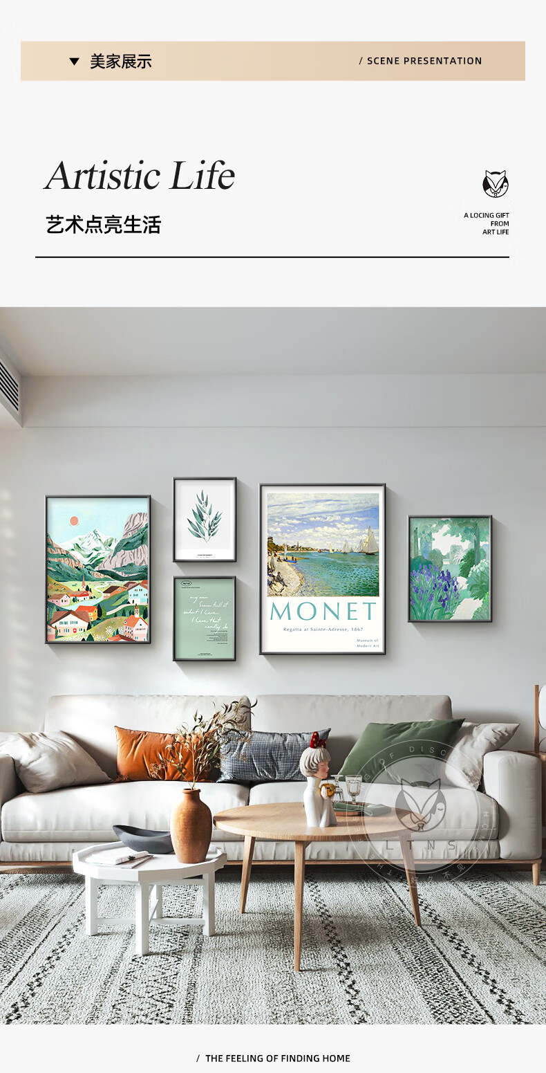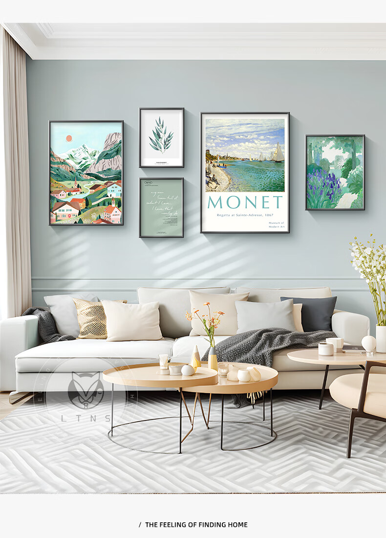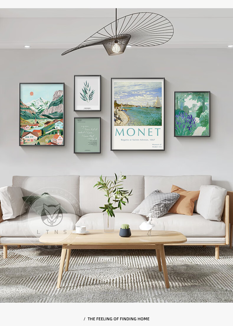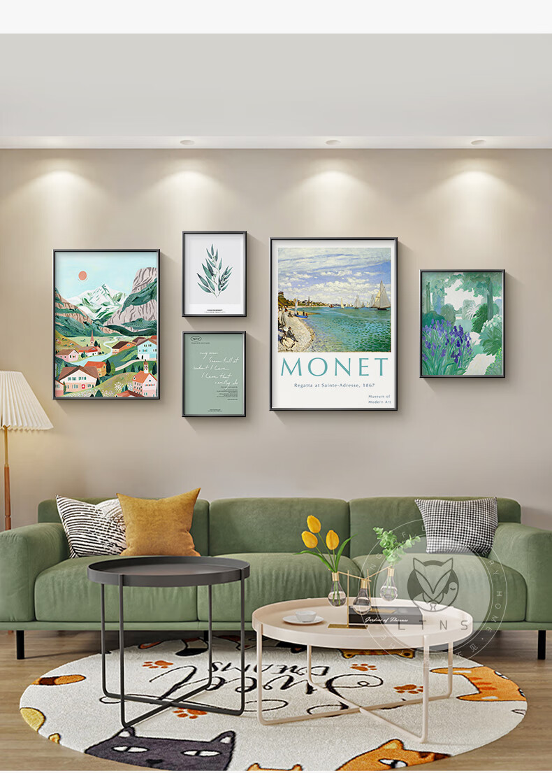 Long time no see Nordic style living room decoration painting niche art hanging painting green retro sofa background wall mural