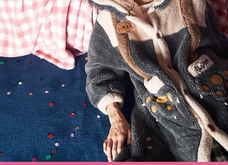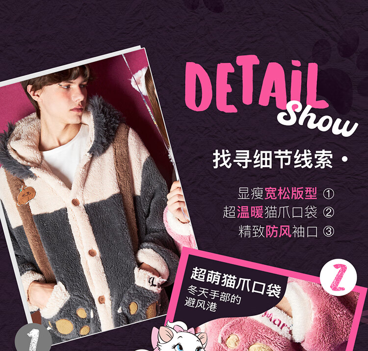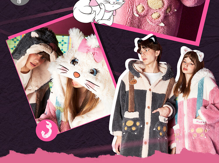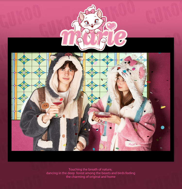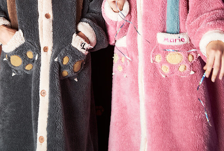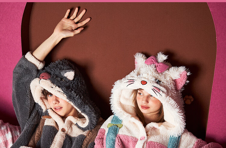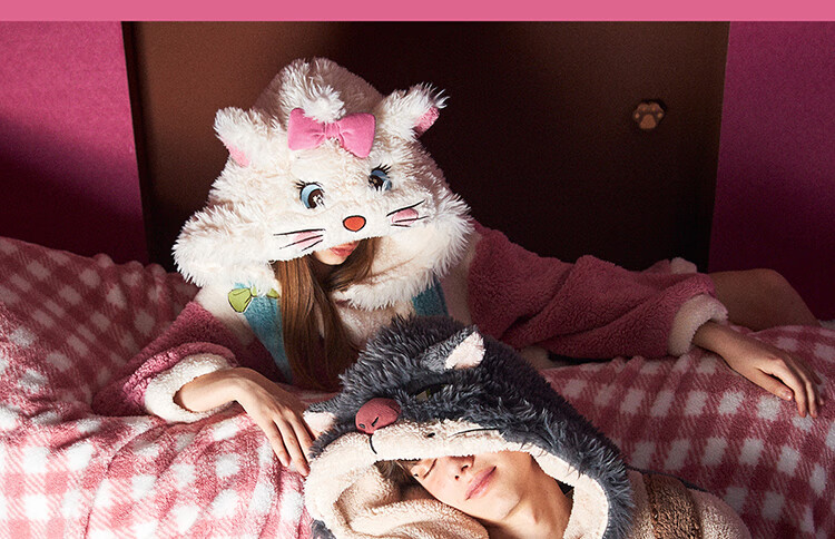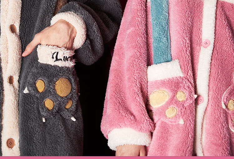 Gukoo Nightgown Couple Pajamas Women Autumn and Winter Mary Cat Coral Velvet Bathrobe Men's Home Clothing Mary Cat Women's Nightgown L