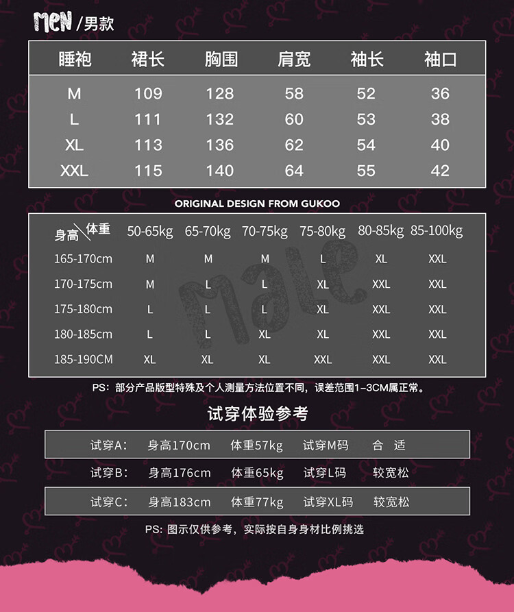 China (cm) 160-165/84-86 165-170 / 88-90 167-172 / 92-96 168-173 / 98-102 170-176 / 106-110