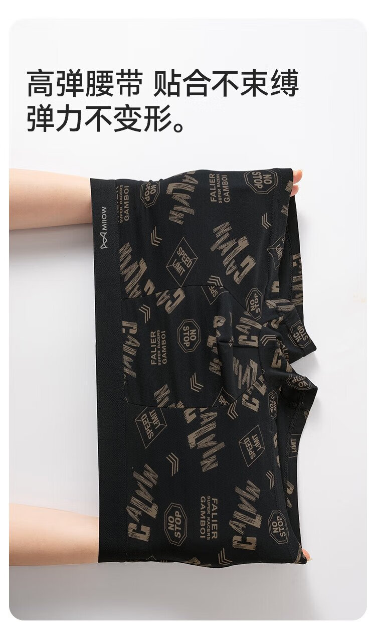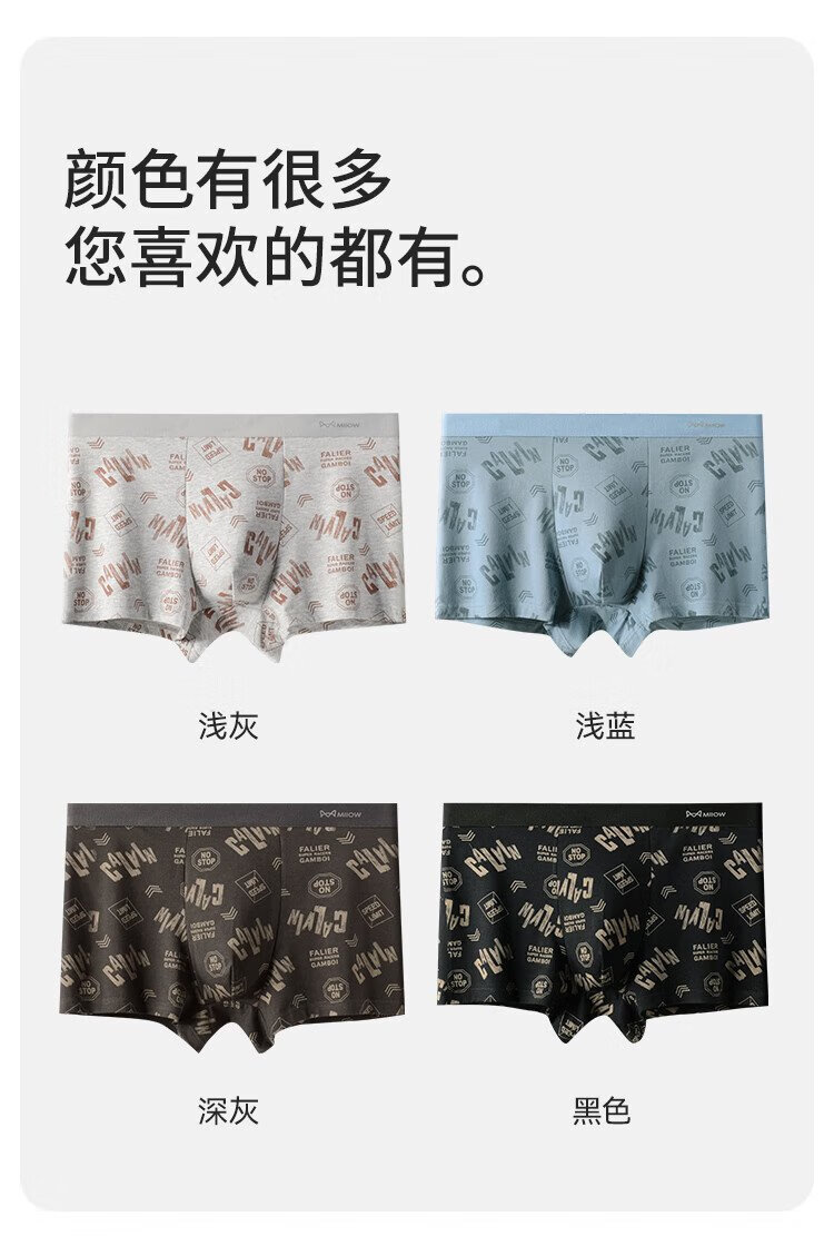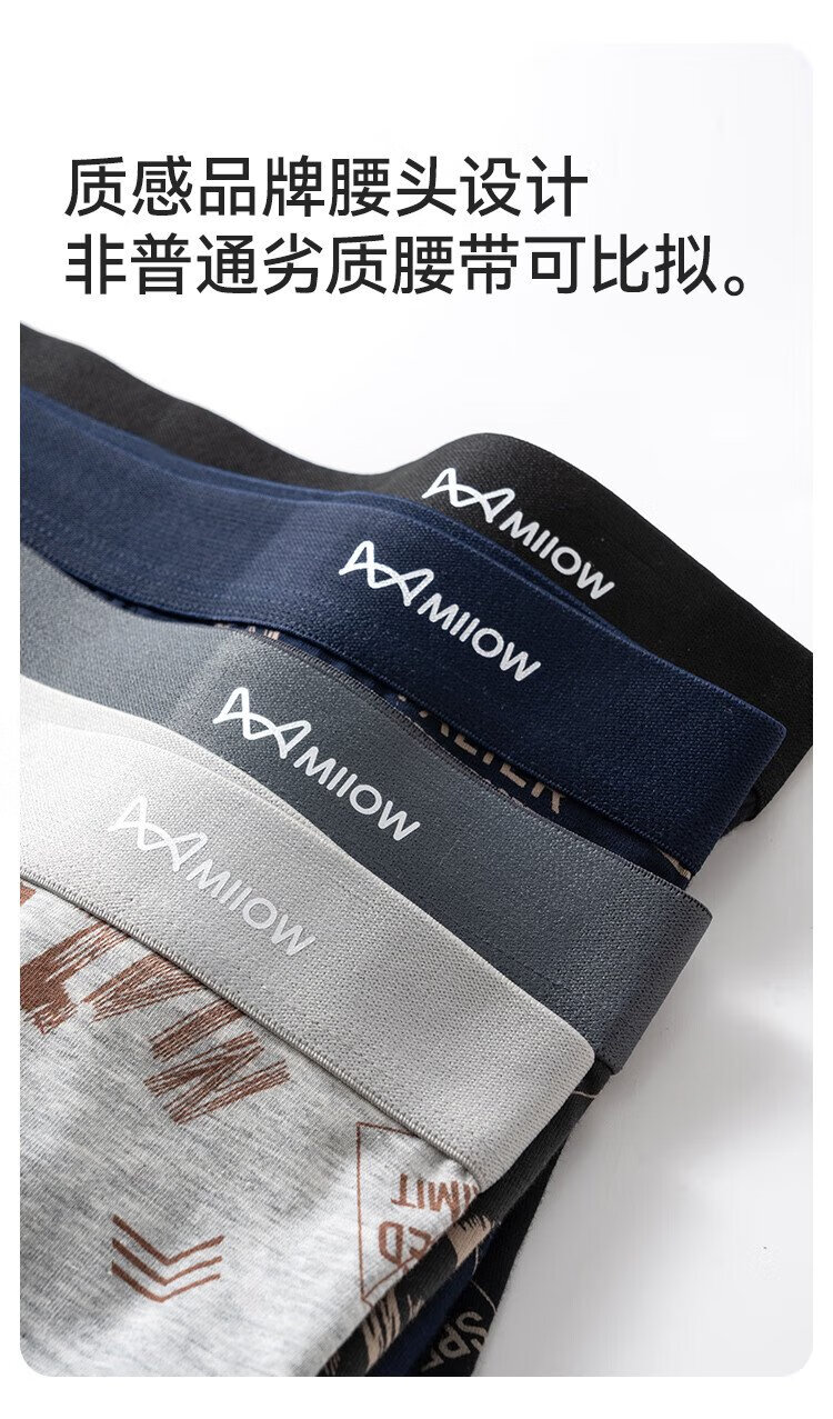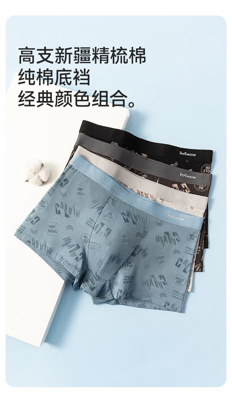 MiiOW Men's Underwear Men's Fashion Printed Underwear 60S Xinjiang Combed Cotton 100% Cotton Antibacterial Bottoms 4 Pack