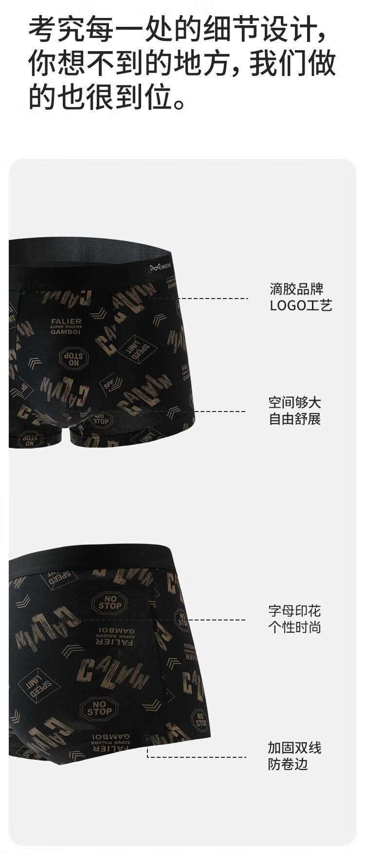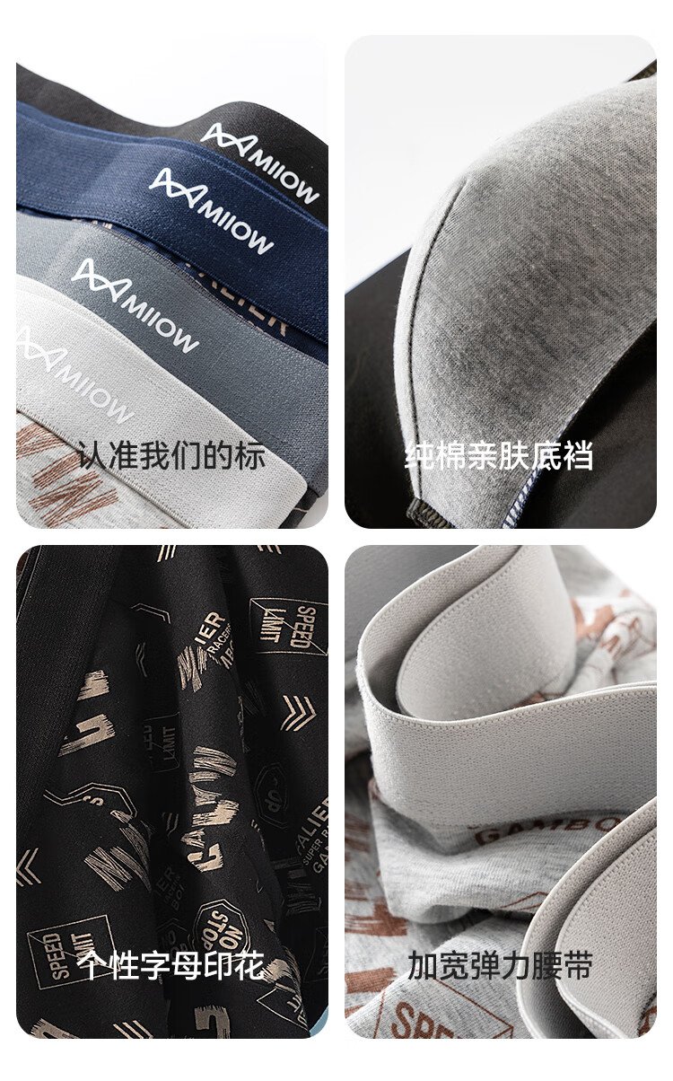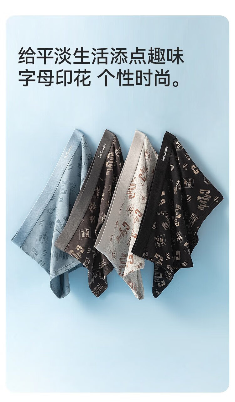 MiiOW Men's Underwear Men's Fashion Printed Underwear 60S Xinjiang Combed Cotton 100% Cotton Antibacterial Bottoms 4 Pack
