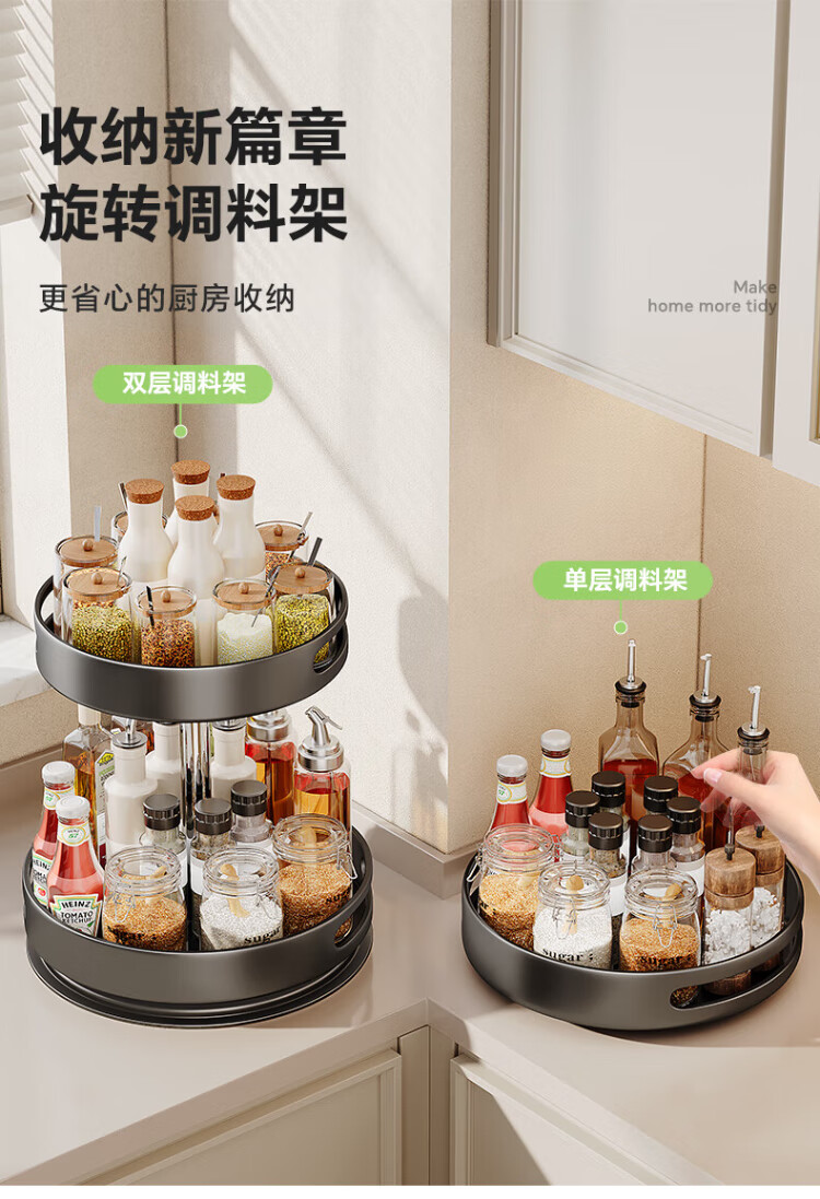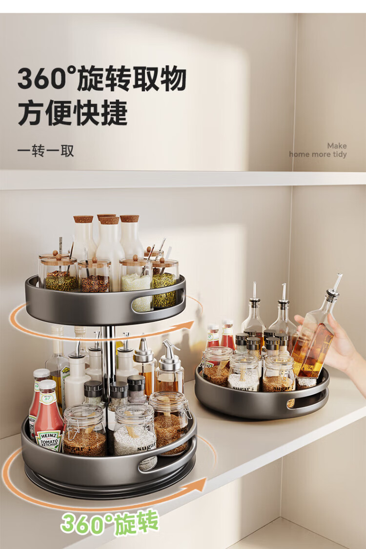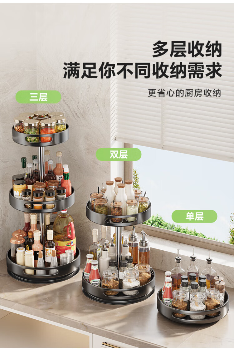 Shuaishi kitchen utensil storage rack rotating spice rack multi-layer spice tray multi-functional storage rack