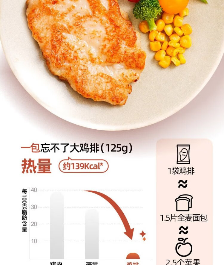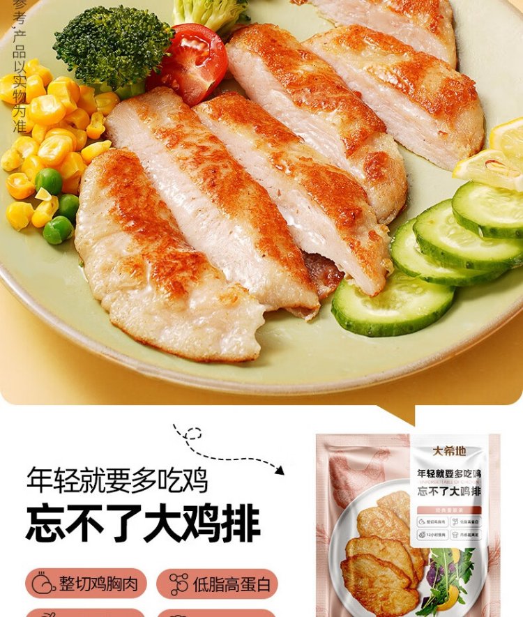 Dahidi Original Chicken Chops Chicken Breast Light Chicken Non-fried Fitness Meal Replacement Volume Sold Pack Net Weight 125g*10 Pieces Breakfast