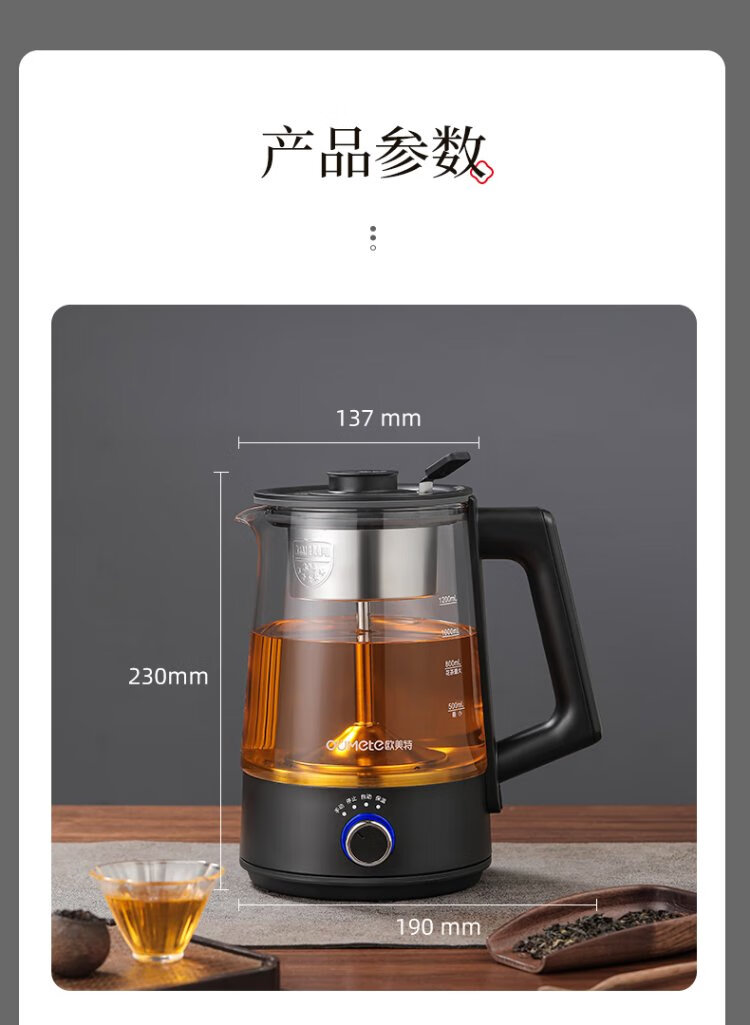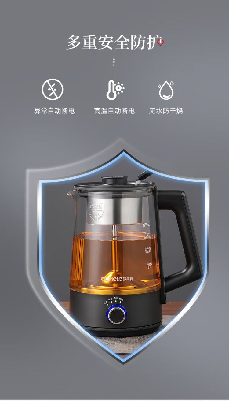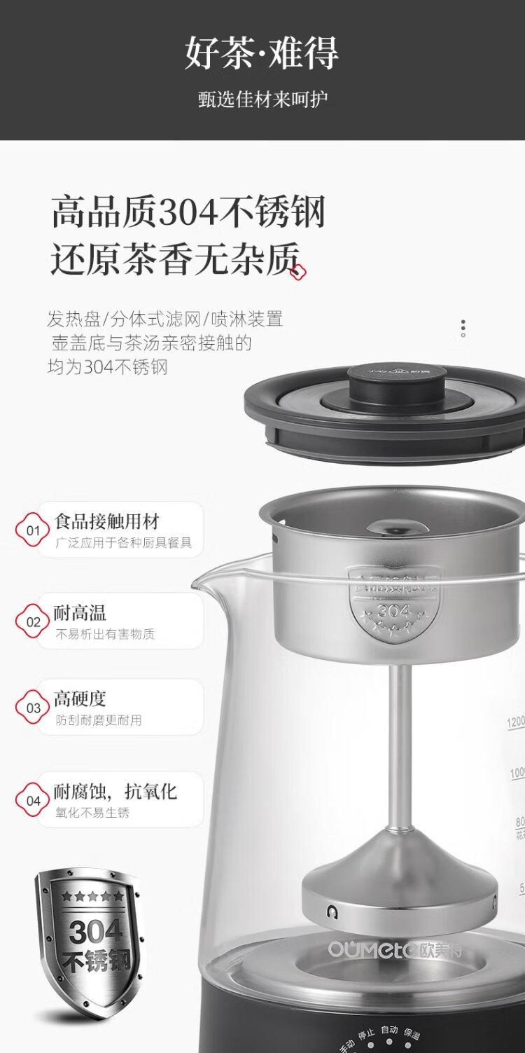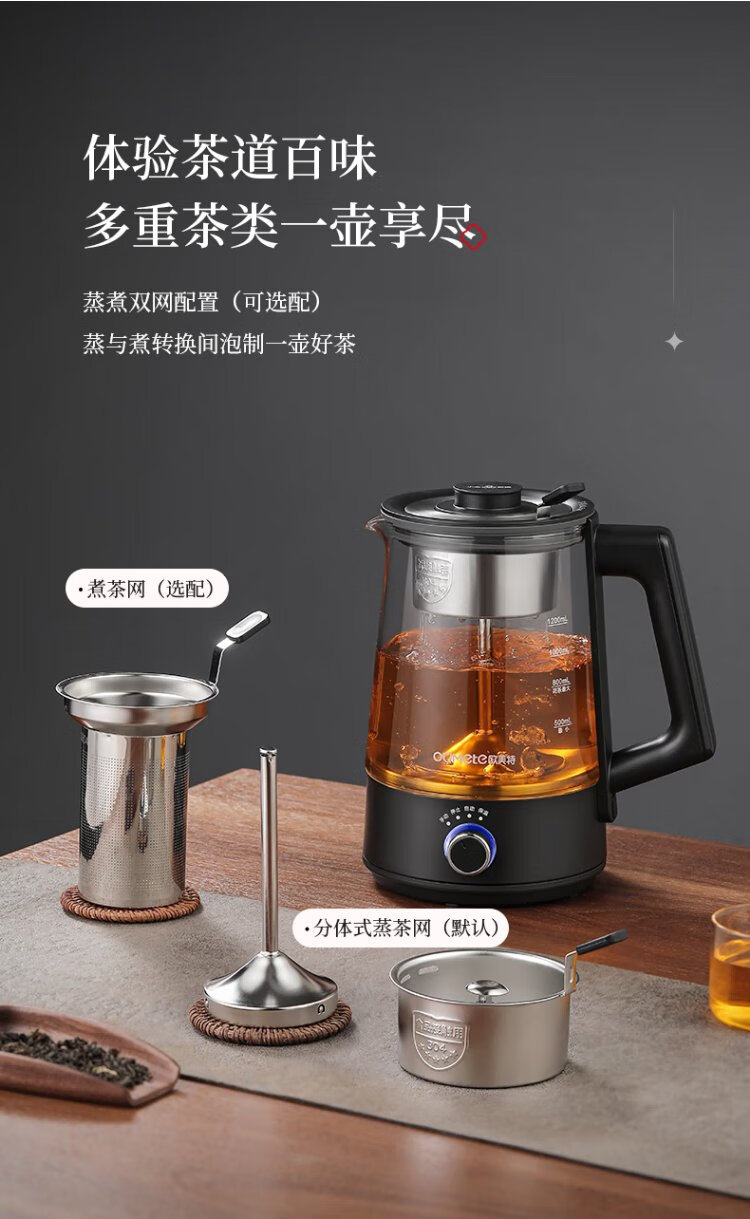 OUMETE tea kettle, tea kettle, spray steam tea kettle, health pot, glass constant temperature insulation tea kettle OMT-PC1016A (single network)