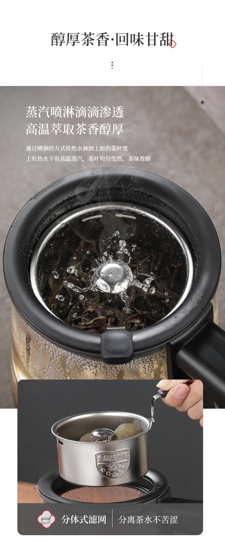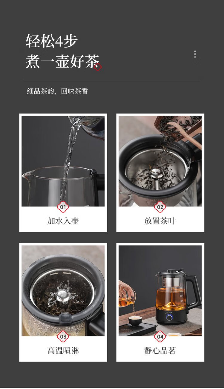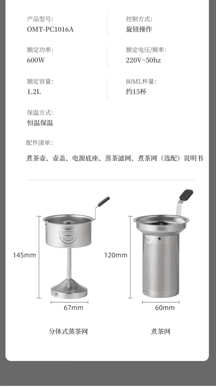 OUMETE tea kettle, tea kettle, spray steam tea kettle, health pot, glass constant temperature insulation tea kettle OMT-PC1016A (single network)