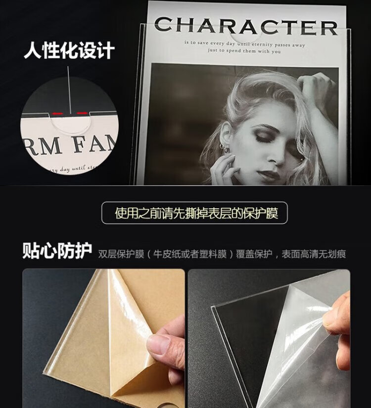 Recover acrylic transparent square card slot paper display board high-definition single-layer vertical style (glued) A4 (210*297mm)
