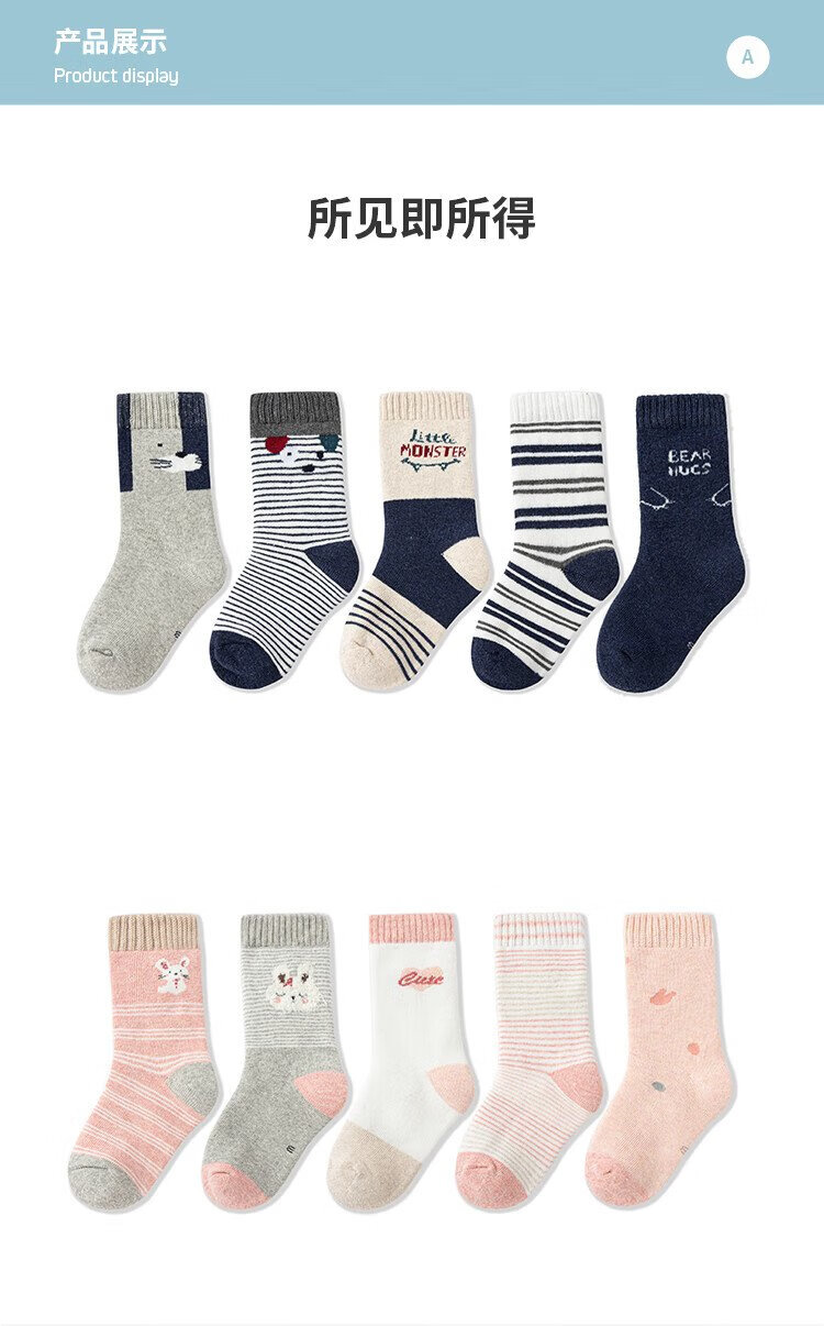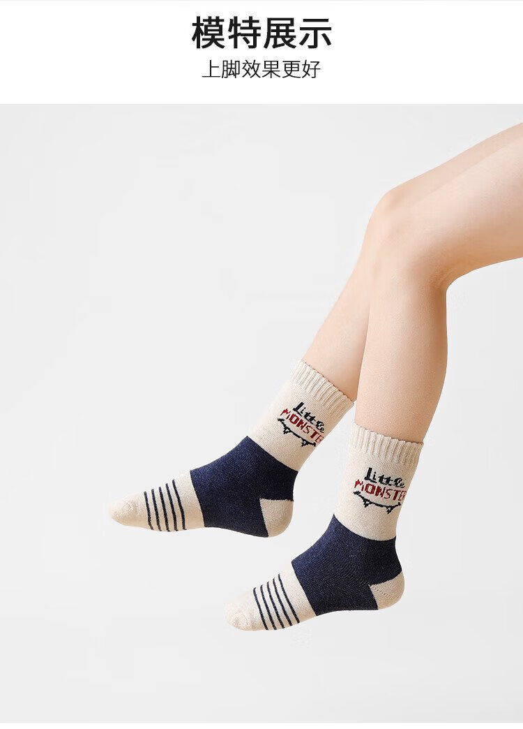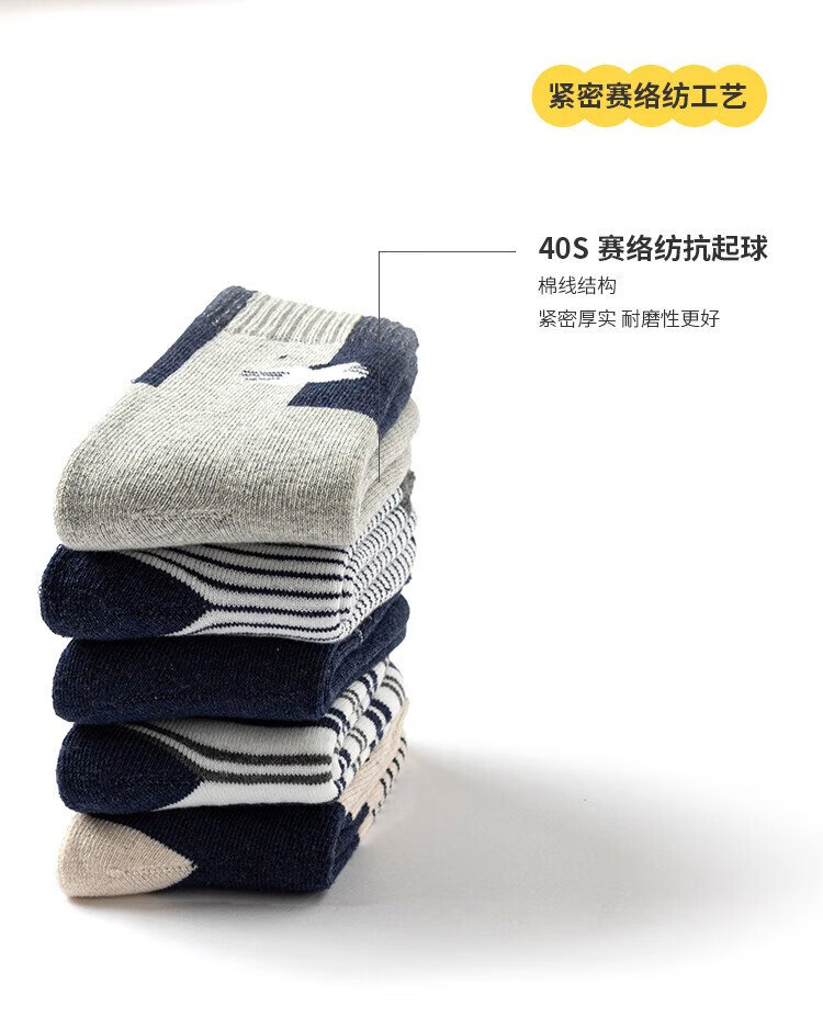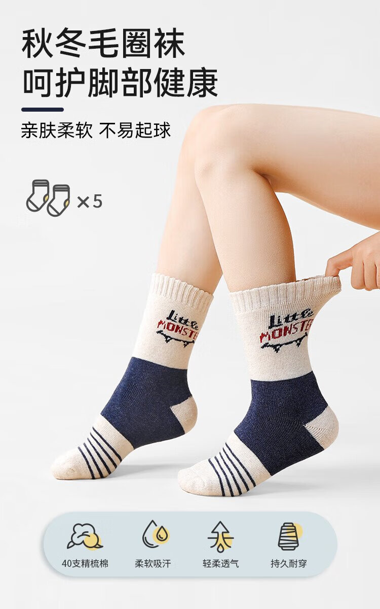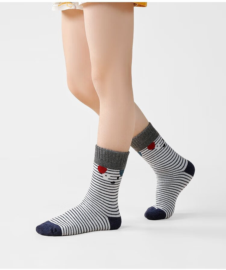 YEEHOO children's socks for boys and girls in autumn and winter thickened terry socks with stripes 5 pairs of mid-tube cotton socks student socks boys M